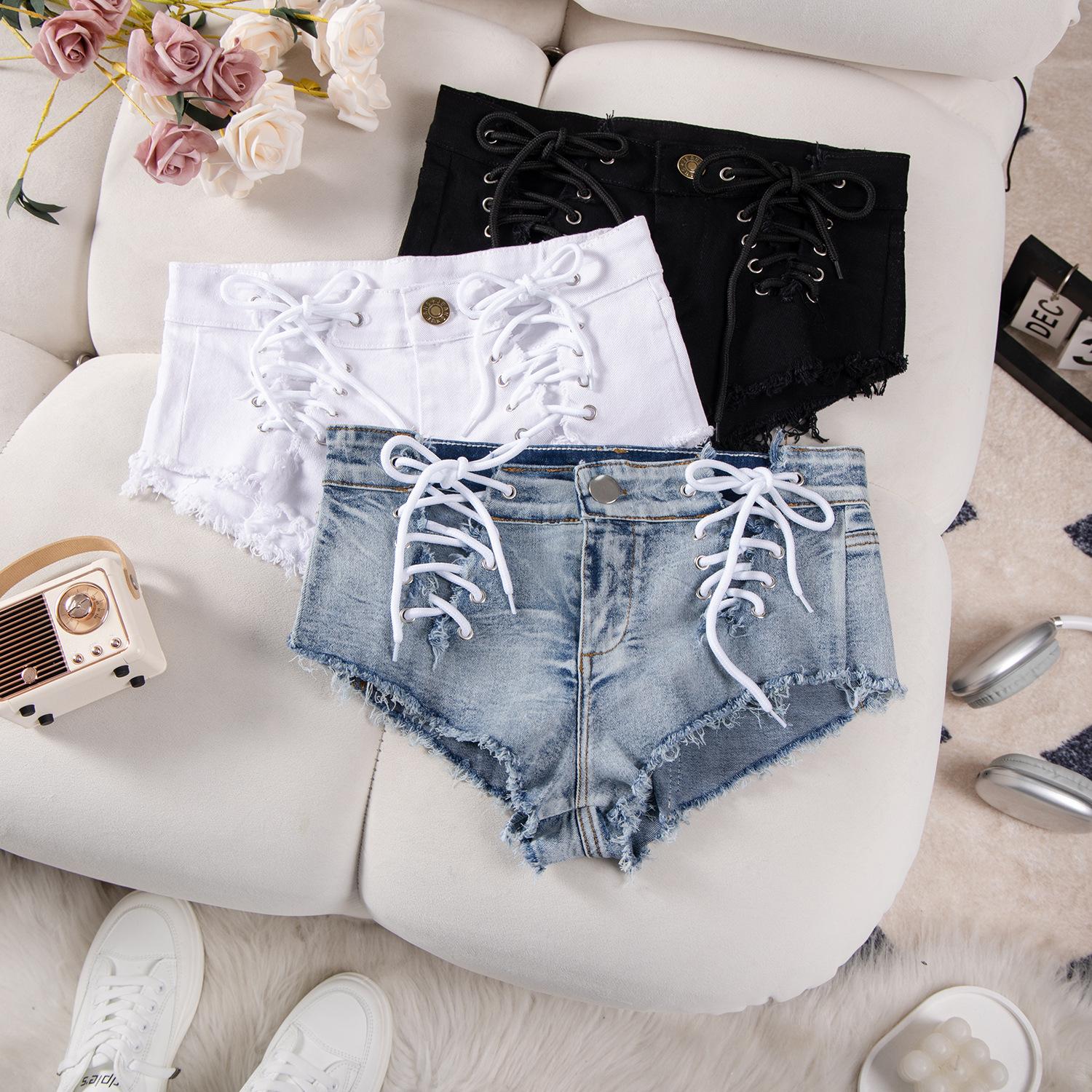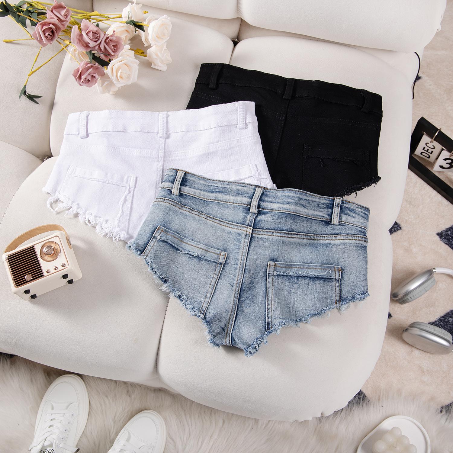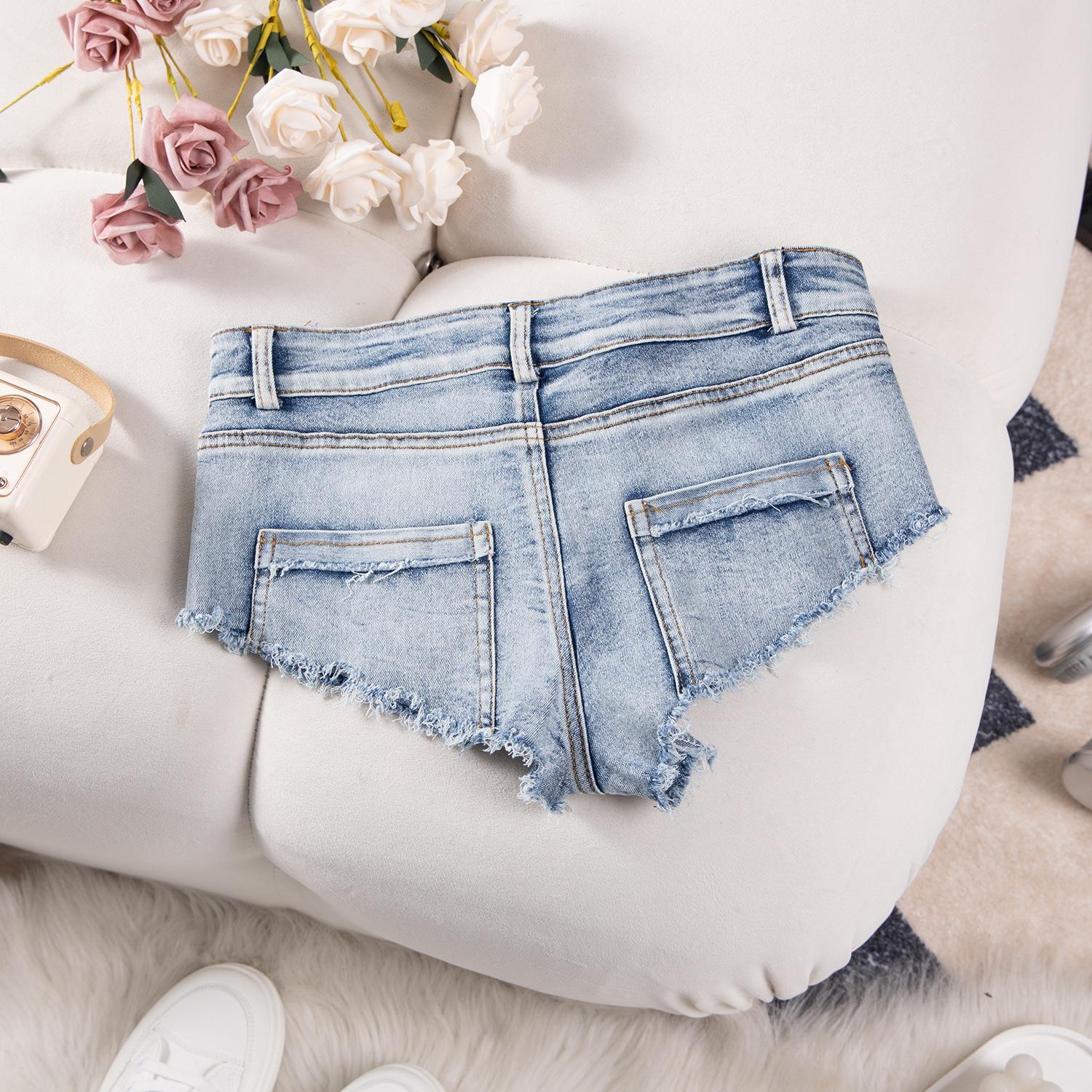 9027 Amazon - Pantalones cortos vaqueros elásticos sexys de estilo europeo y americano para mujer, pantalones vaqueros de cintura alta, talla grande