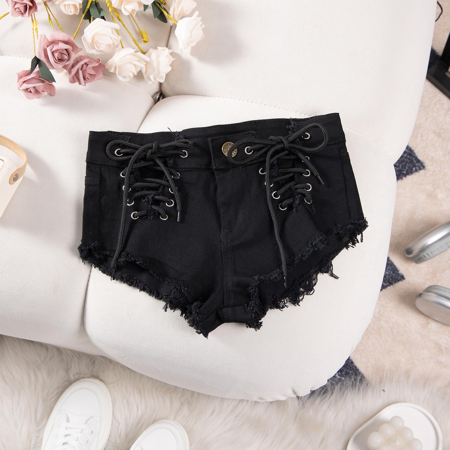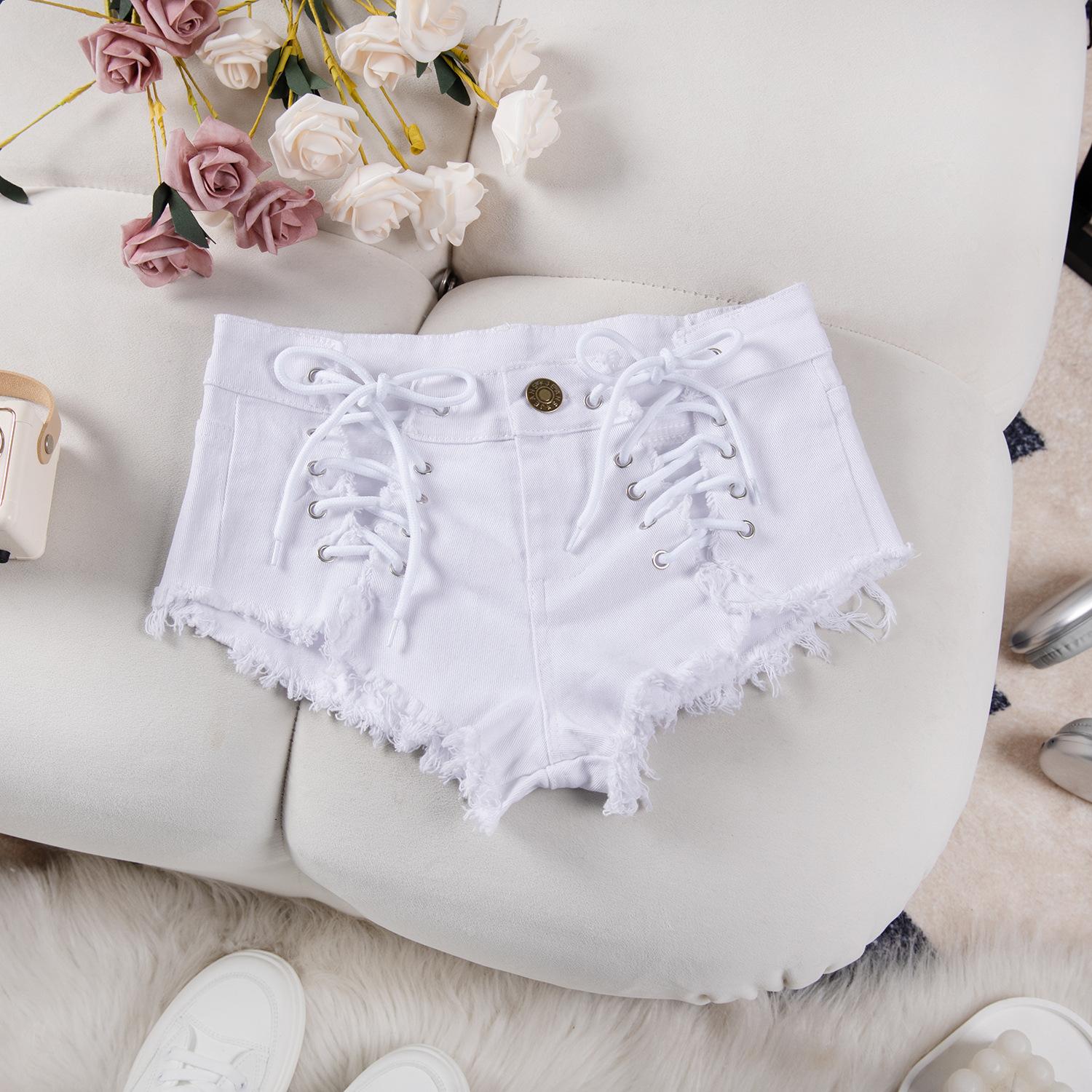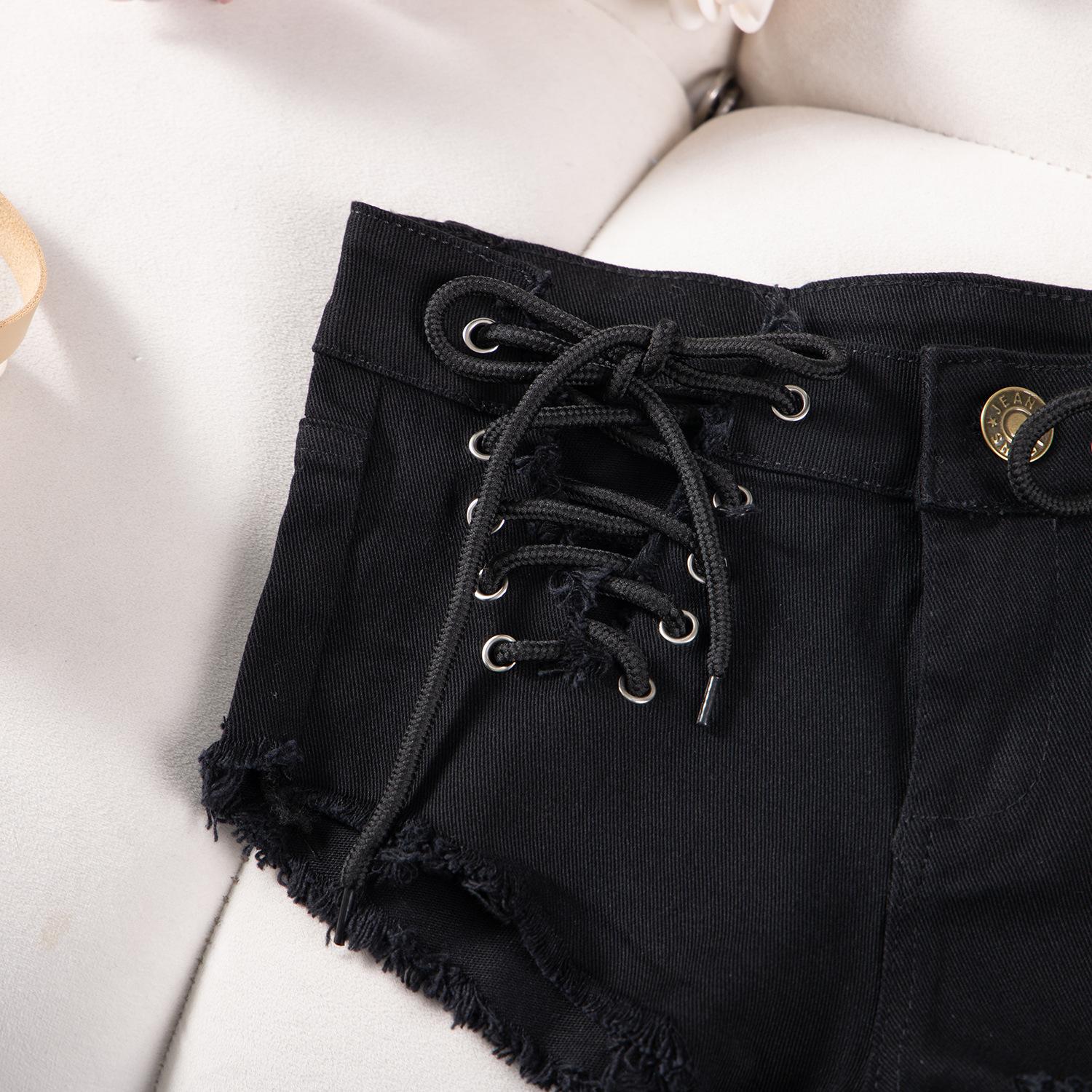 9027 Amazon - Pantalones cortos vaqueros elásticos sexys de estilo europeo y americano para mujer, pantalones vaqueros de cintura alta, talla grande
