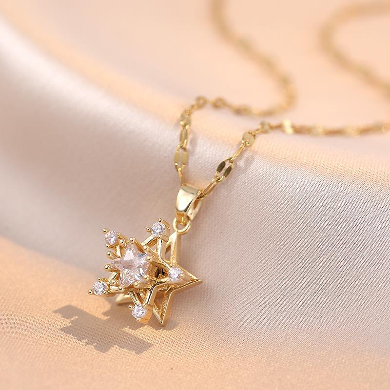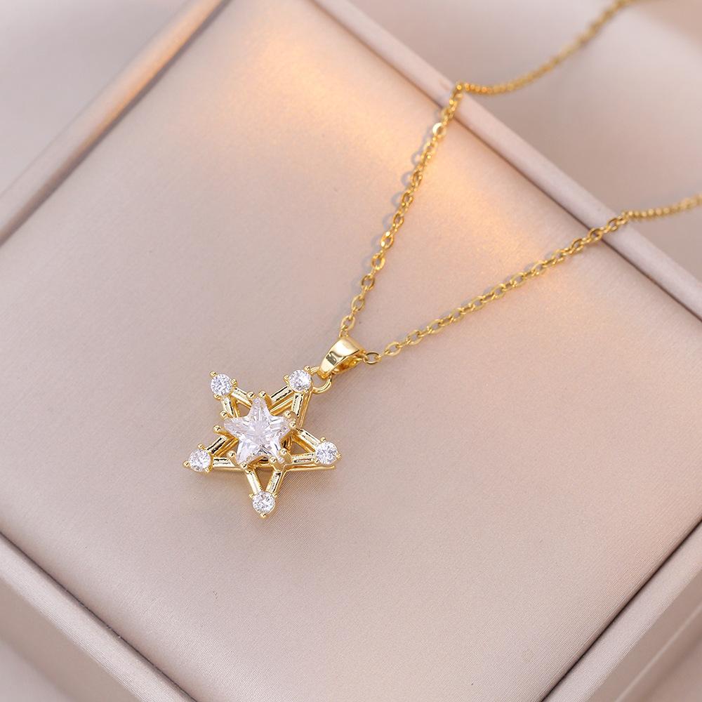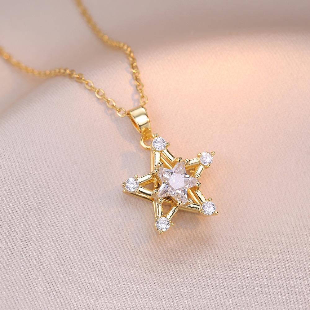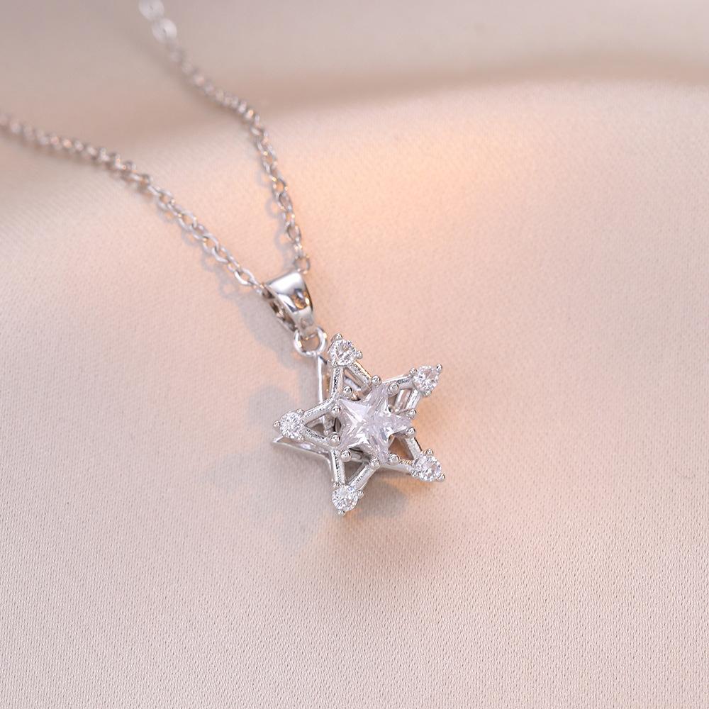 Collar para Mujer Celebridad en Línea Estrella de Cinco Puntas Giratoria Zircón Ins Elegante Personalizado Moda Lujo Ligero Simple Cadena de Clavícula Colgante