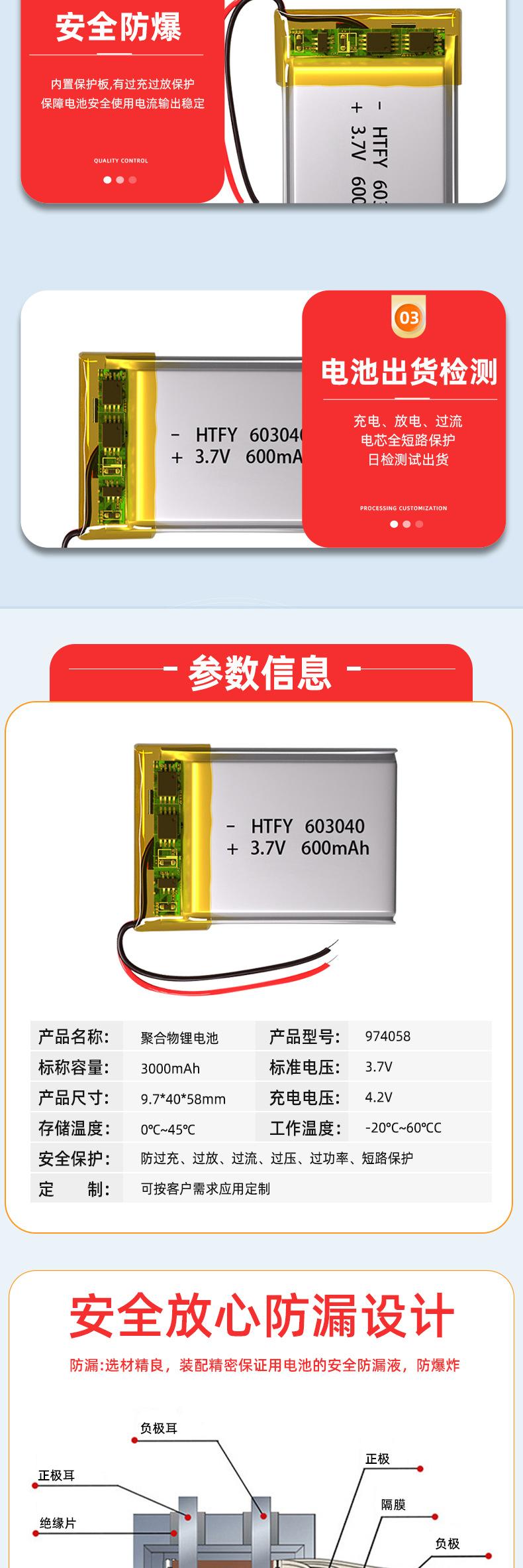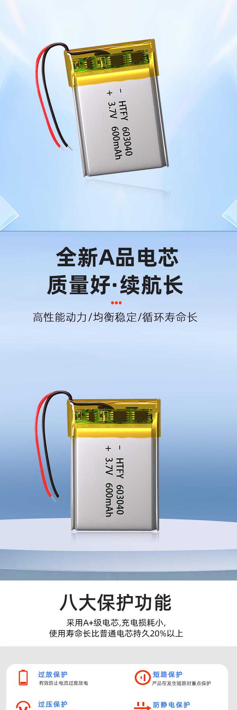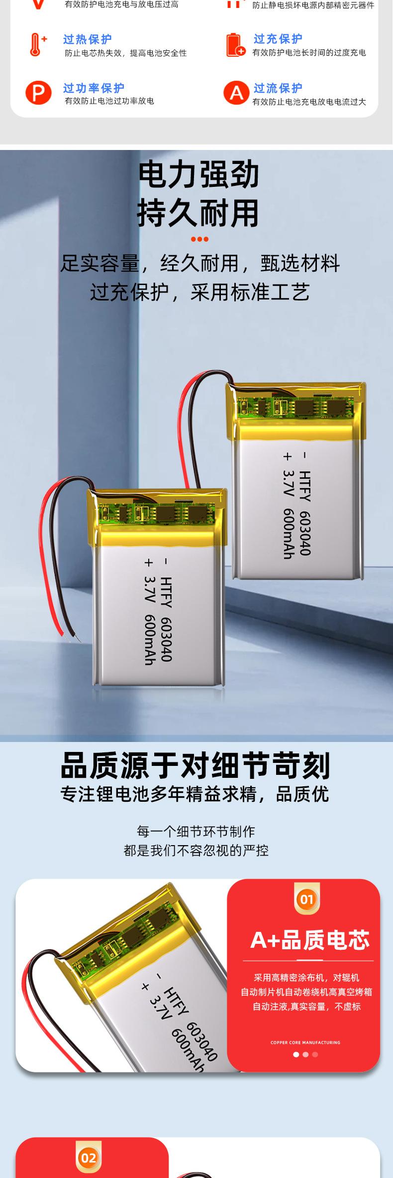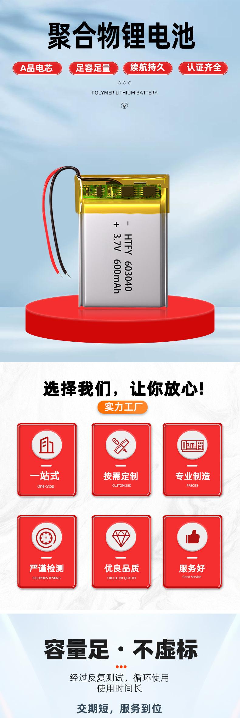 603040 Batería de Polímero de Litio 600mAh 3.7V Instrumento de Belleza Auriculares Bluetooth Núcleo Recargable Dedicado Alta Capacidad