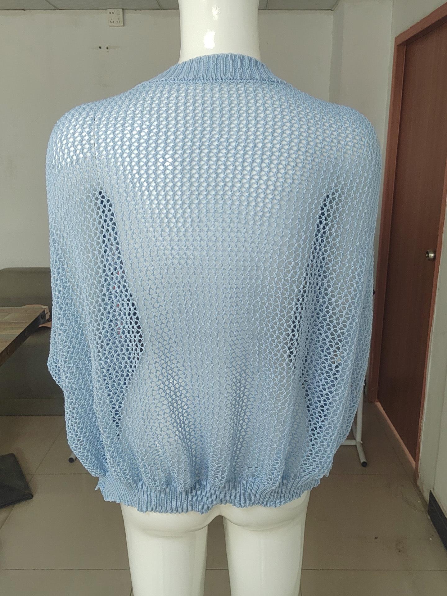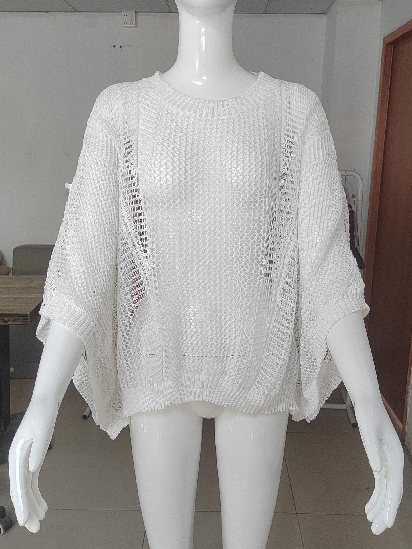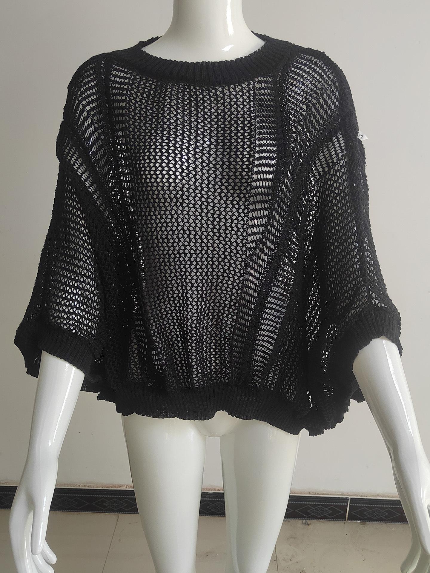 Estilo Europeo y Americano Transfronterizo Nuevo Sexy Malla Transparente Vacaciones Suelto Tejido Calado Falda de Playa Bikini Blusa Exterior