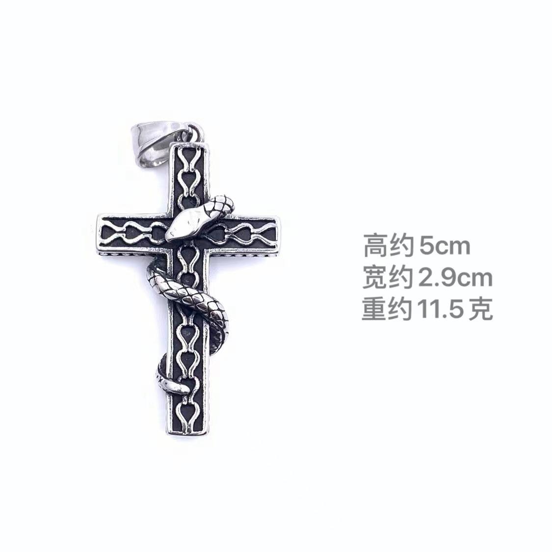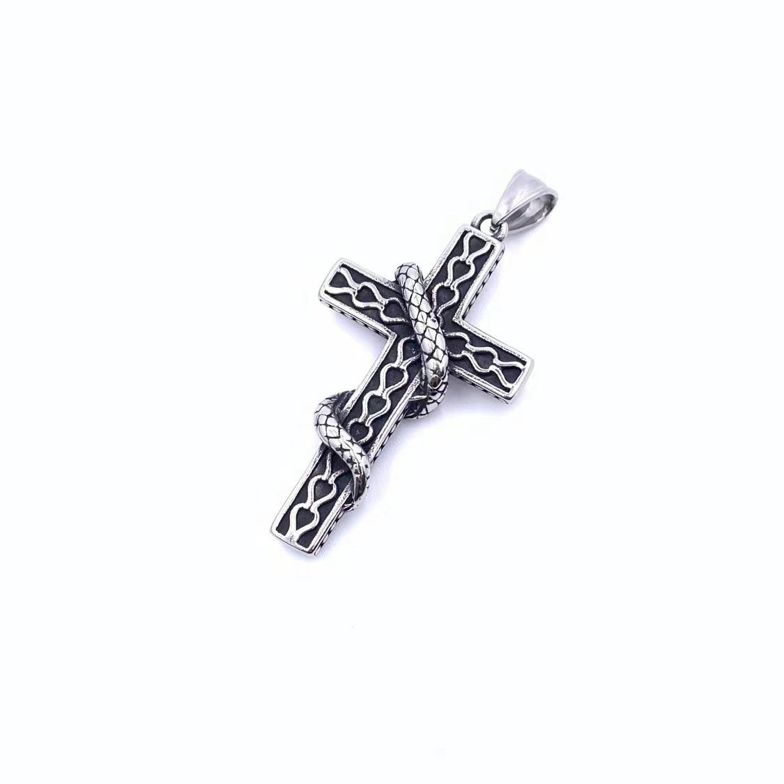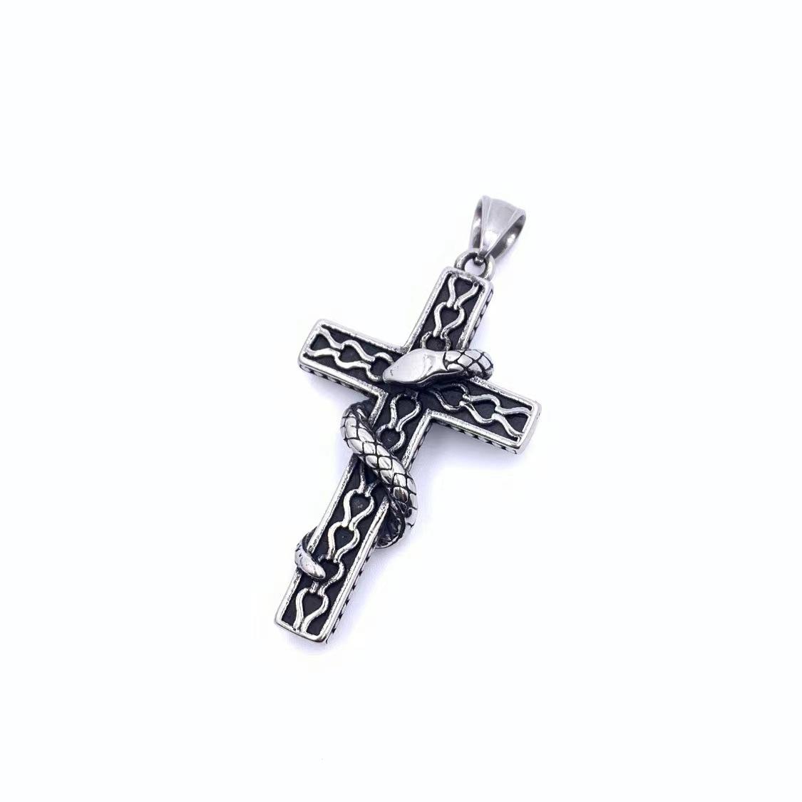 Titanium steel personality retro king snake winding cross pendant men's hip hop necklace hipster fashion