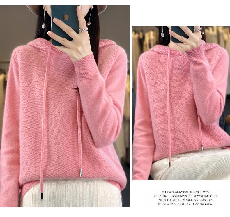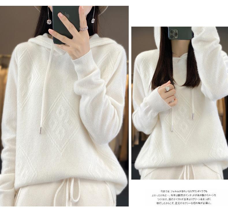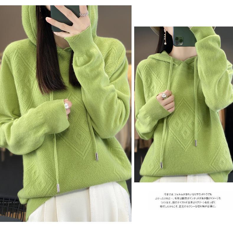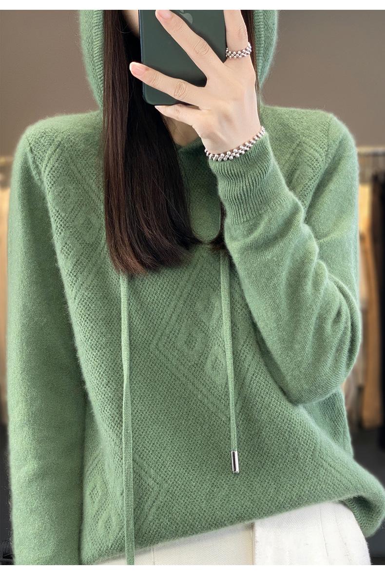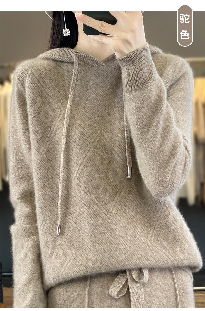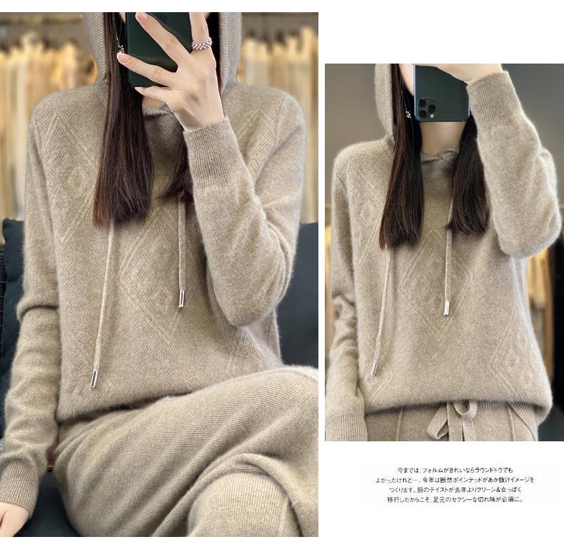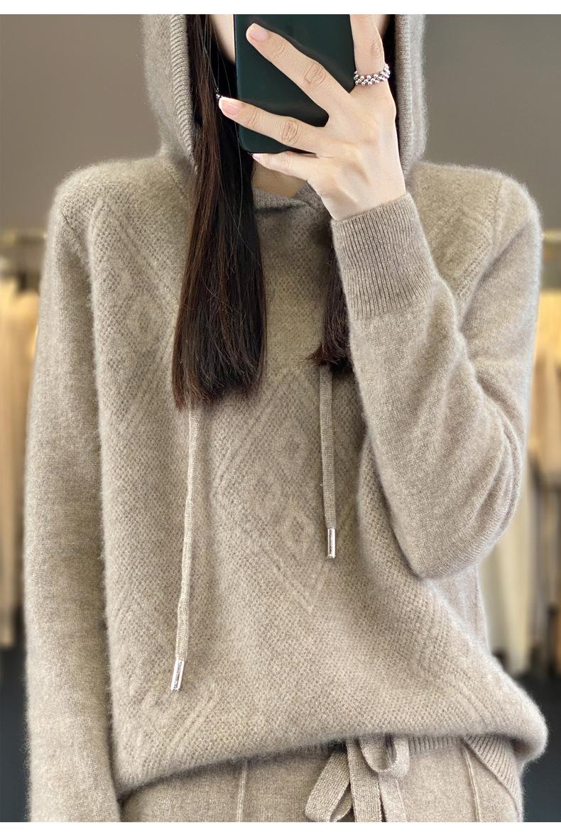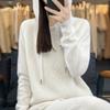 Suéter de lana pura merino australiana 100% para mujer, cárdigan con capucha y sin costuras de primera línea, chaqueta de cachemira