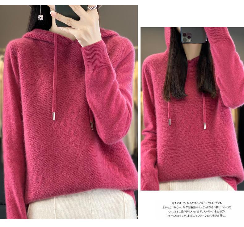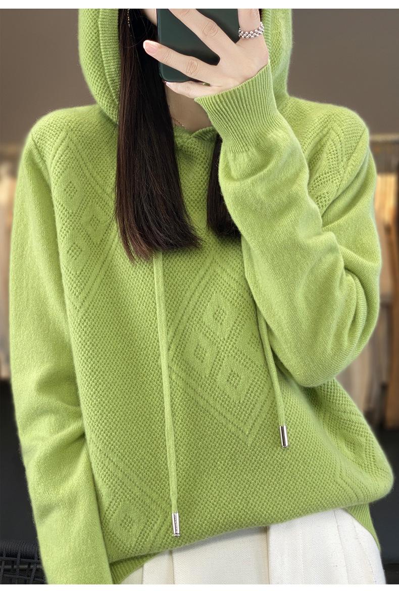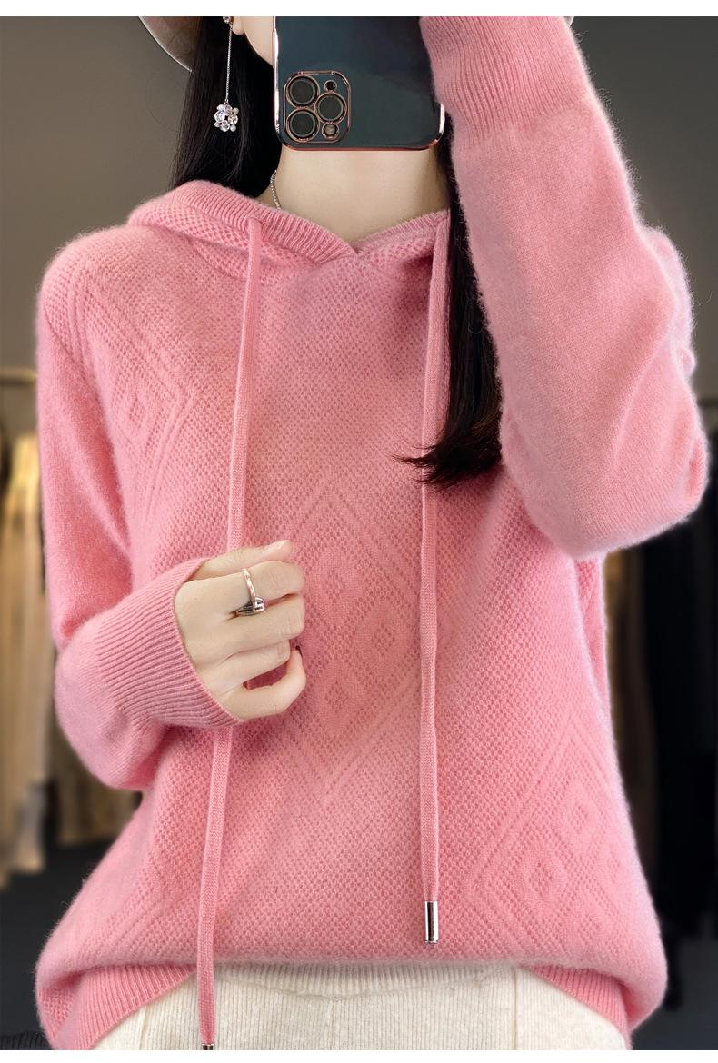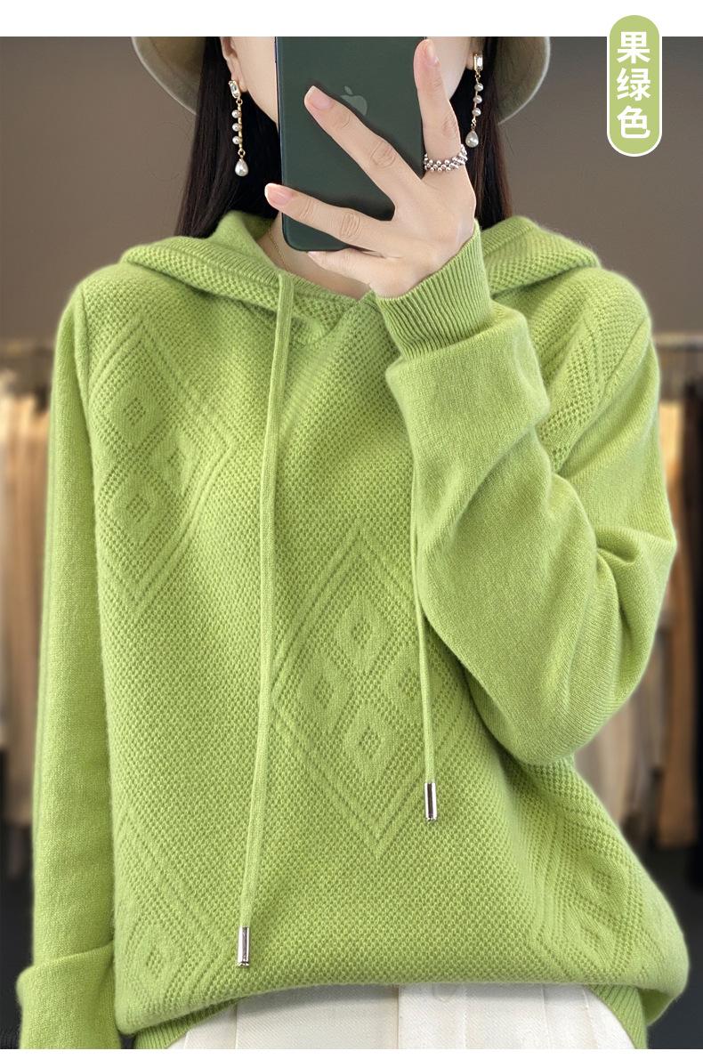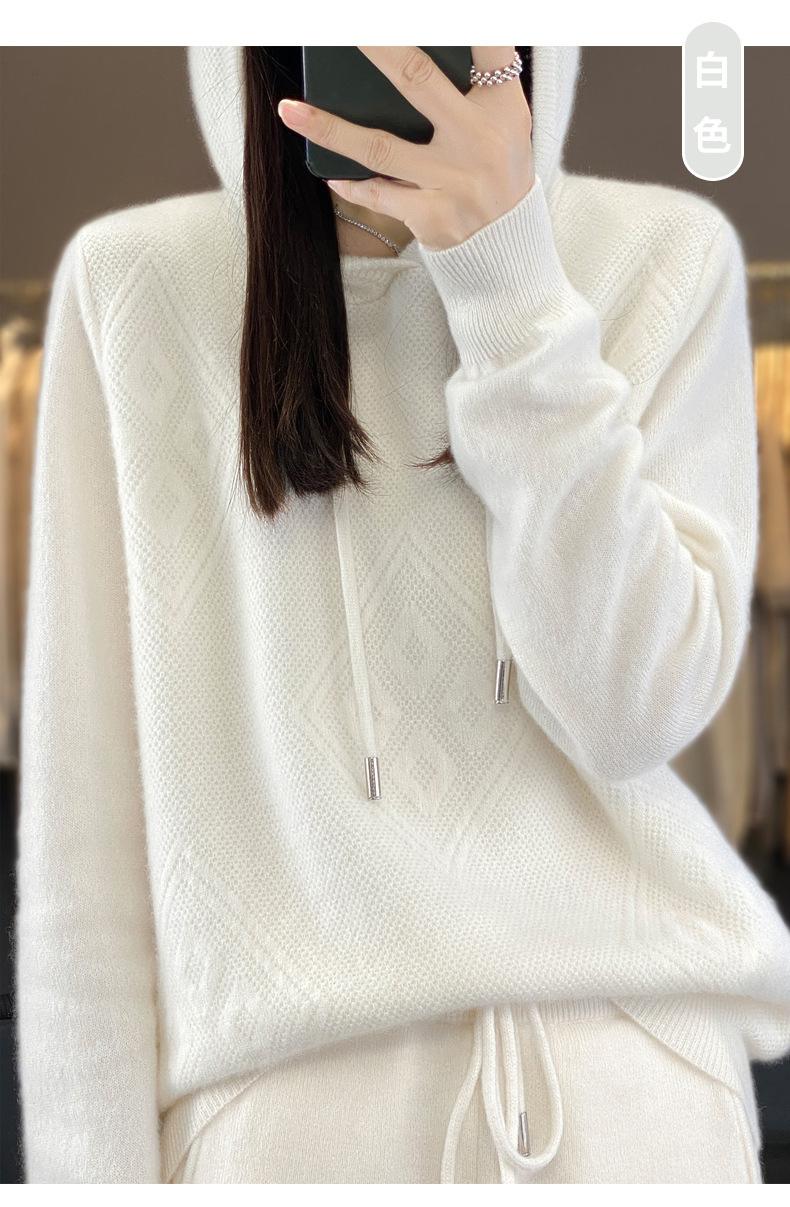 Suéter de lana pura merino australiana 100% para mujer, cárdigan con capucha y sin costuras de primera línea, chaqueta de cachemira