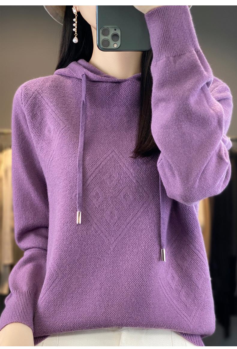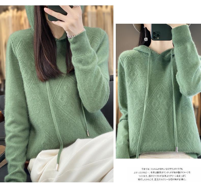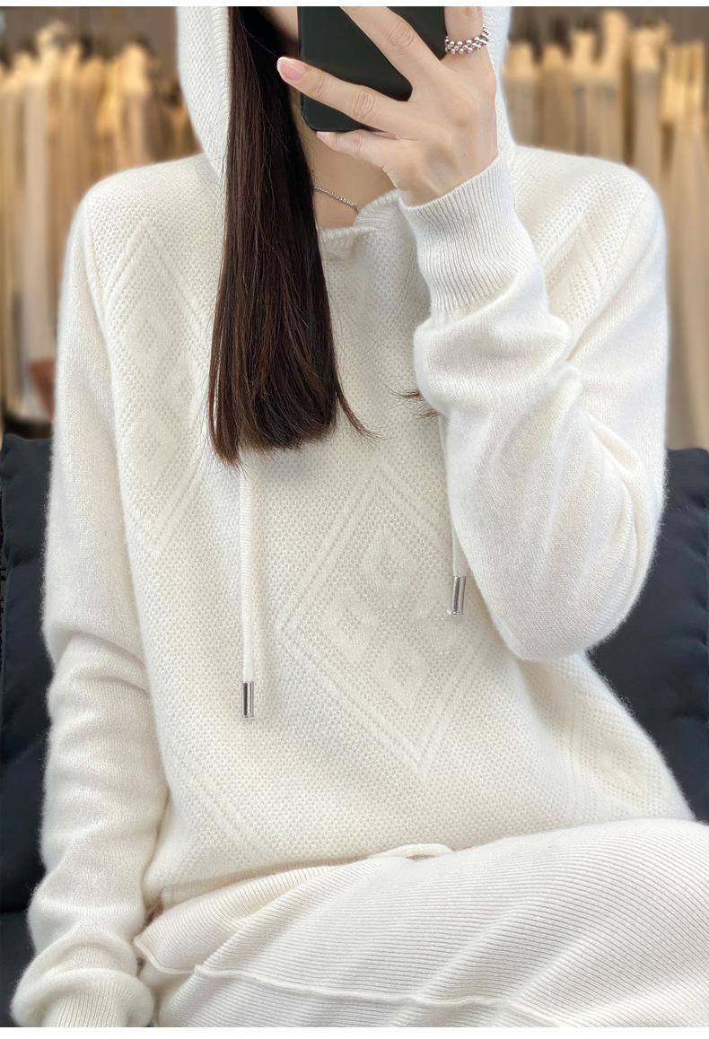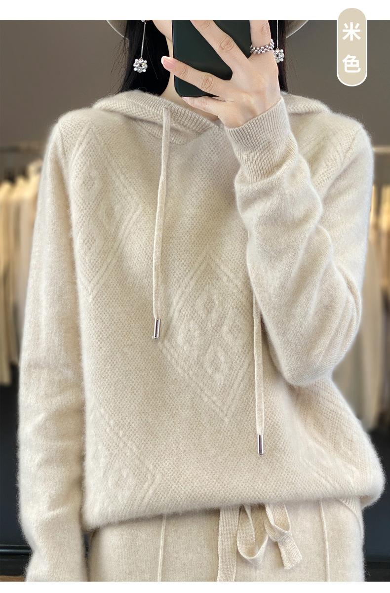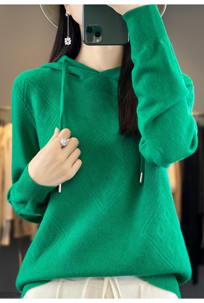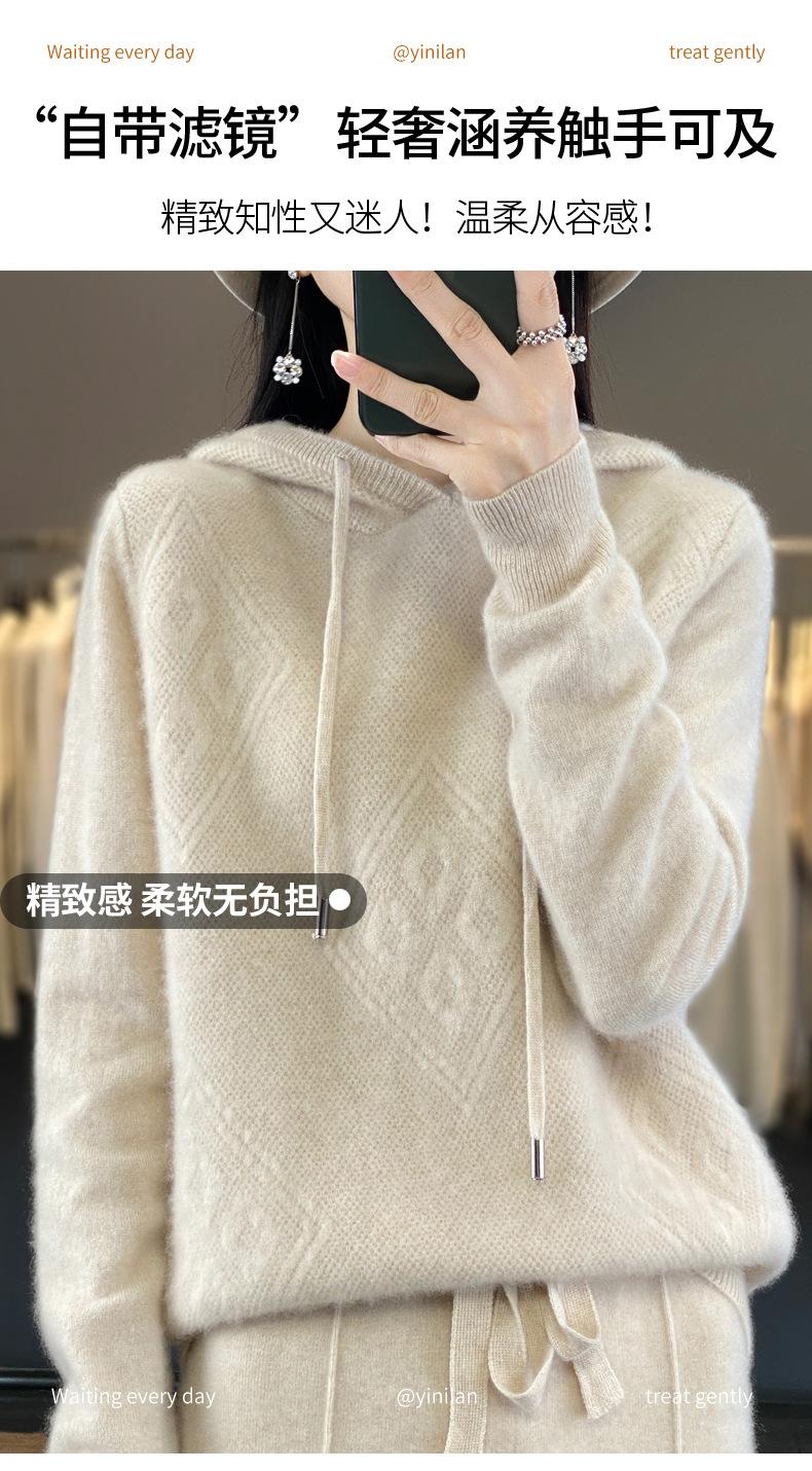 Suéter de lana pura merino australiana 100% para mujer, cárdigan con capucha y sin costuras de primera línea, chaqueta de cachemira