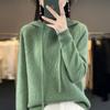 Suéter 100% de lana pura para mujer, suéter de punto grueso con cuello alto y media manga, suéter de cachemira de hilo de puntos de nuevo estilo para otoño e invierno.