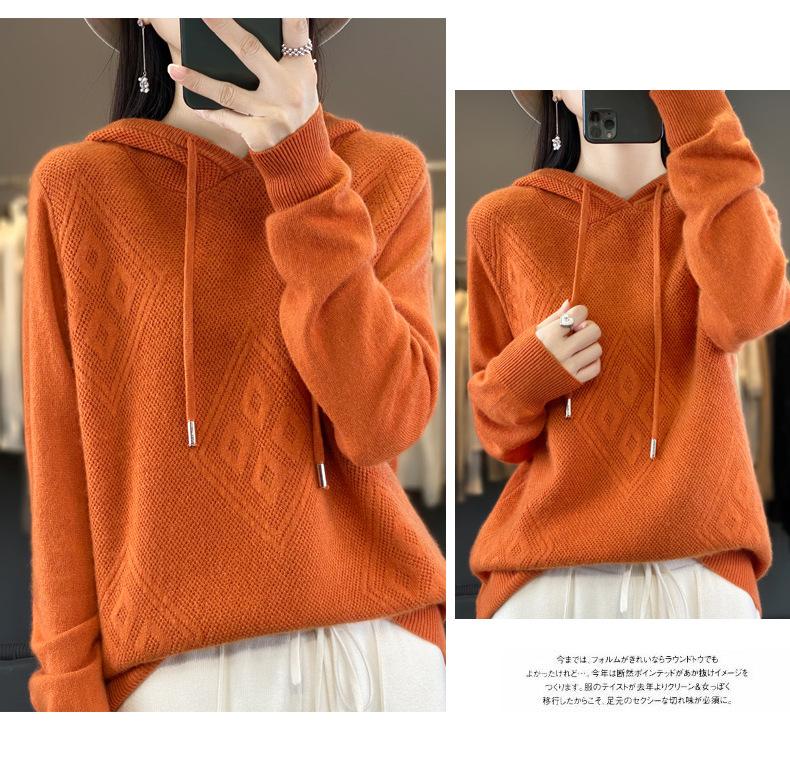 Suéter con capucha en forma de diamante suéter para mujer holgado de manga larga otoño e invierno casual apilado con capucha camisa básica suéter