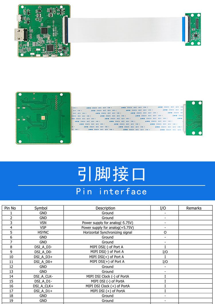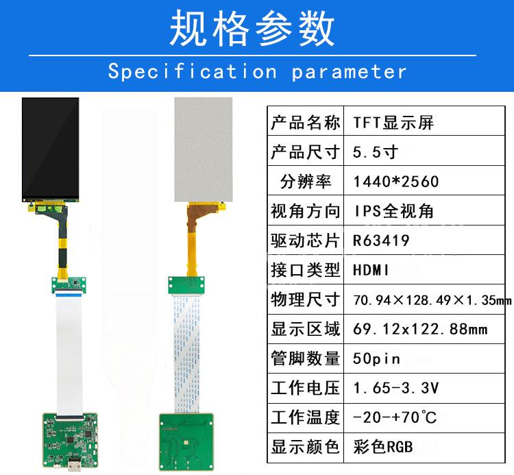 Placa controladora MIPI a HDMI con pantalla TFT de 5,5 pulgadas y resolución 2K, controlador R63419 de 50 pines
