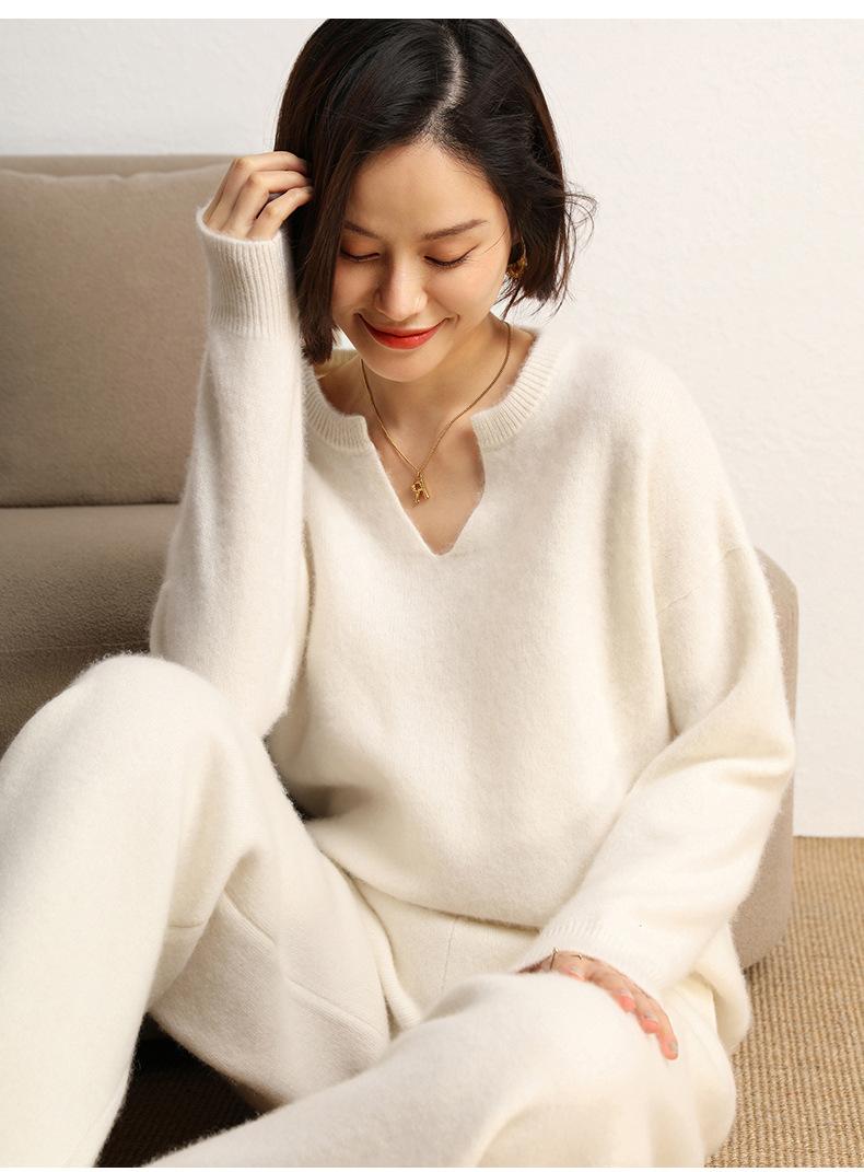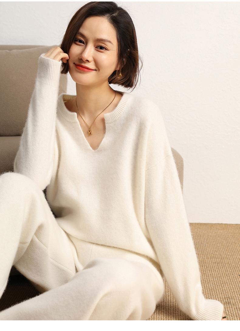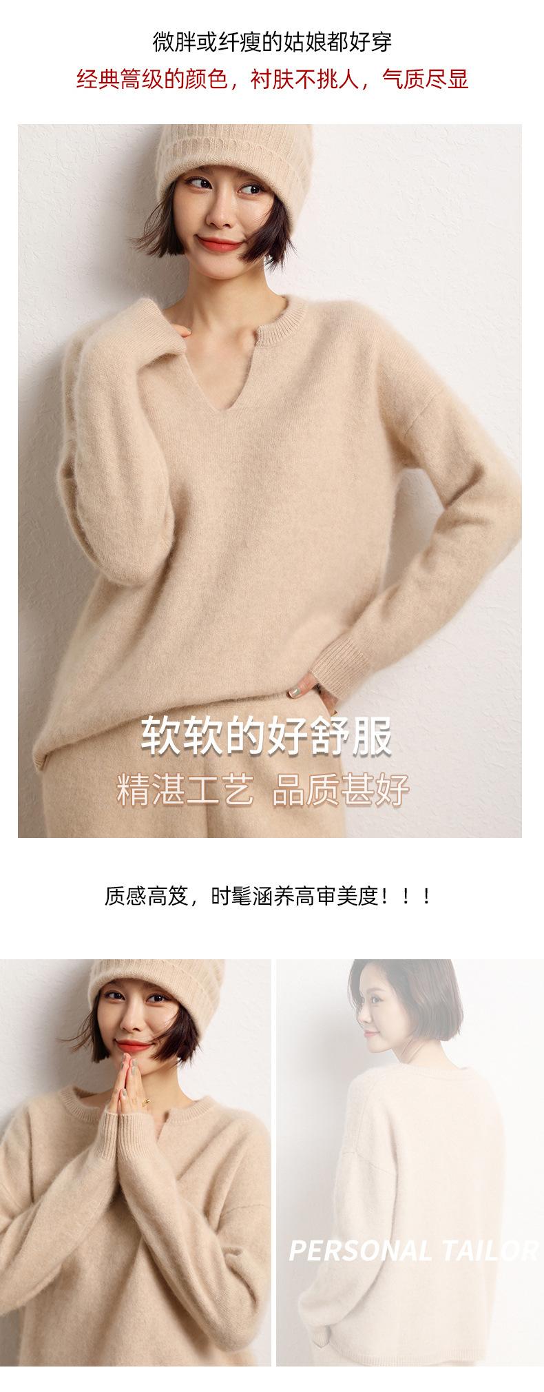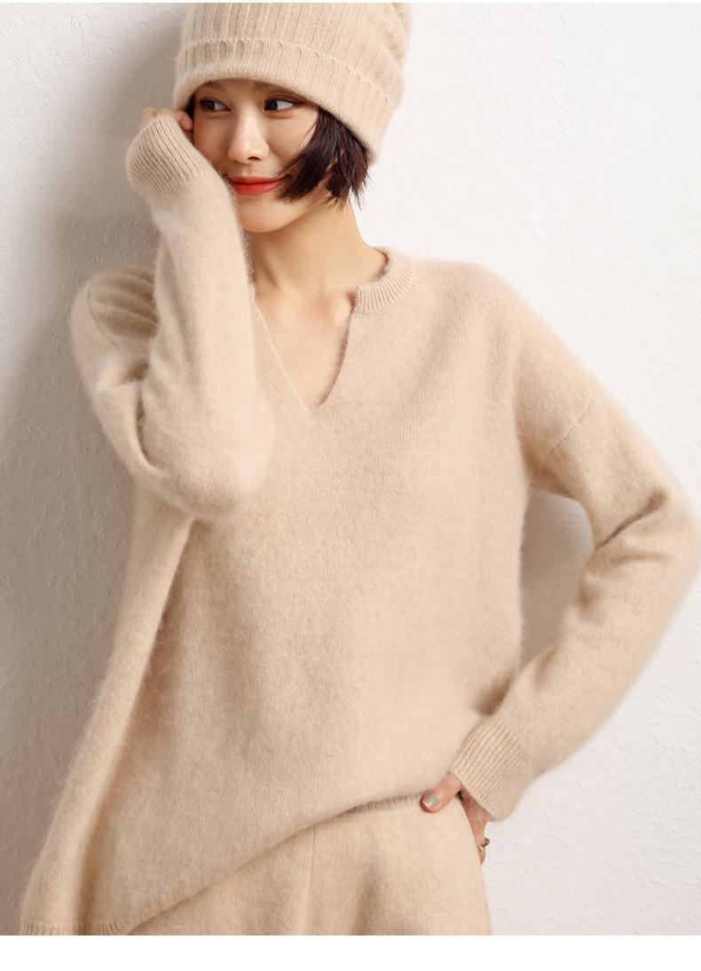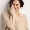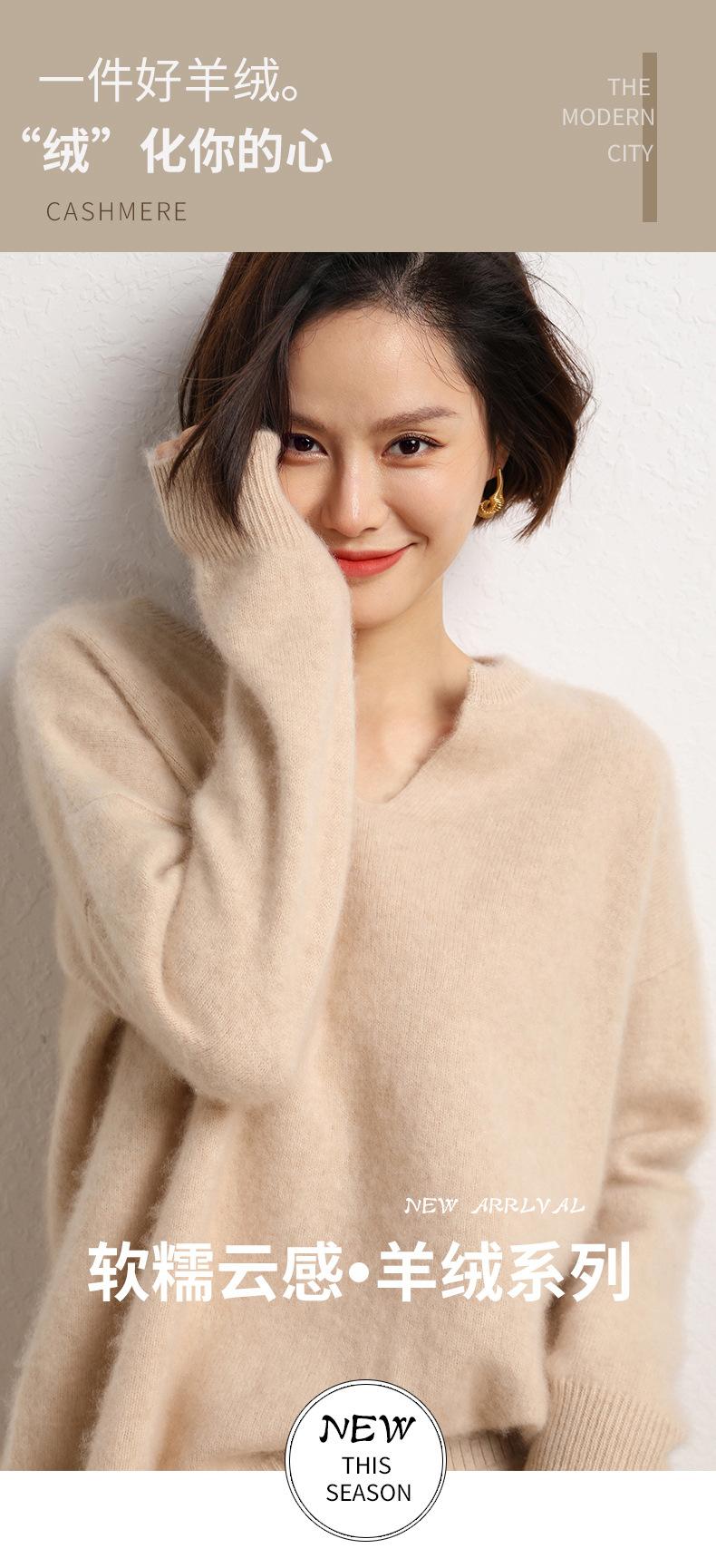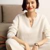 Suéter de lana confeccionado de primera línea, suéter de base de lana 100 para mujer, suéter de cachemira suelto de punto con cuello en V, top ajustado para otoño e invierno