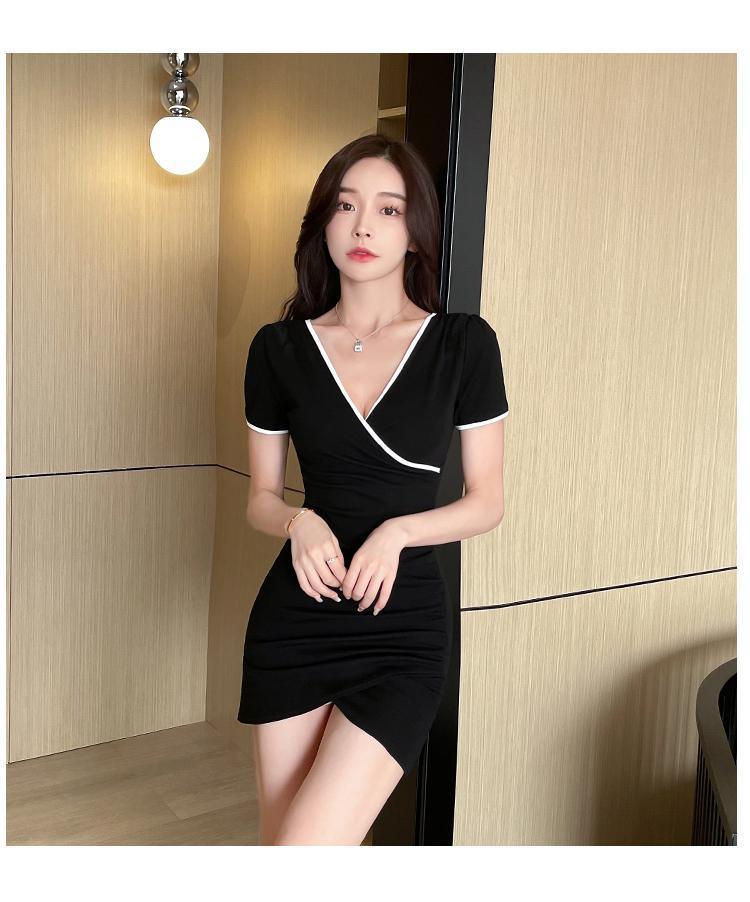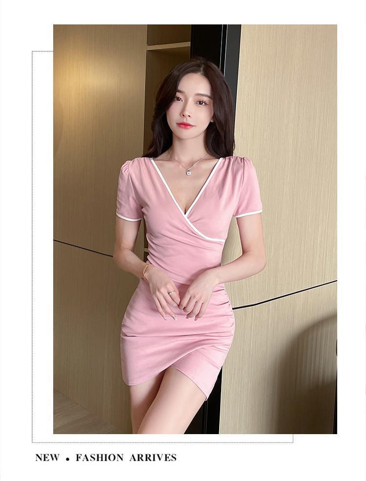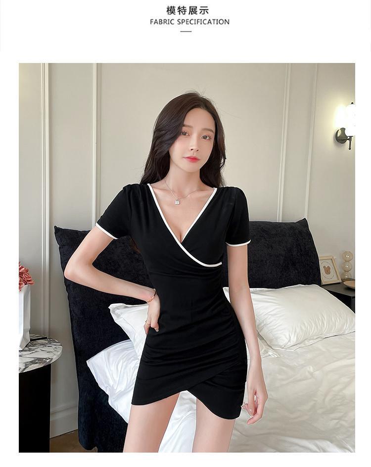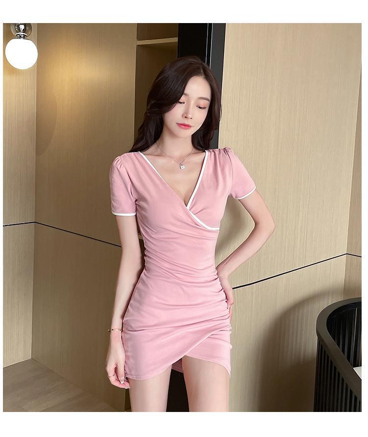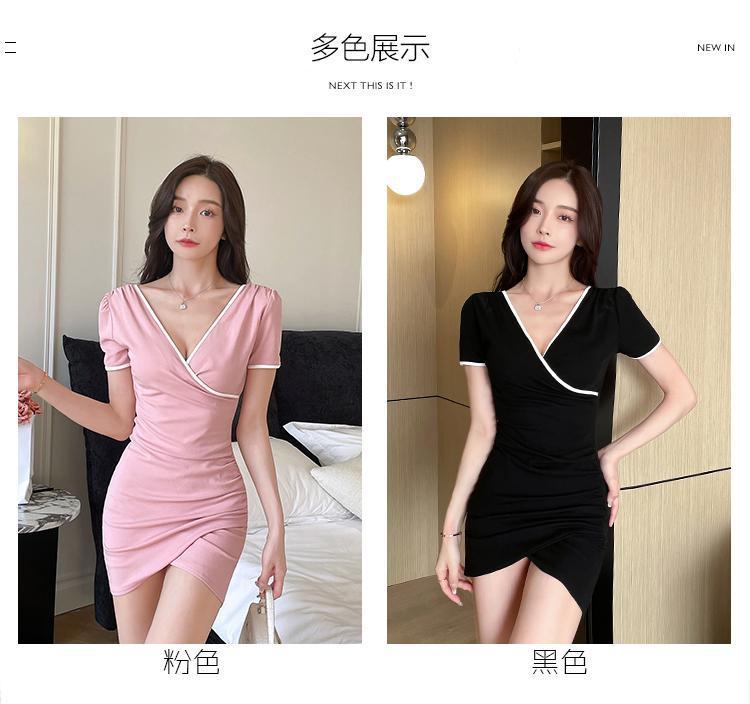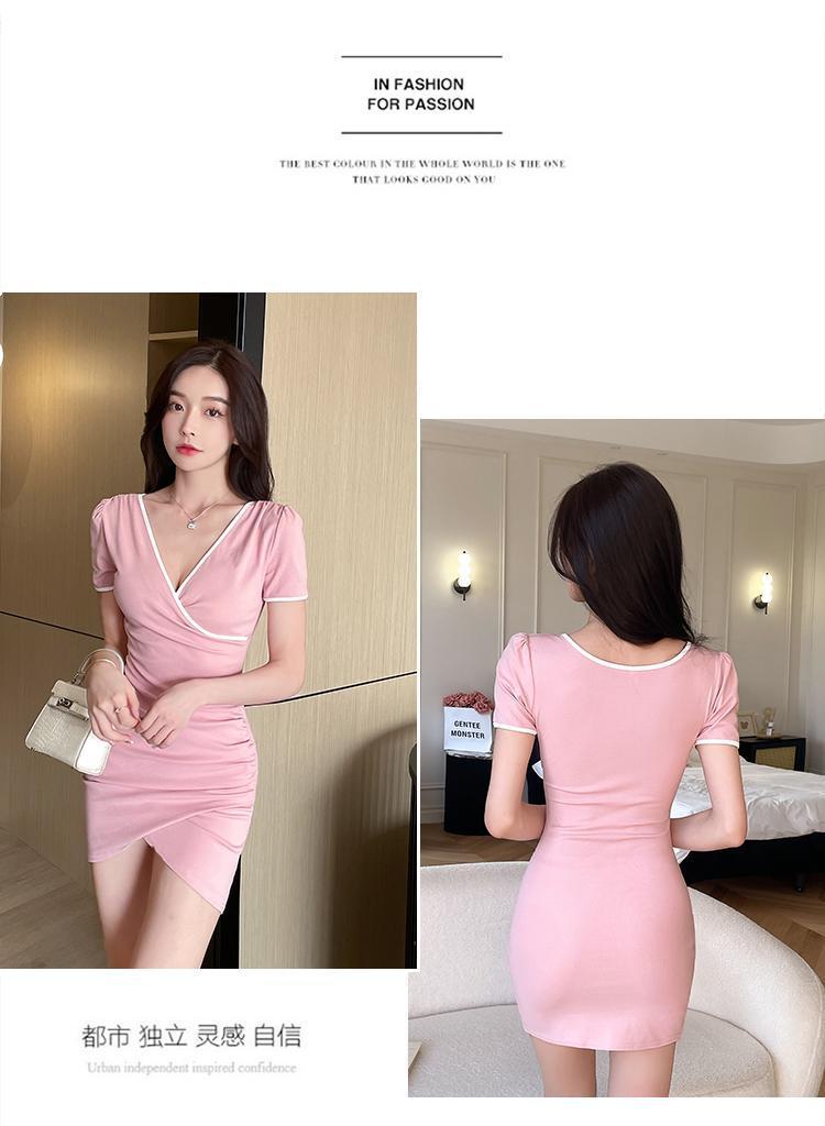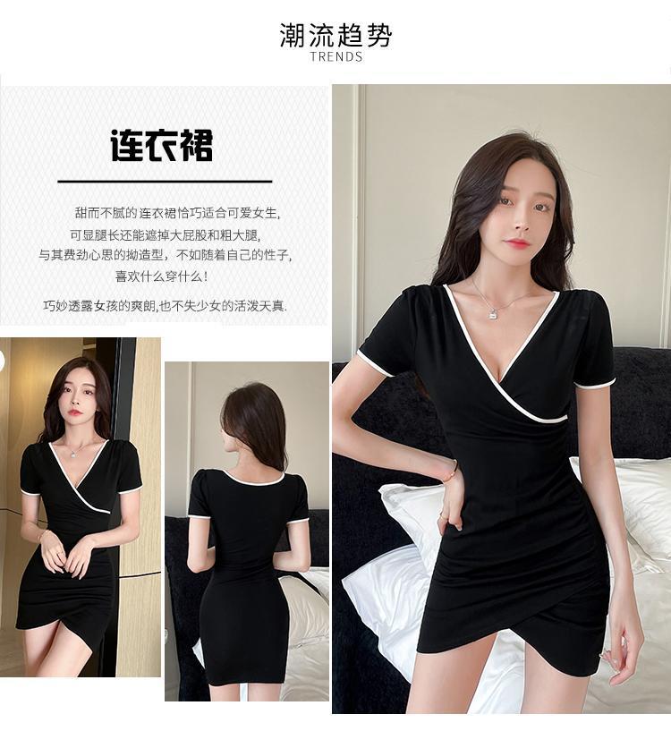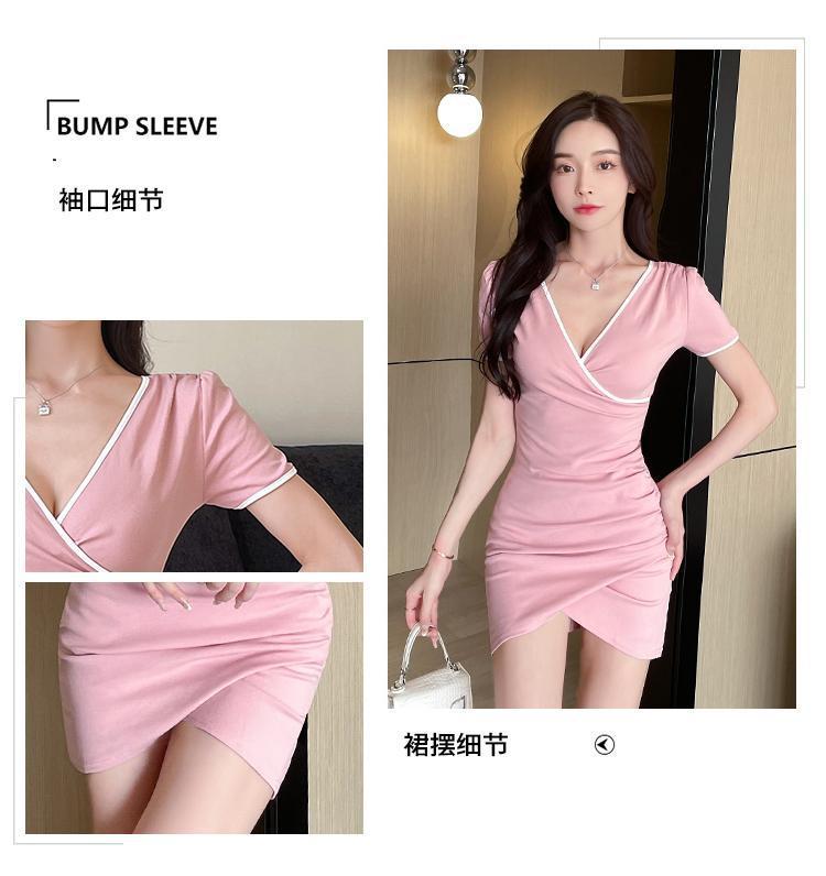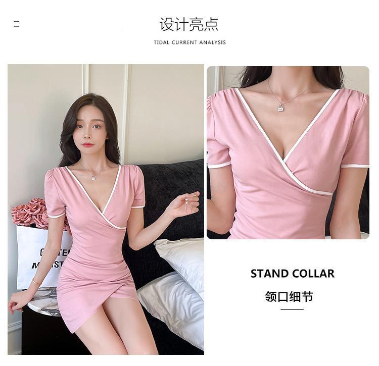 Vestido irregular pequeño de verano para mujer, de manga corta, con cuello en V, elegante, ajustado, con falda a la cadera, para técnico de baños de pies, ropa de trabajo