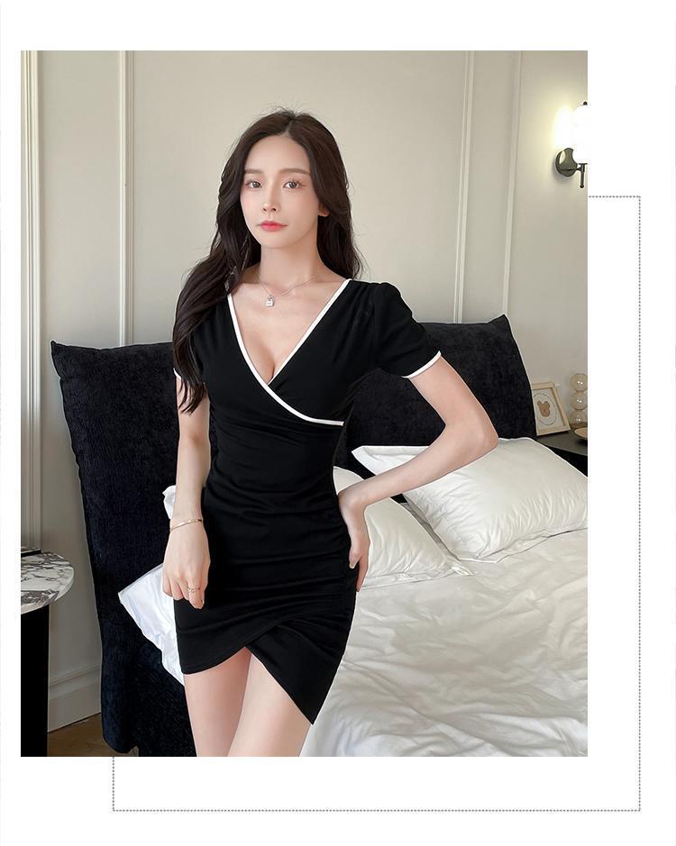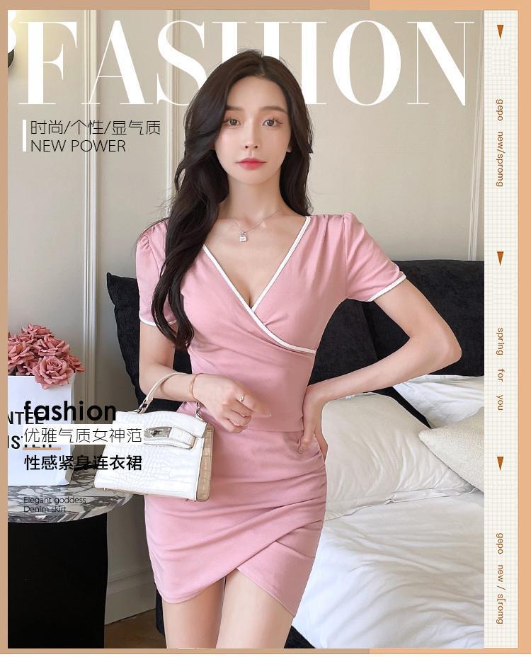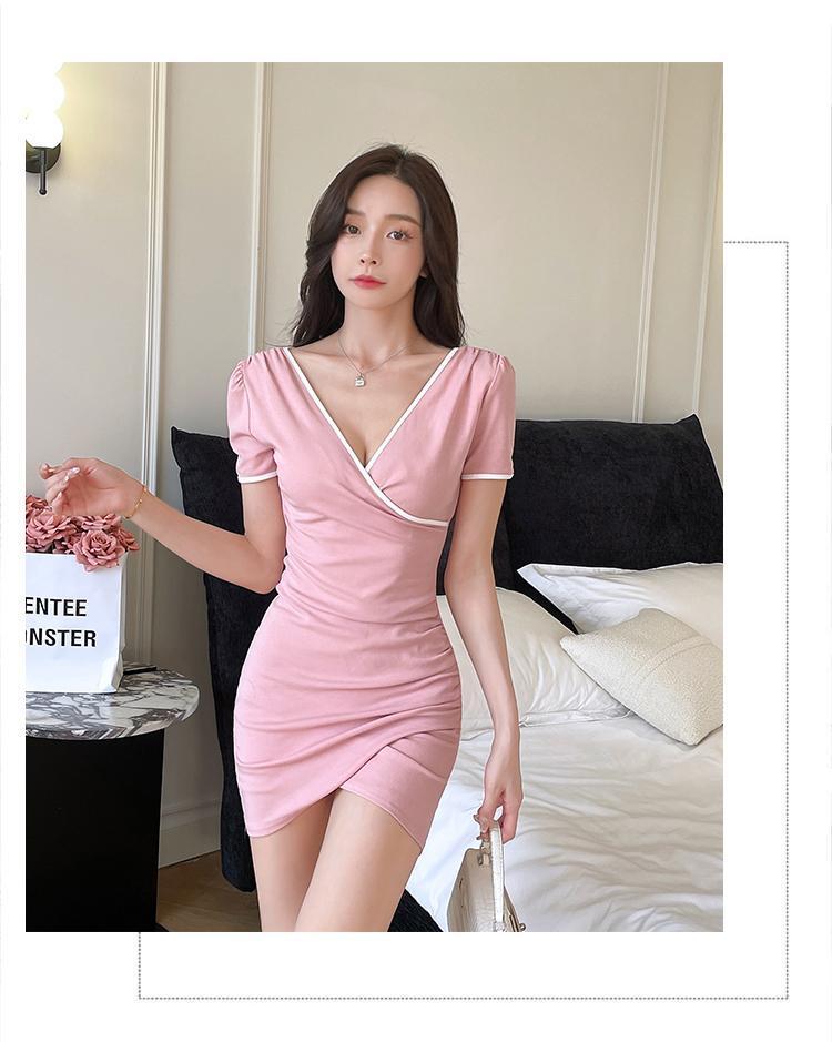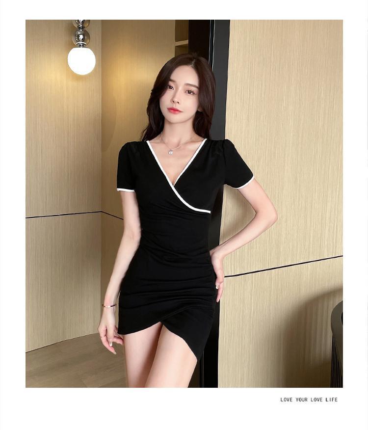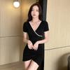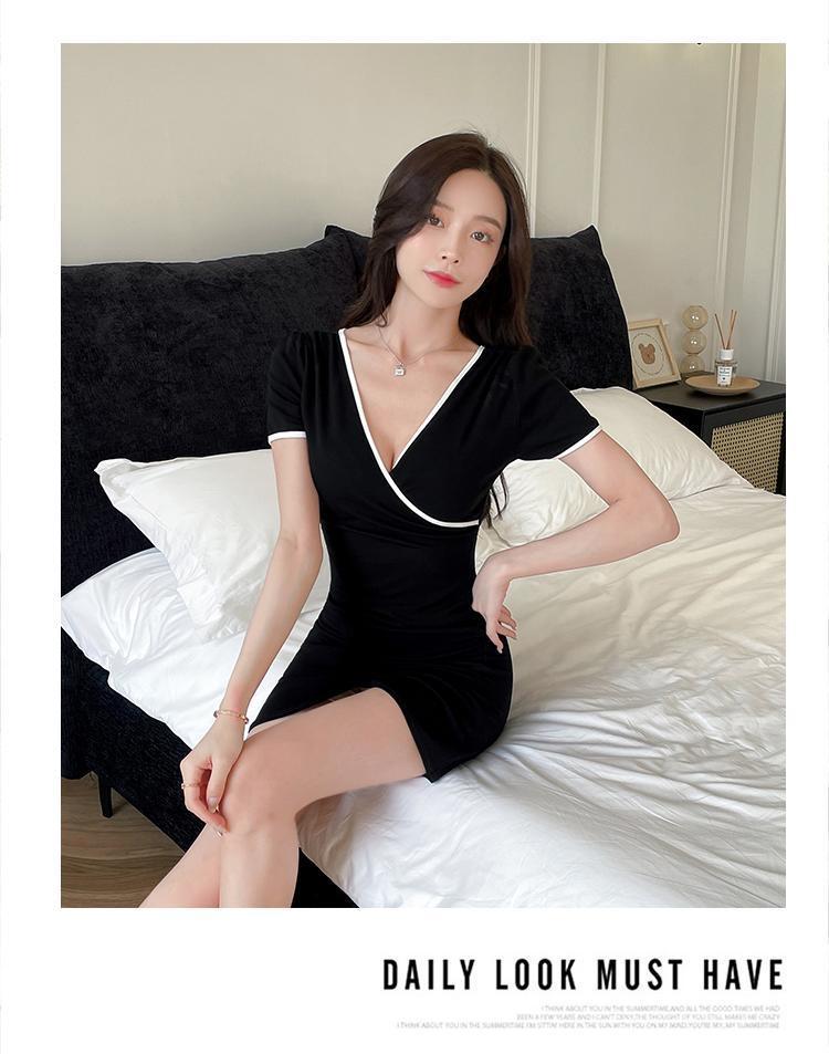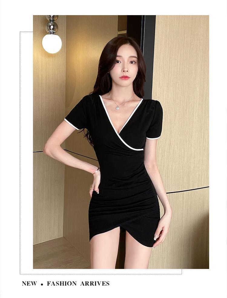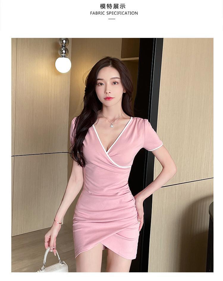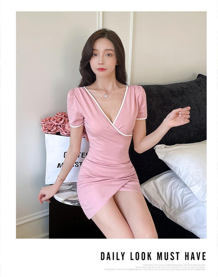 Vestido irregular pequeño de verano para mujer, de manga corta, con cuello en V, elegante, ajustado, con falda a la cadera, para técnico de baños de pies, ropa de trabajo