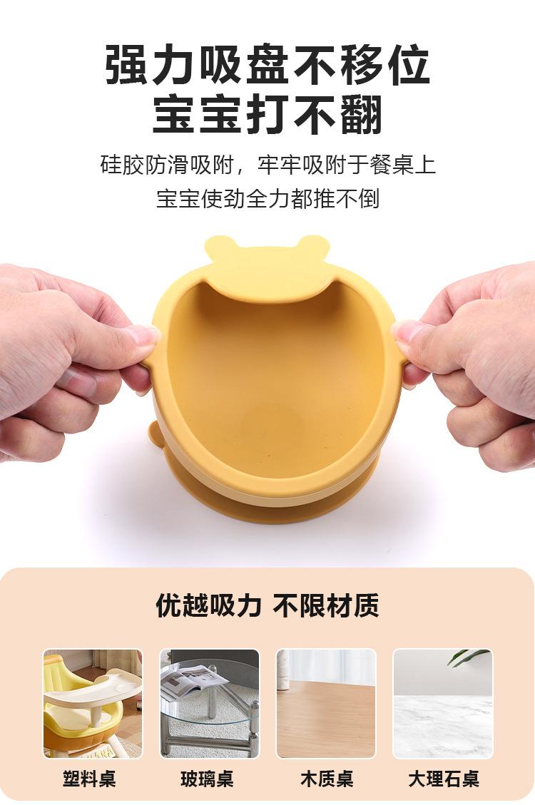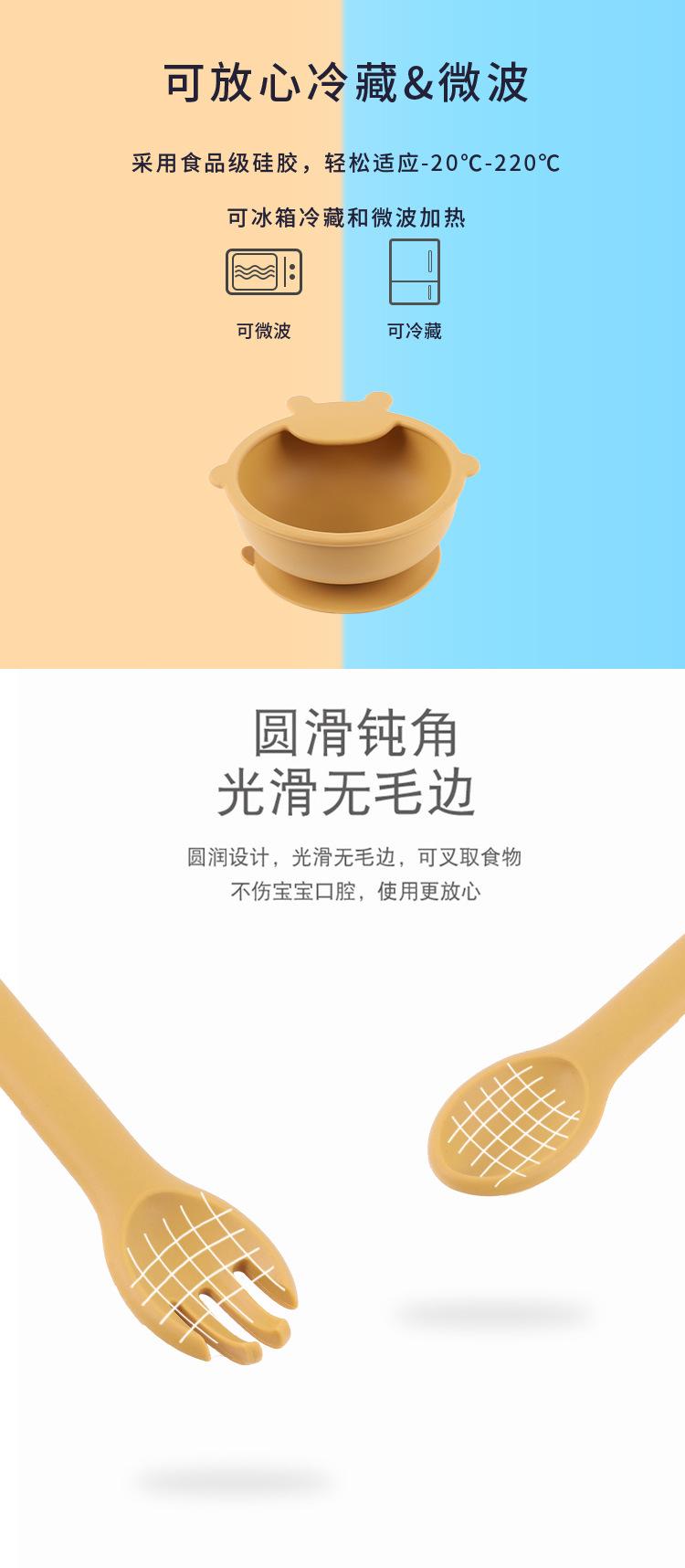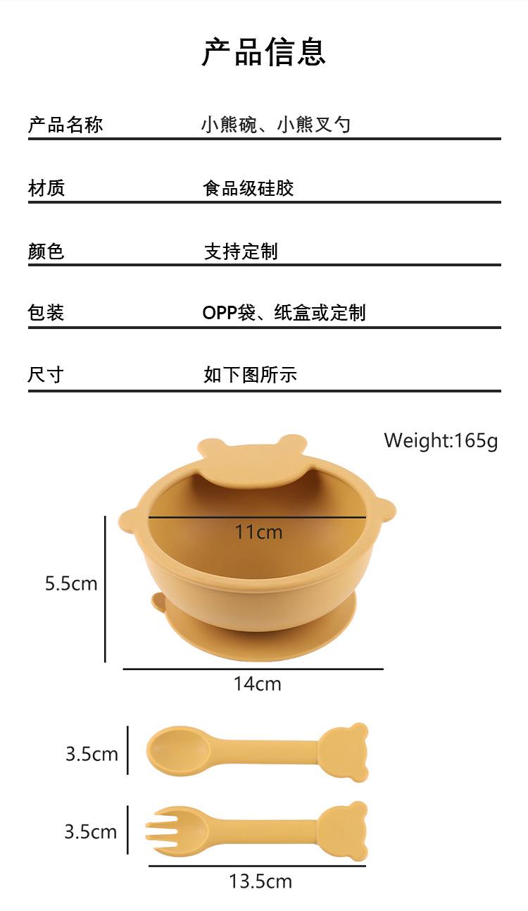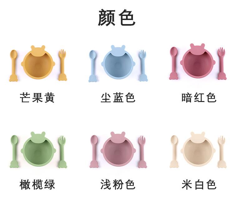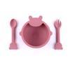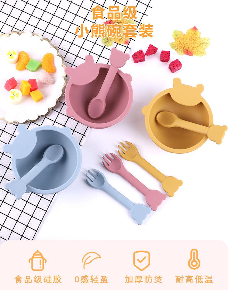 Tazón de Silicona de Oso para Niños de Venta Caliente de Fábrica Transfronteriza Tazón para Comida de Bebé Entrenamiento para Comer para Bebés Tenedor y Cuchara Resistente a Altas Temperaturas