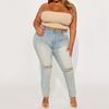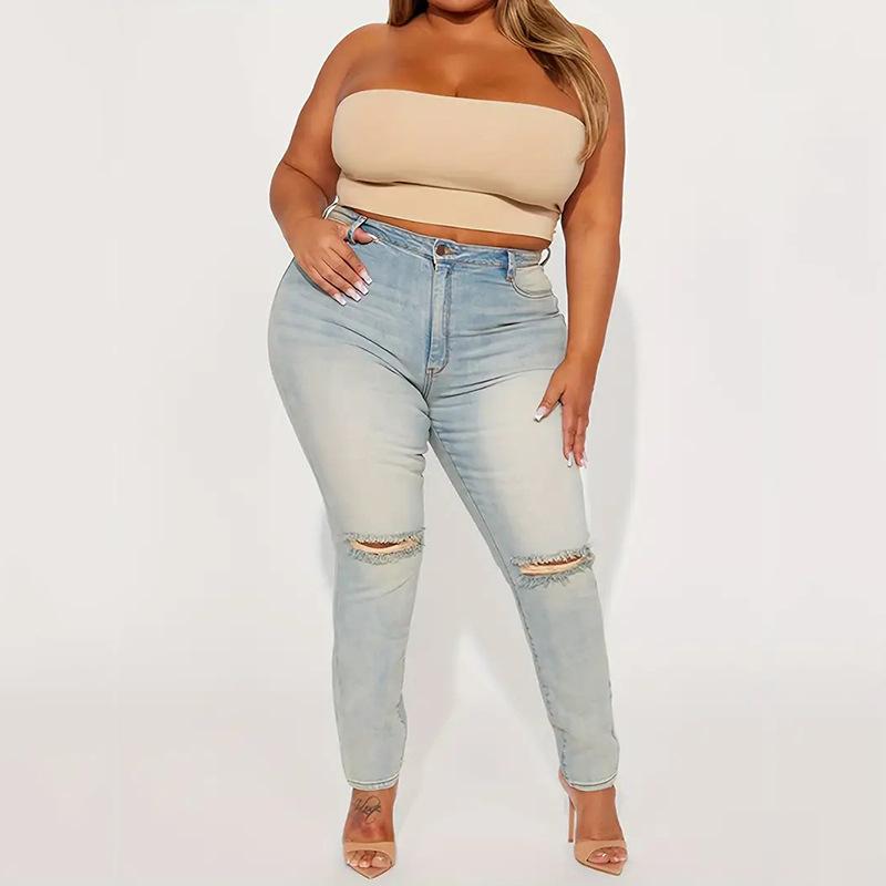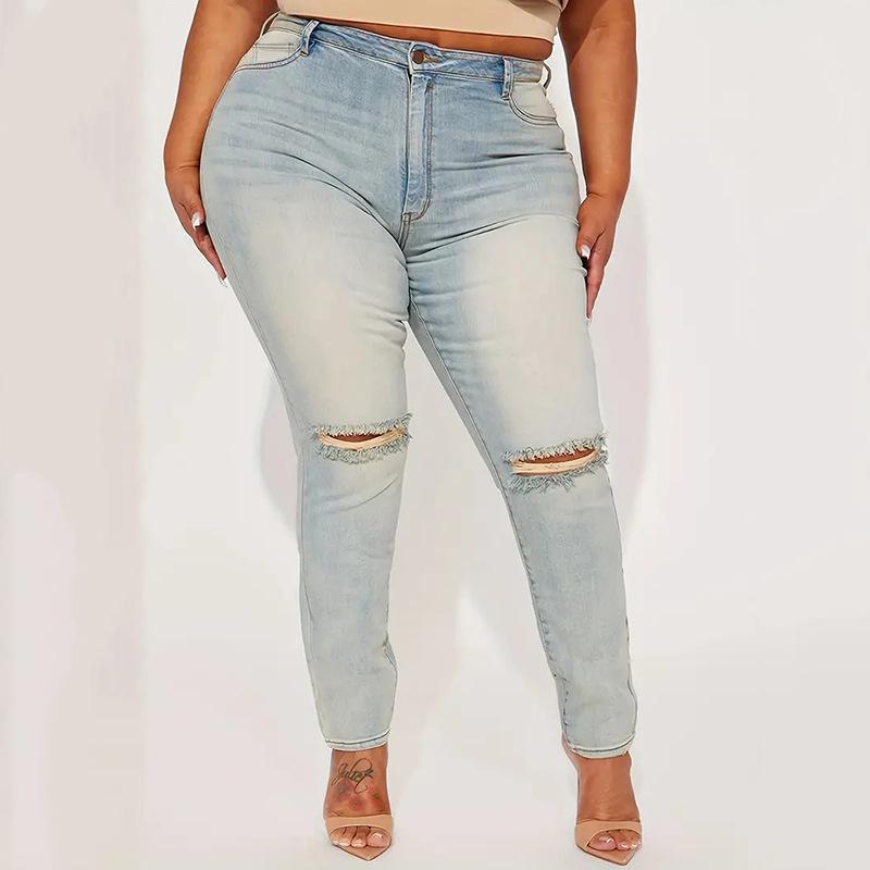 Amazon transfronterizo Tallas grandes para mujer Rotos Moda Cintura alta Estilo dulce y picante Jeans de pierna AliExpress