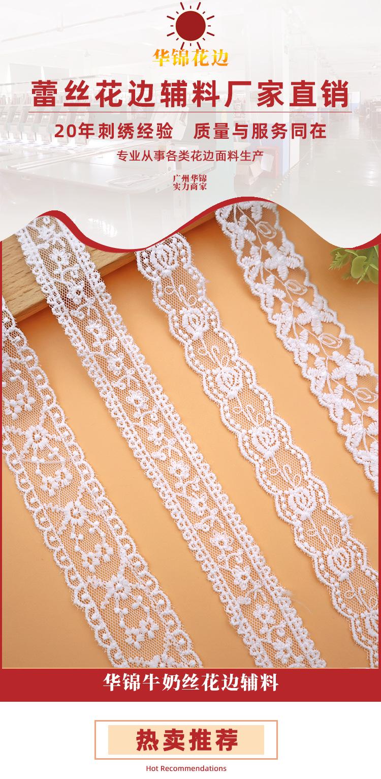 Encaje de seda de leche bordado de malla vestido de novia accesorios de ropa venta al por mayor encaje floral de malla bilateral