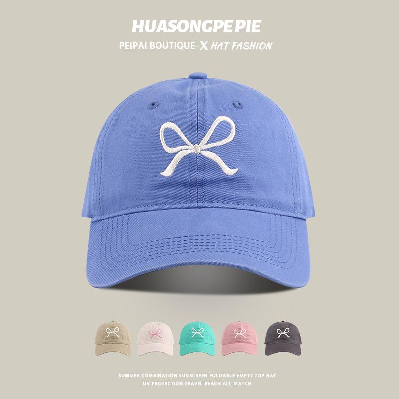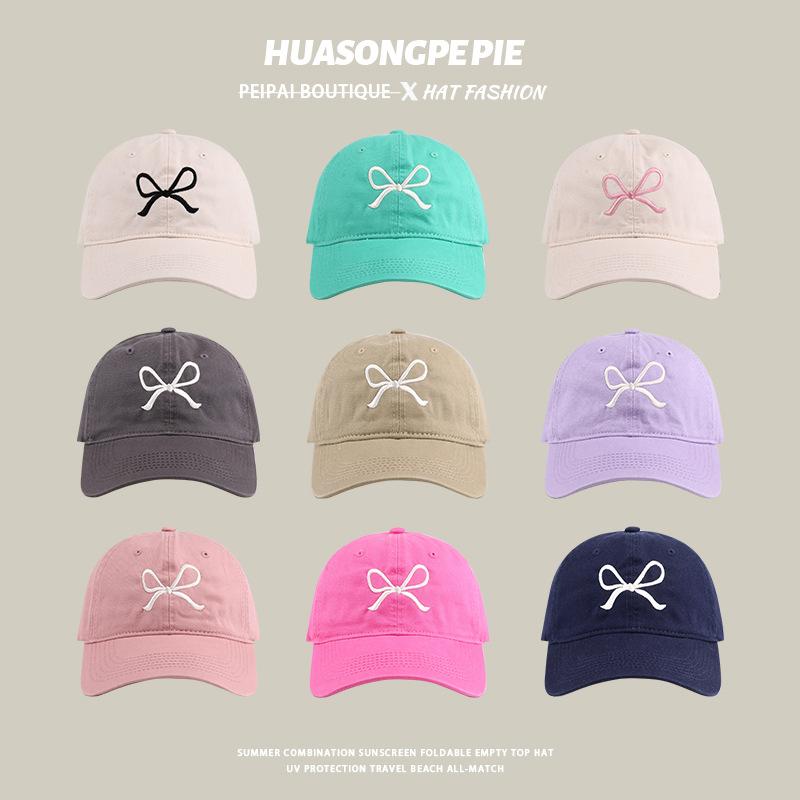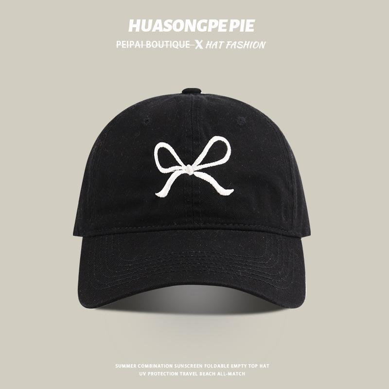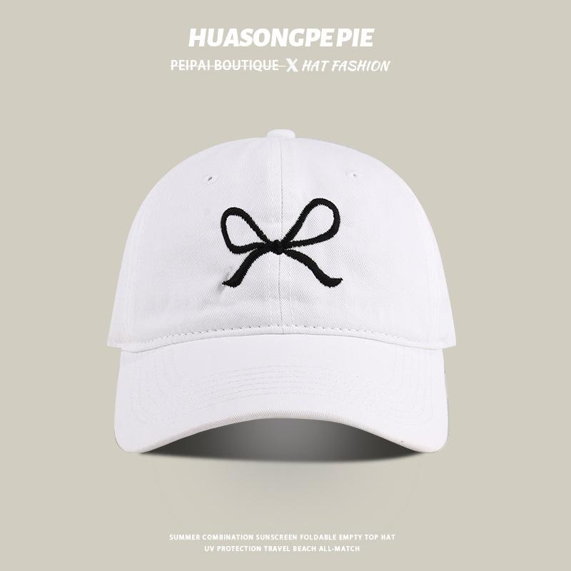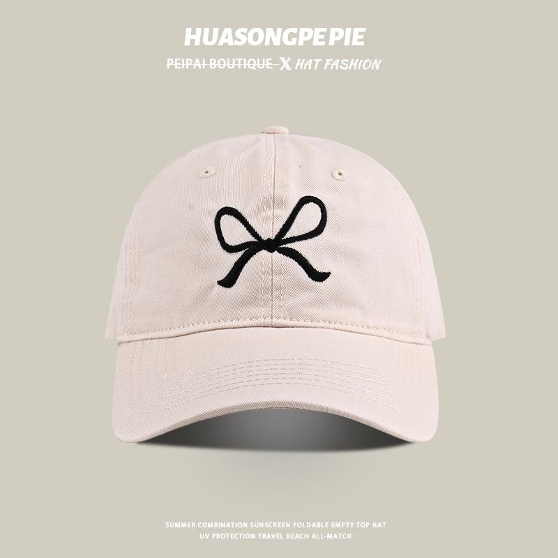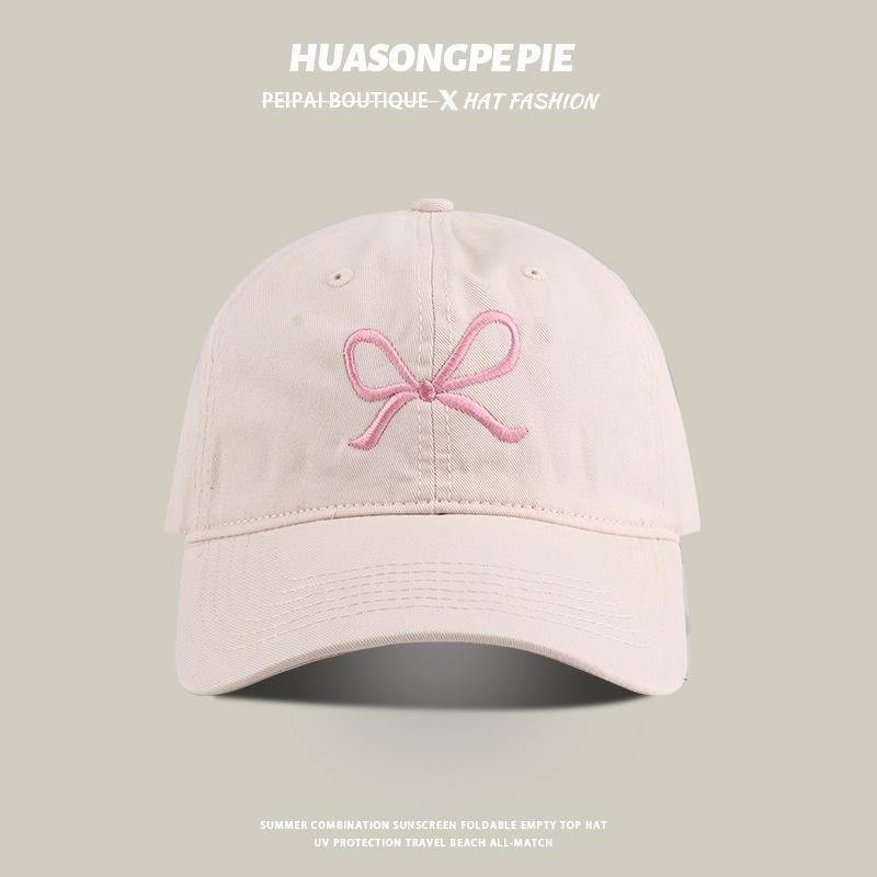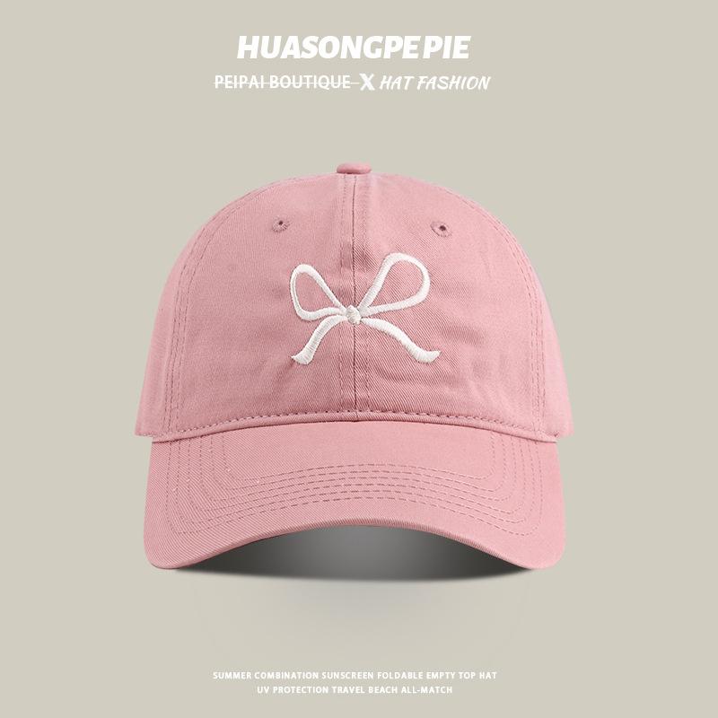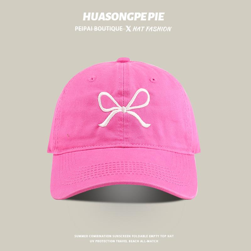 Gorra de béisbol bordada con lazo para mujer, nueva gorra para el sol de red roja para todo uso, suave y con visera pequeña que se ve genial.