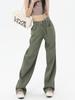 Pantalones vaqueros verdes de cintura alta y pierna ancha para mujer, holgados, con diseño adelgazante, verano 2024