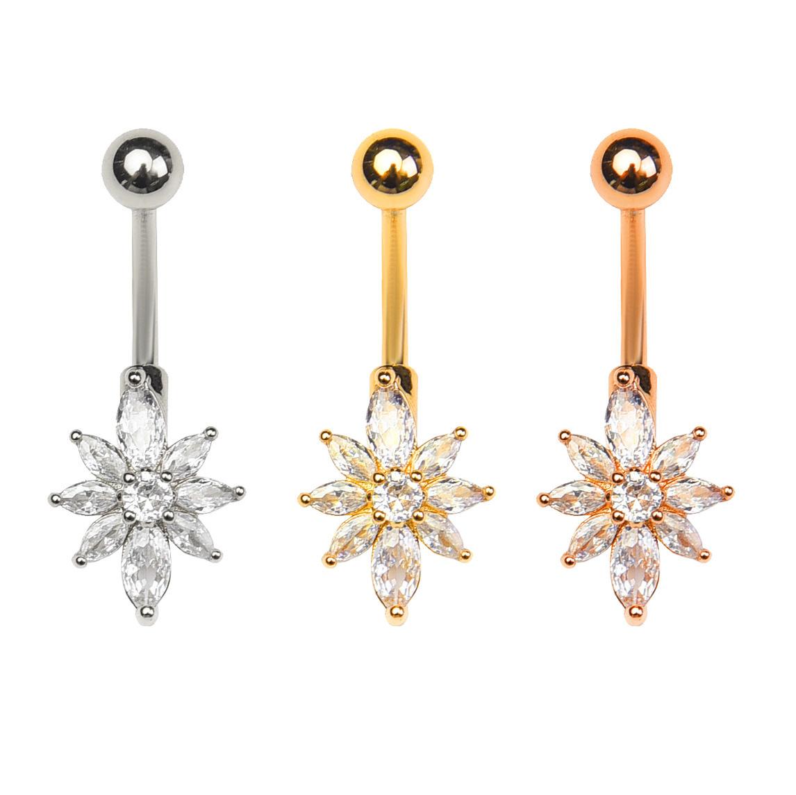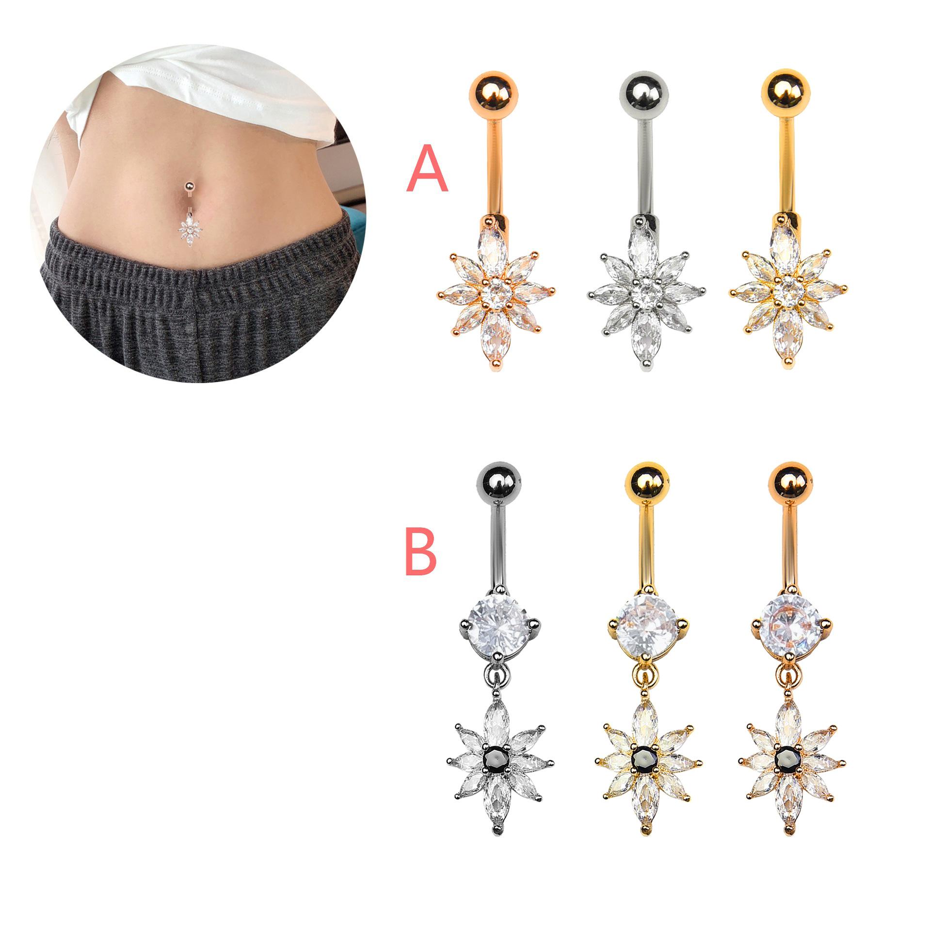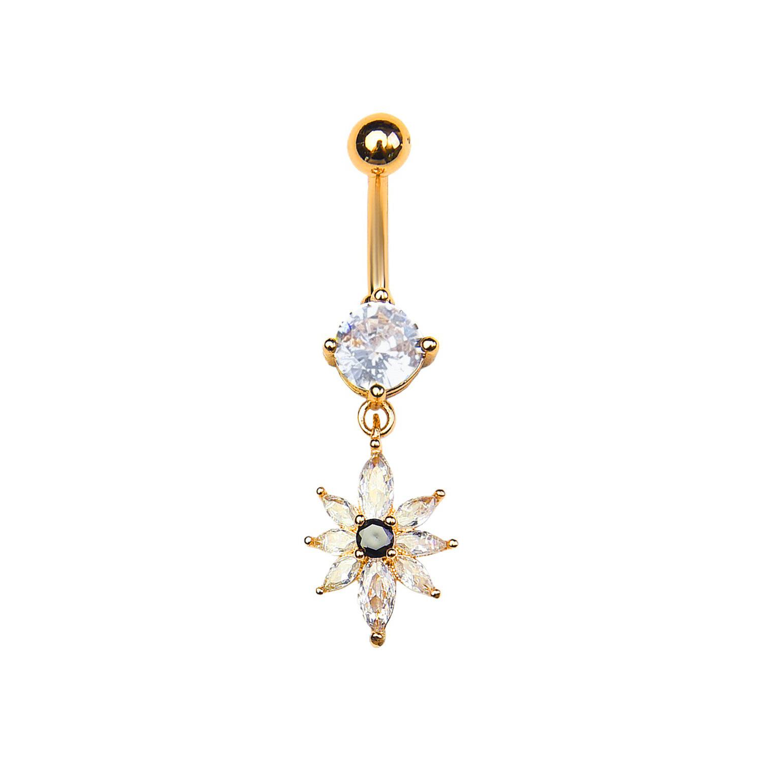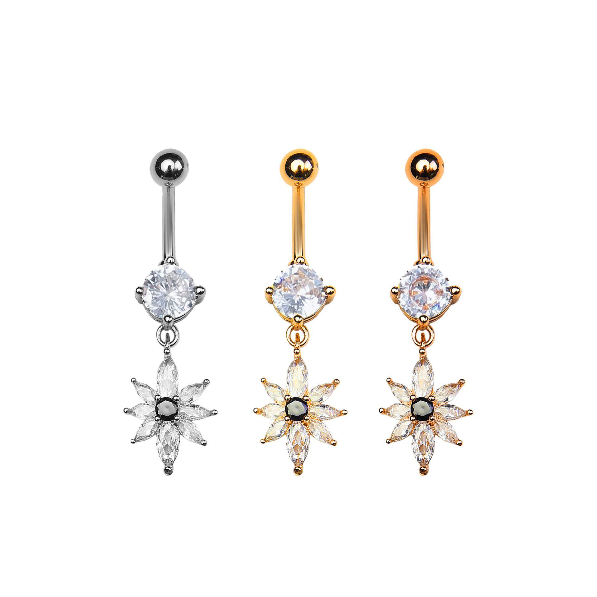 Anillo de ombligo con hebilla de circonita y flor creativa para uñas de Amazon y eBay, joyería con personalidad larga para perforar el ombligo, venta al por mayor