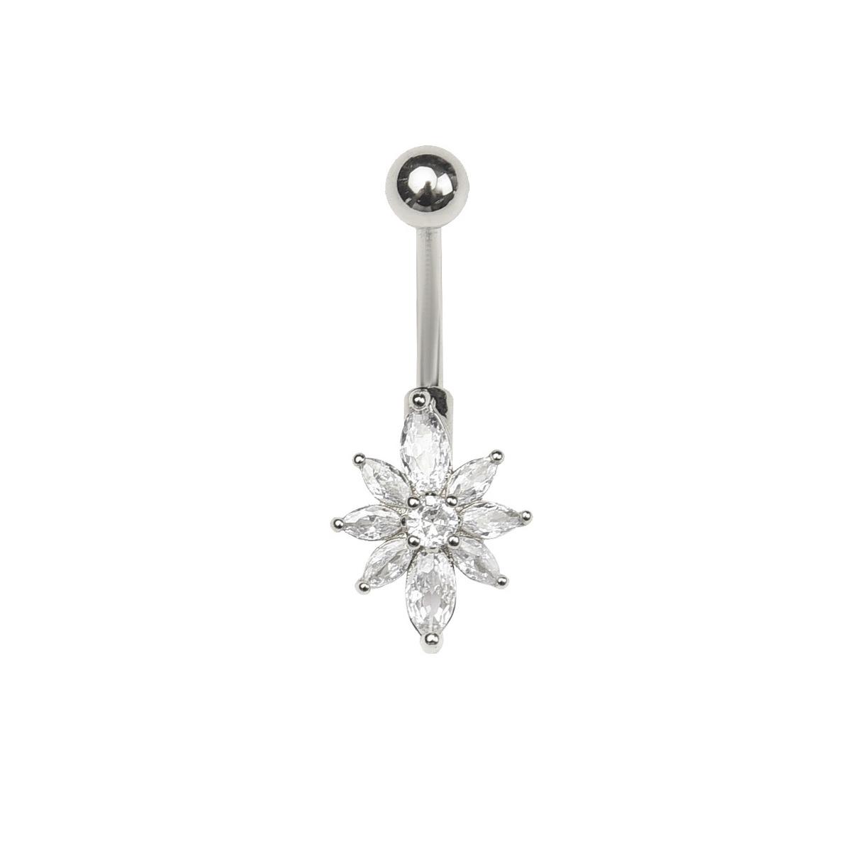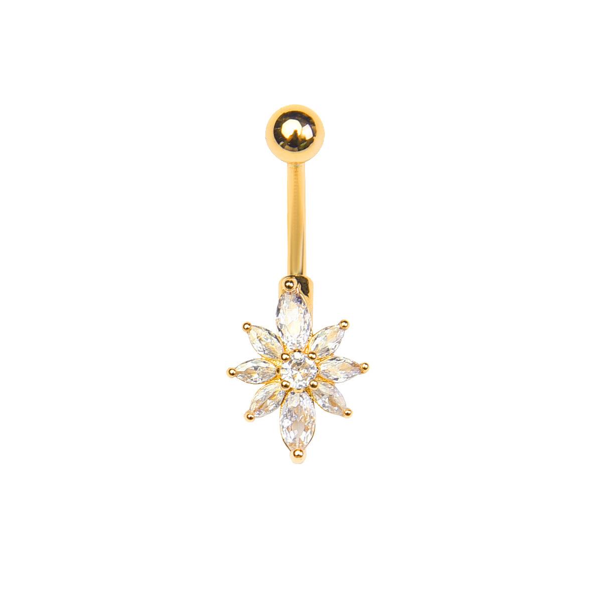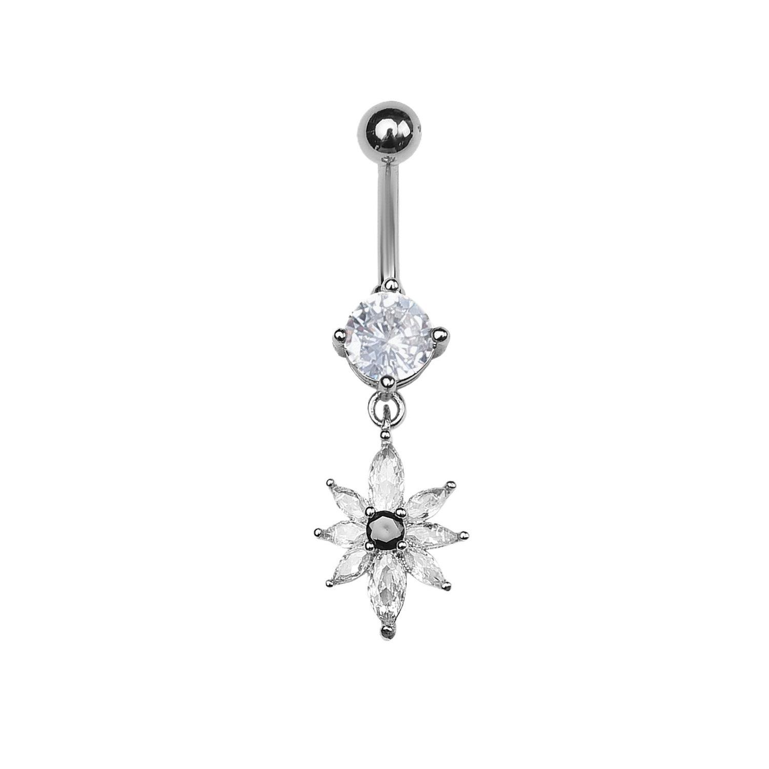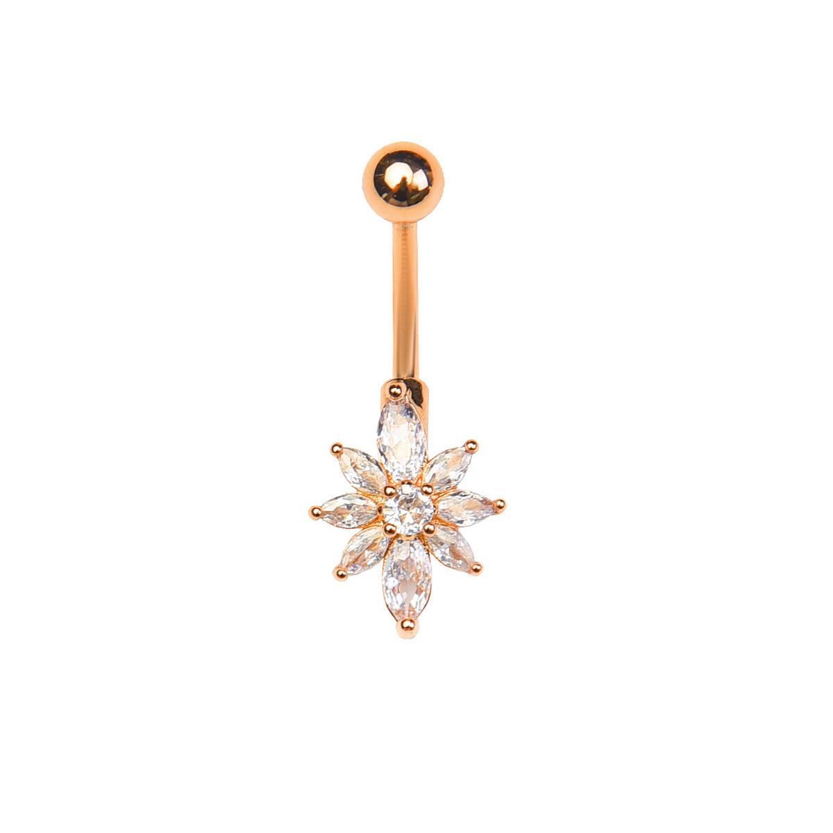 Anillo de ombligo con hebilla de circonita y flor creativa para uñas de Amazon y eBay, joyería con personalidad larga para perforar el ombligo, venta al por mayor