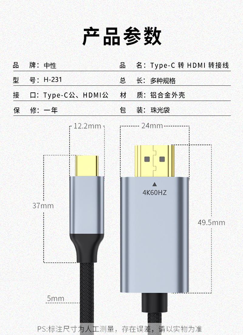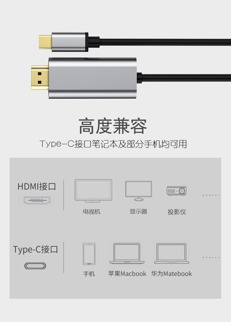Tipo-c a HDMI HD con línea de pantalla 4k para visualización de pantalla de portátil Tipo-c A HDMI