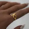 Anillo de Acero Inoxidable con Diseño Geométrico Redondo de Girasol en Forma de Corazón de Estilo Retro Transfronterizo Incrustado con Zircón Venta al por Mayor