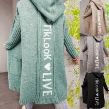 Suéter casual de mujer otoño e invierno cárdigan de punto suelto abrigo de longitud media