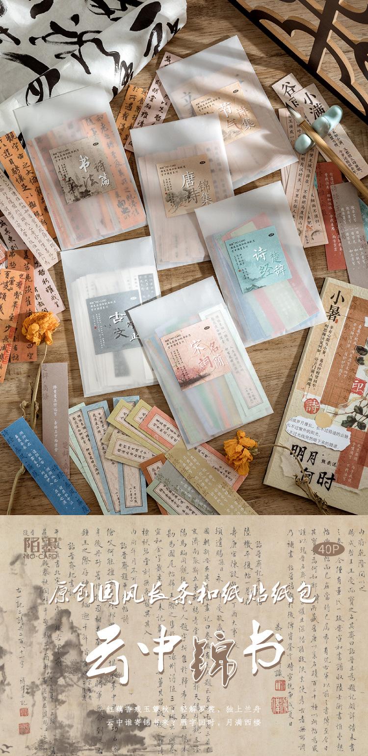 Paquete de pegatinas de papel y tiras largas Momo, serie de libros de brocado de nubes, estilo nacional, diario, material de bricolaje, pegatinas decorativas, 6 modelos