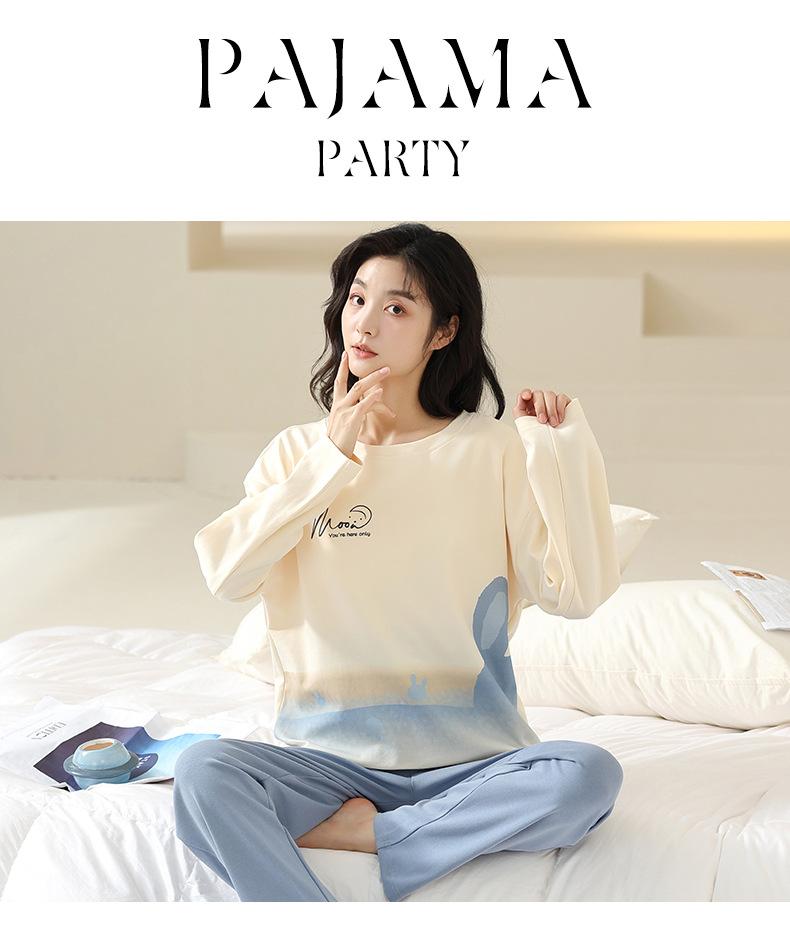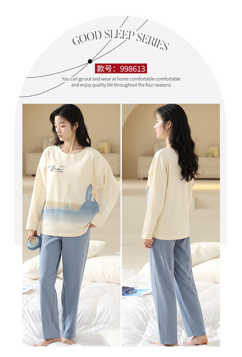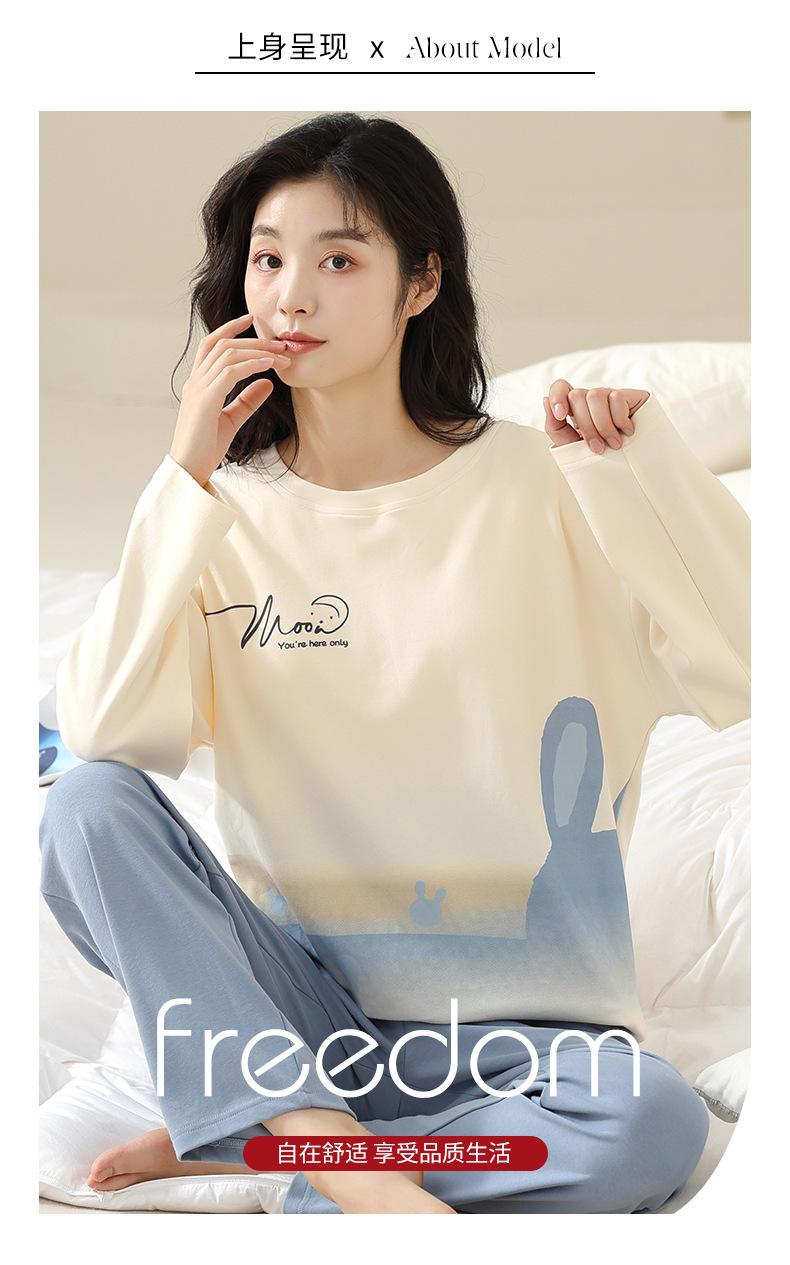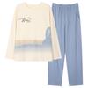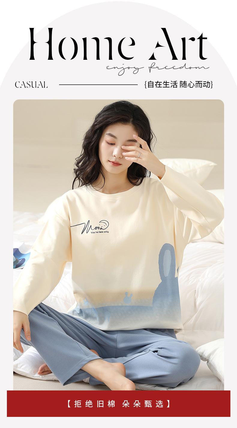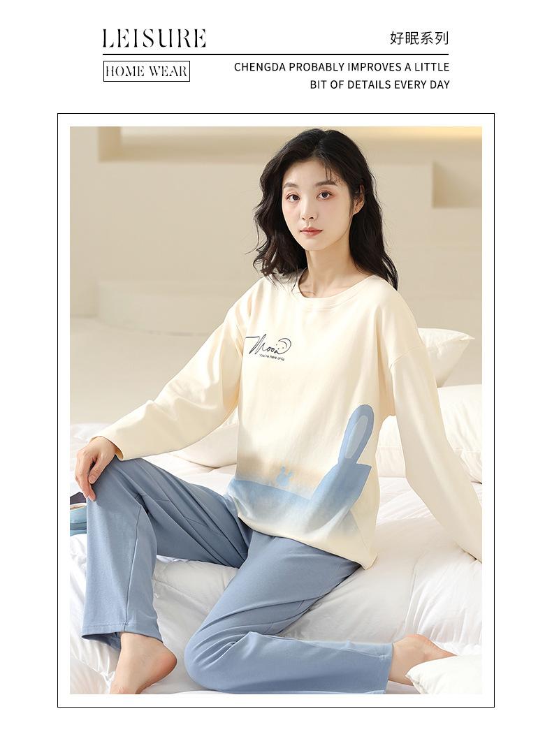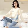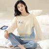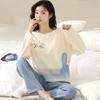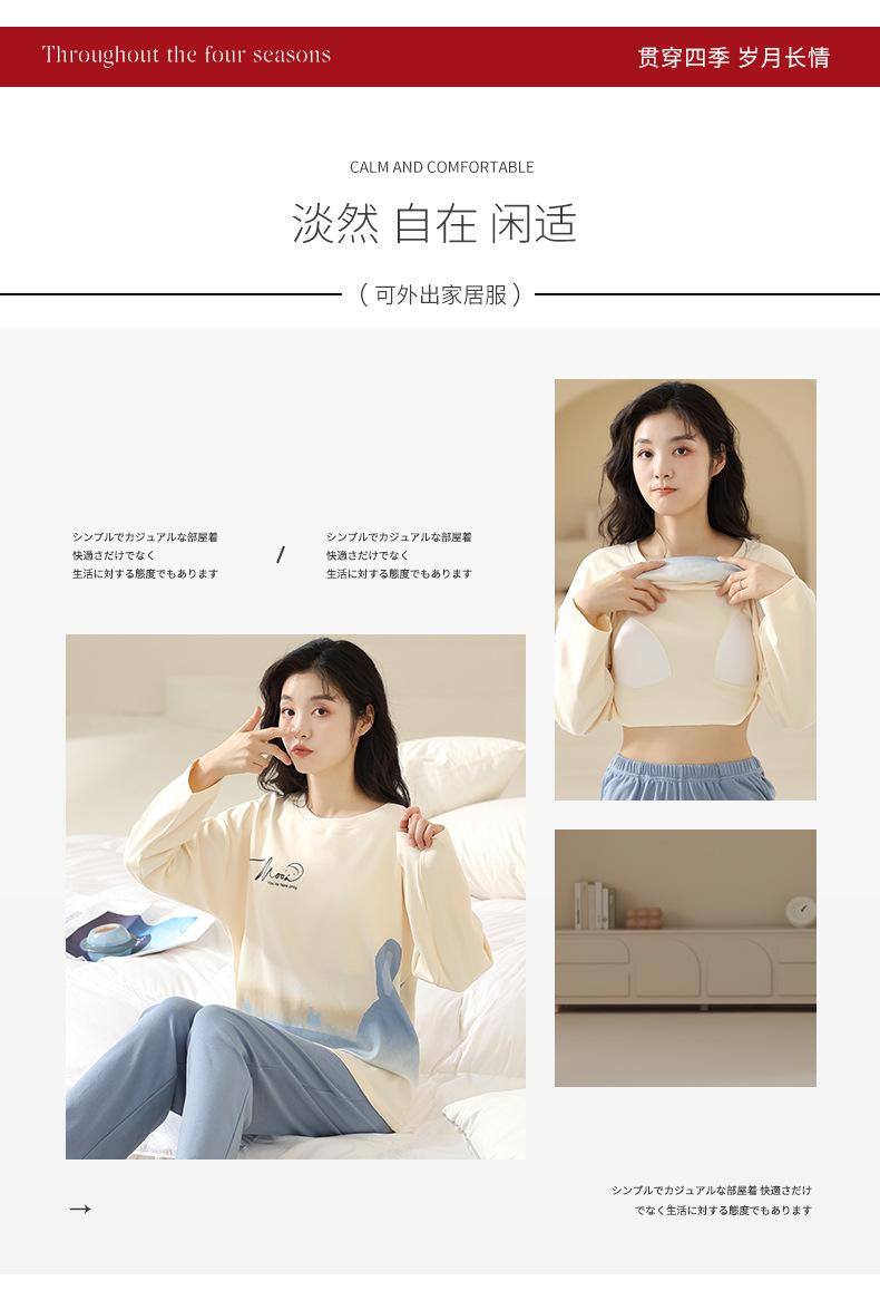 [Pijama anti-golpes para mujer con almohadilla en el pecho] Nuevo de primavera, algodón puro, sin sujetador, manga larga, conjunto de pantalones, ropa para el hogar