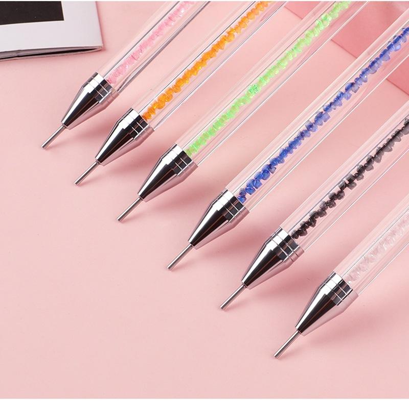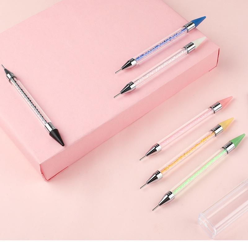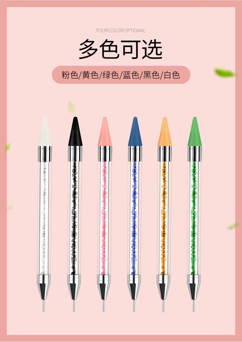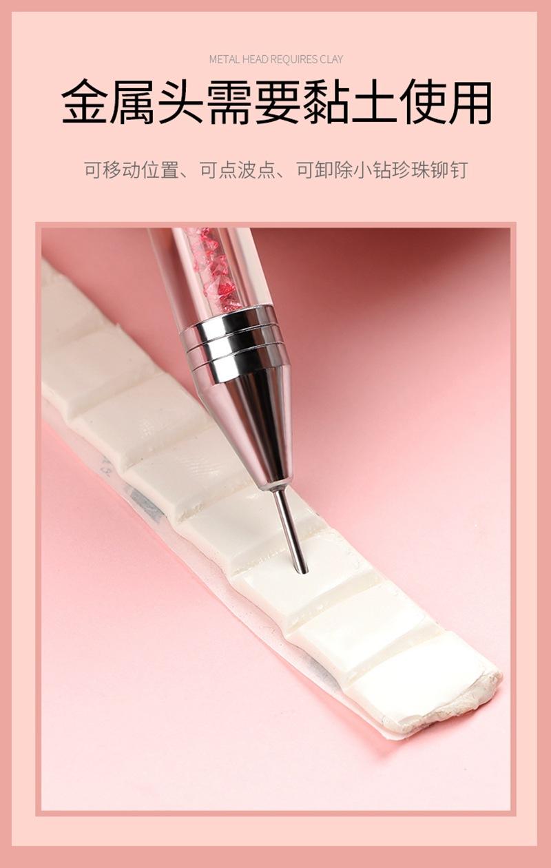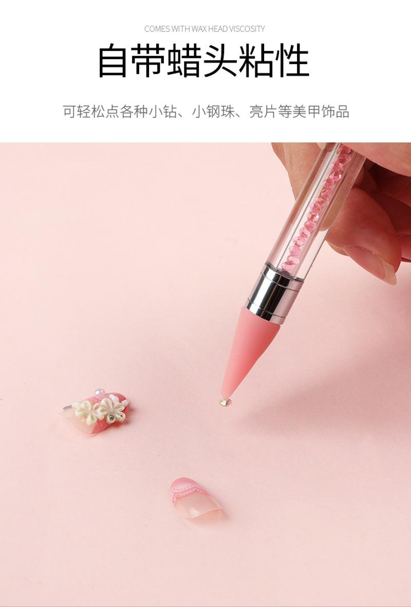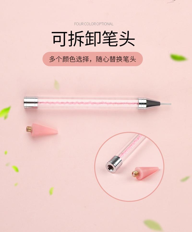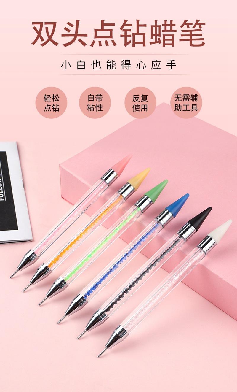 Pluma para Manicura de Doble Punta, Pluma para Puntear Manicura, Varilla para Taladro, Calcomanía Adhesiva para Taladro, Herramienta para Uñas de Diamante, Cabeza de Cera, Viene con Cera de Manicura Adhesiva