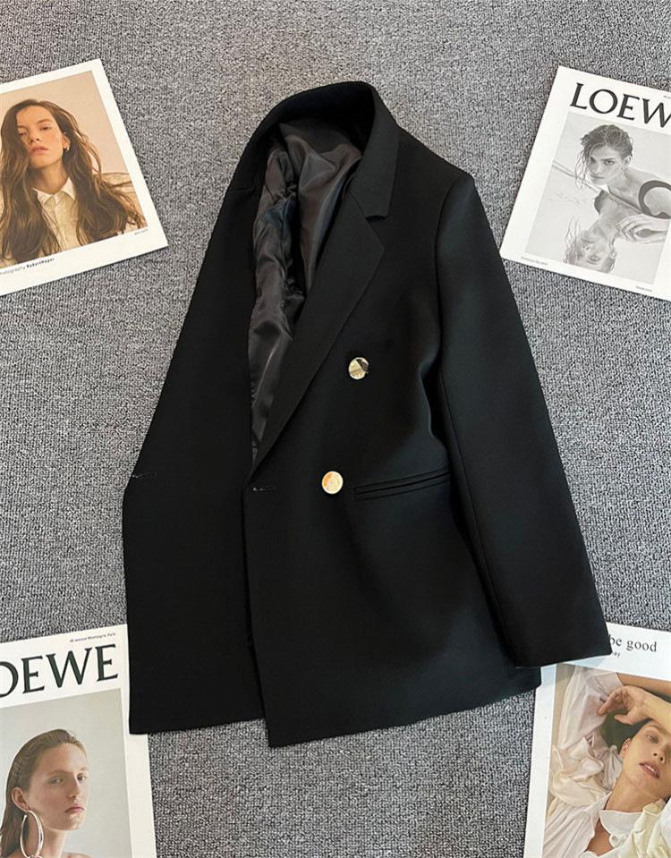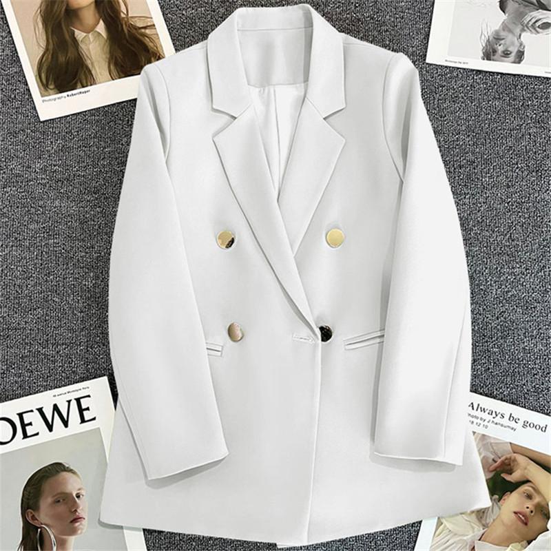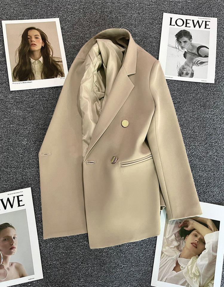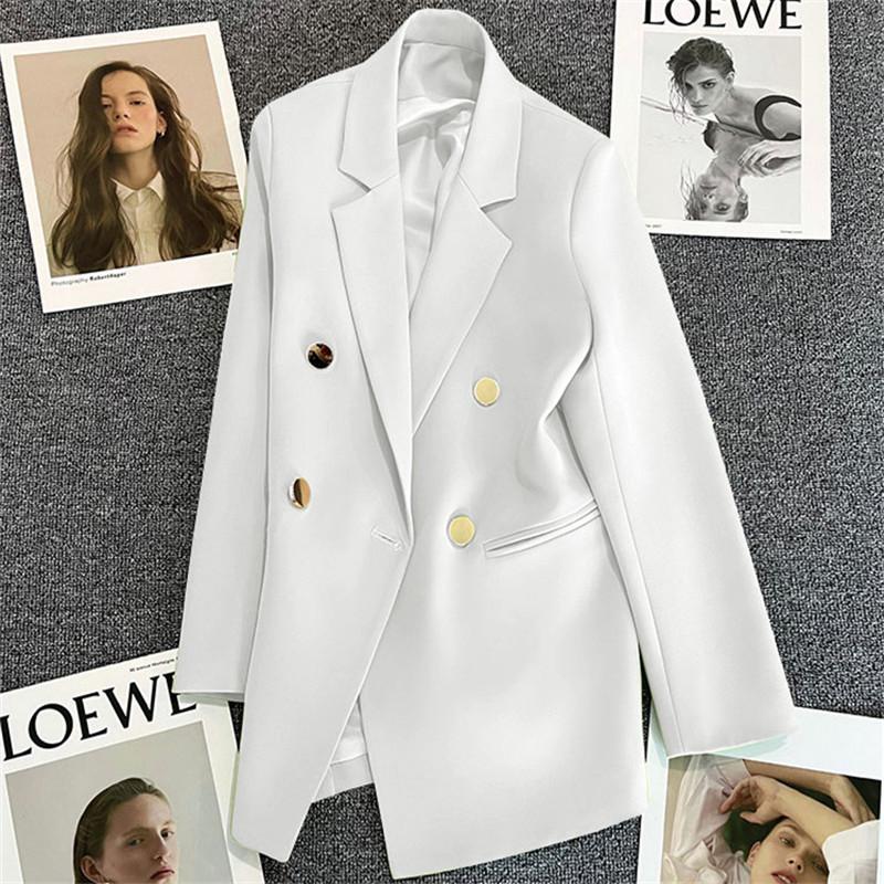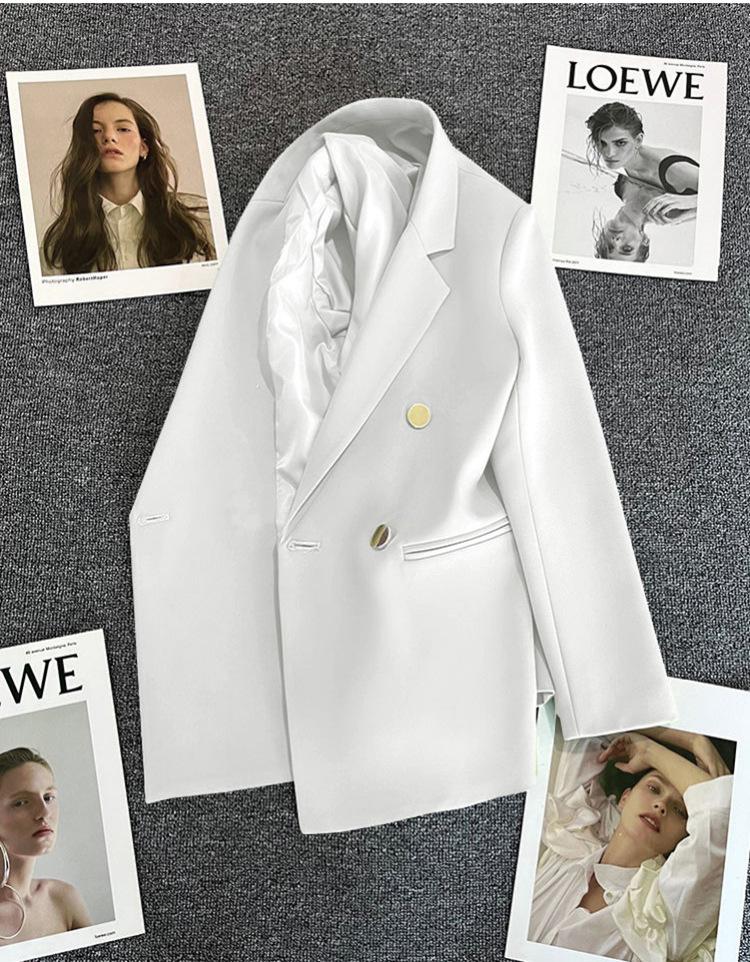 Chaqueta de Traje Blanca Leche con Hebilla Metálica para Mujer 2024 Primavera & Otoño Nuevo Estilo Coreano Casual Versátil Slim Traje Ropa de Trabajo