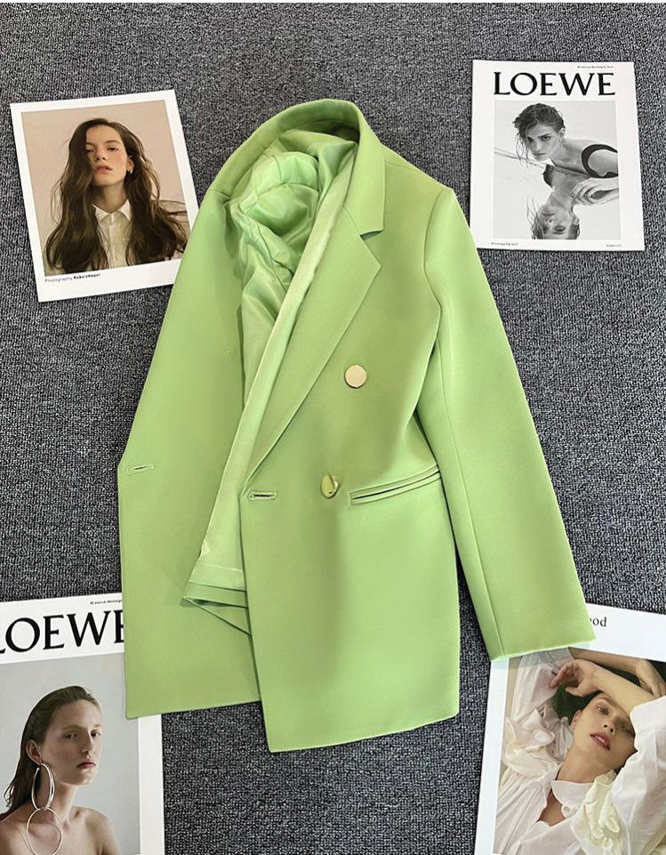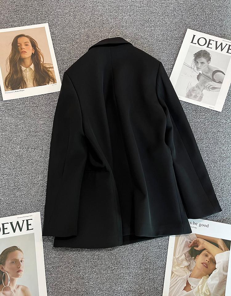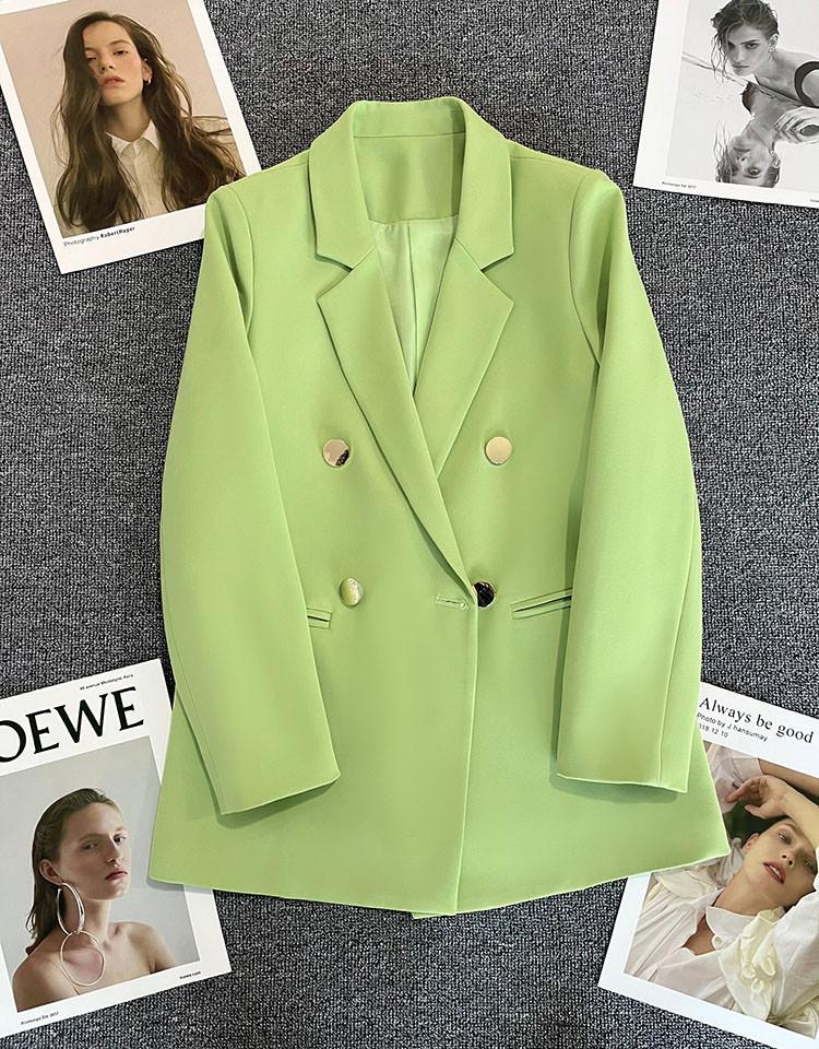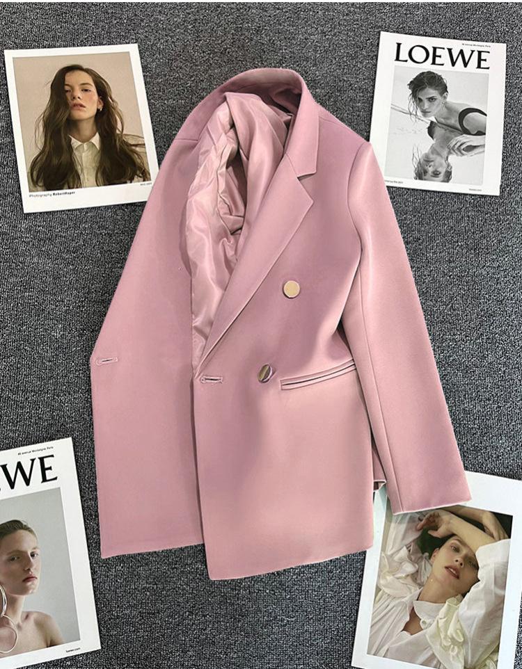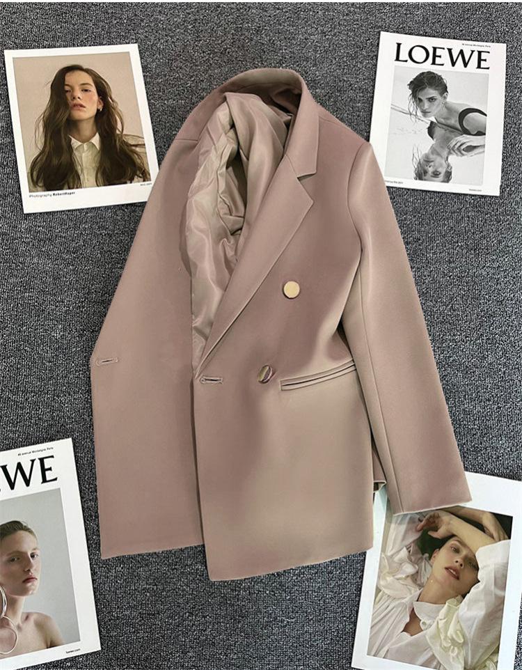 Chaqueta de Traje Blanca Leche con Hebilla Metálica para Mujer 2024 Primavera & Otoño Nuevo Estilo Coreano Casual Versátil Slim Traje Ropa de Trabajo