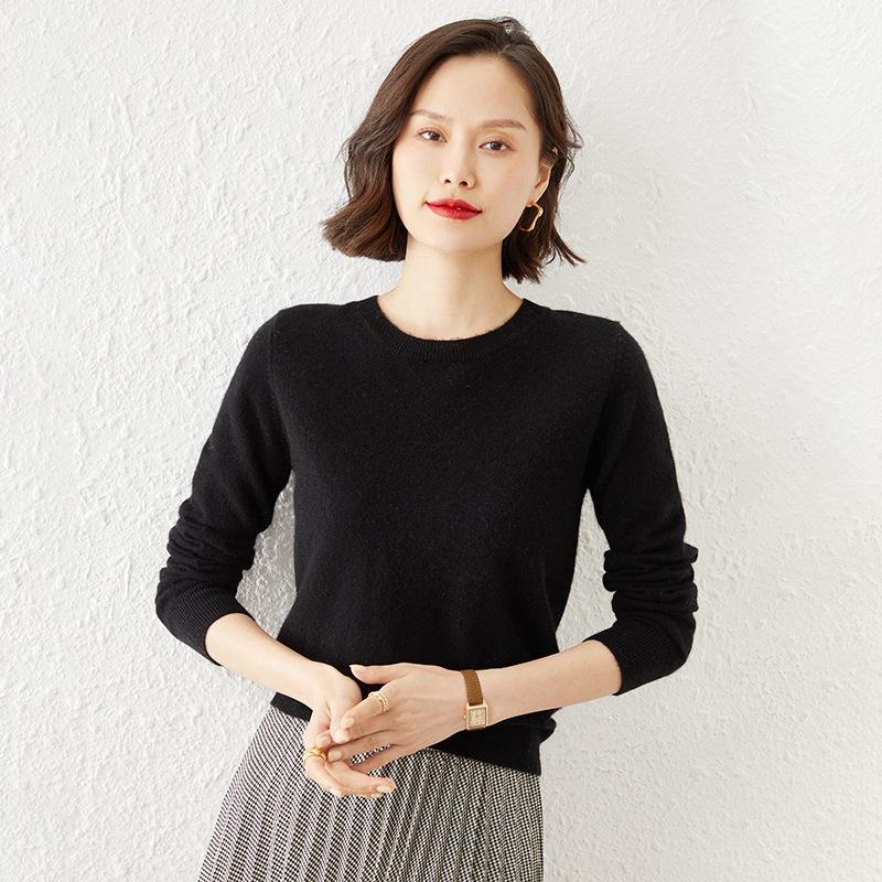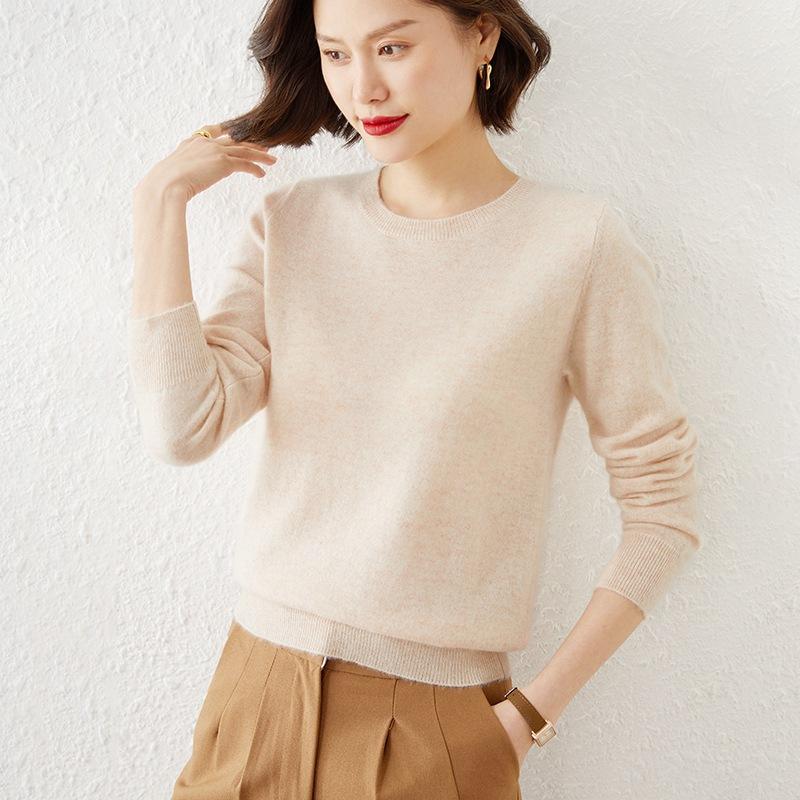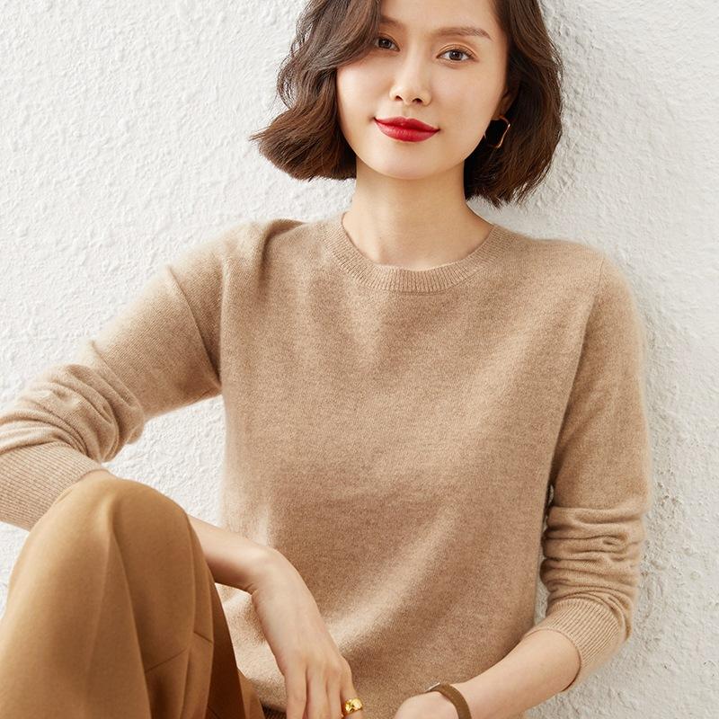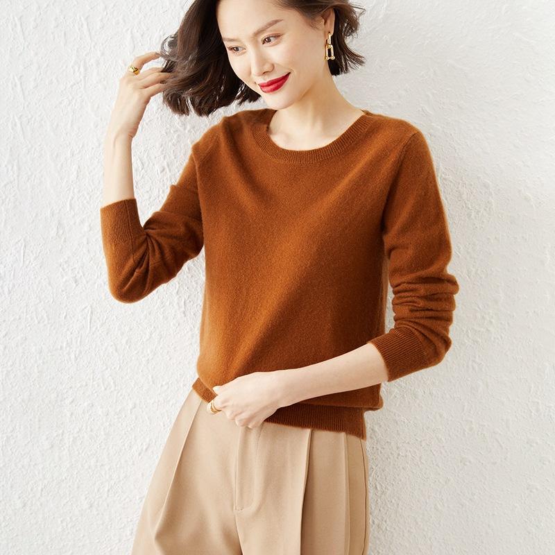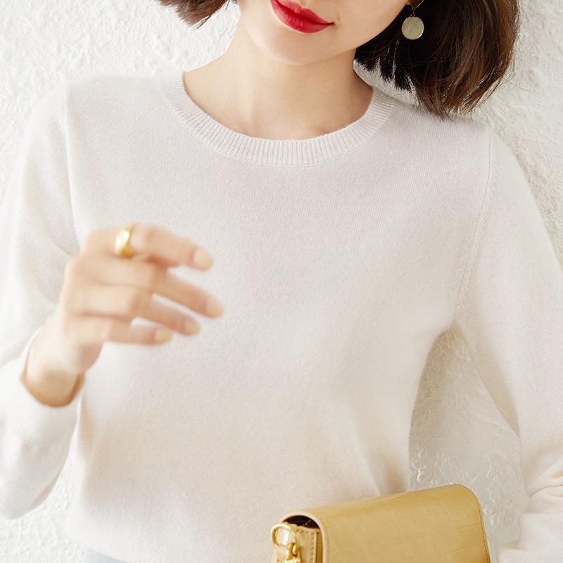23 Nueva Camiseta Básica de Cuello Redondo de Otoño e Invierno para Mujer, Prendas de Punto de Manga Larga Ajustadas para Mujer, Prendas de Punto Tejidas, Modernas y Simples