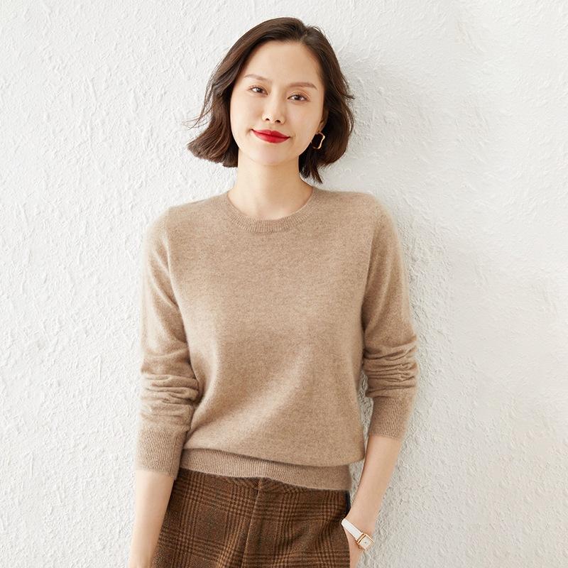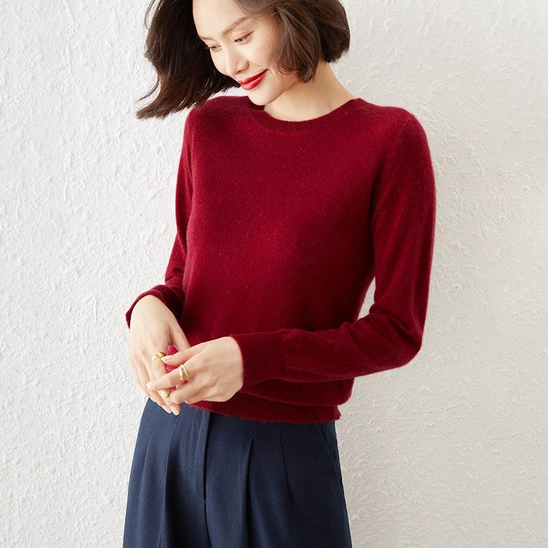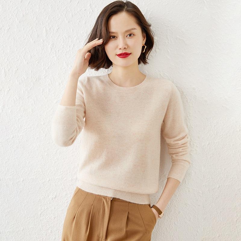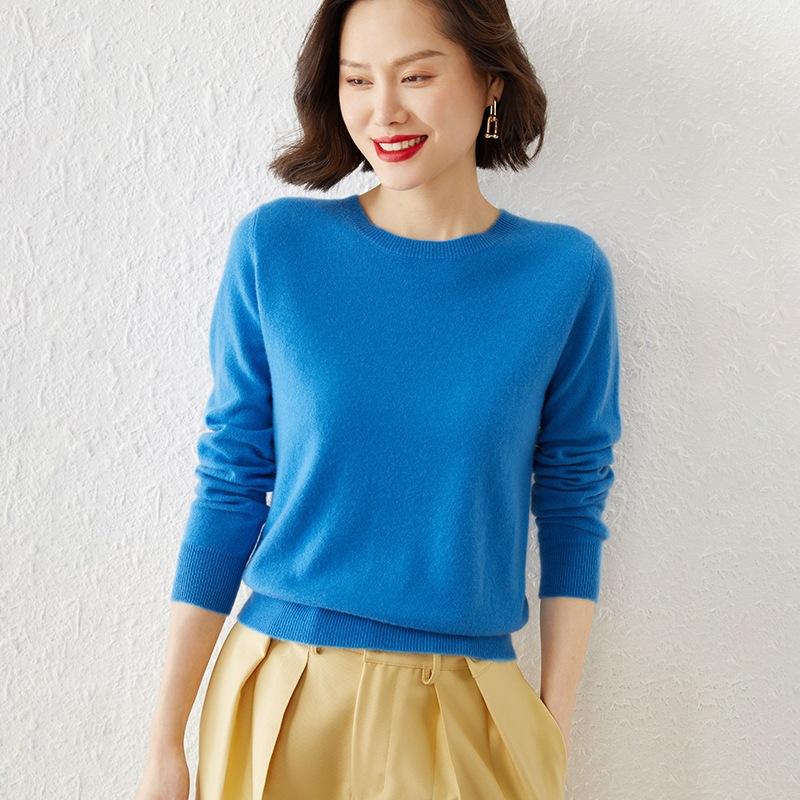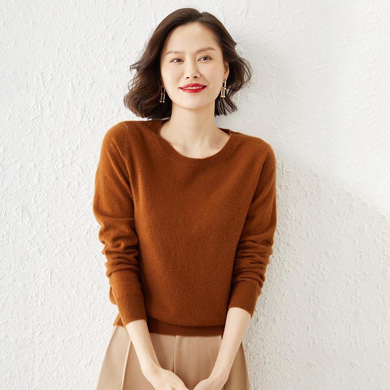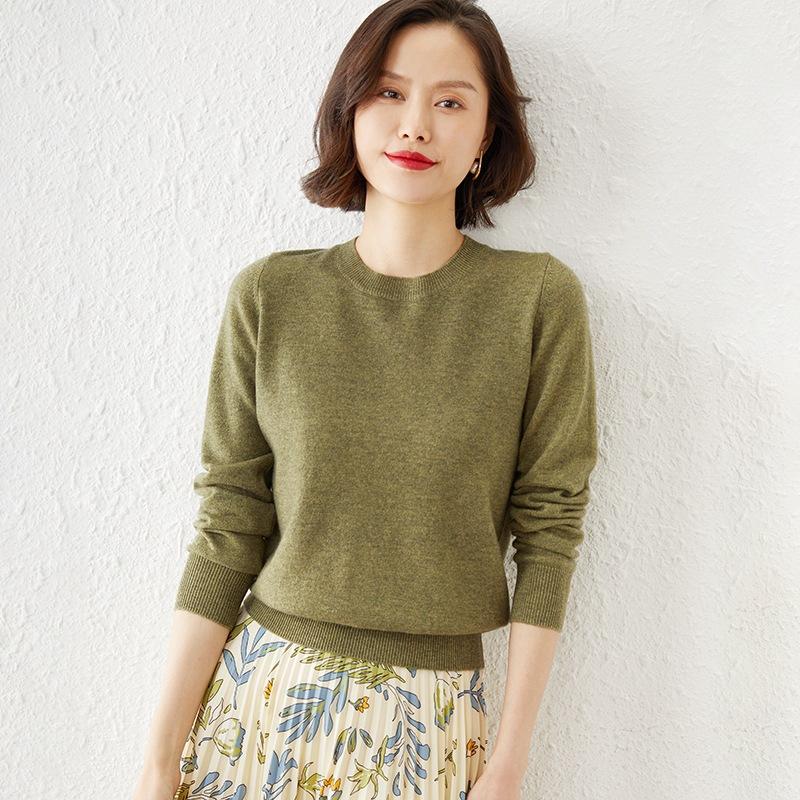 23 Nueva Camiseta Básica de Cuello Redondo de Otoño e Invierno para Mujer, Prendas de Punto de Manga Larga Ajustadas para Mujer, Prendas de Punto Tejidas, Modernas y Simples