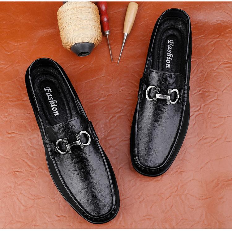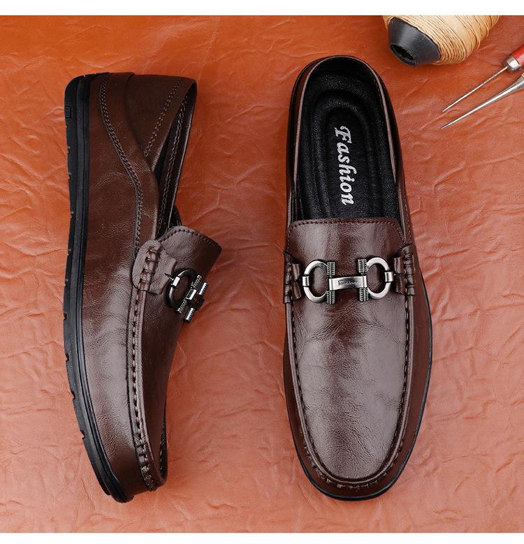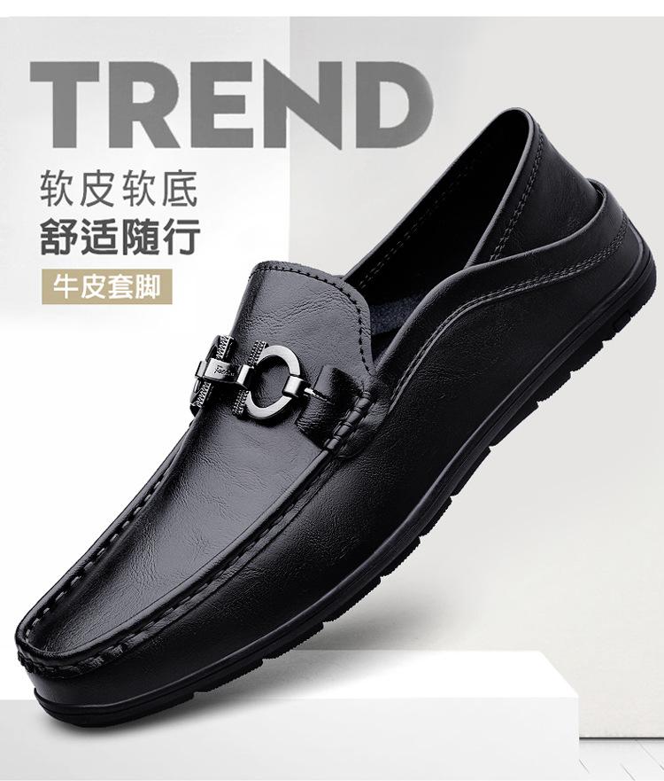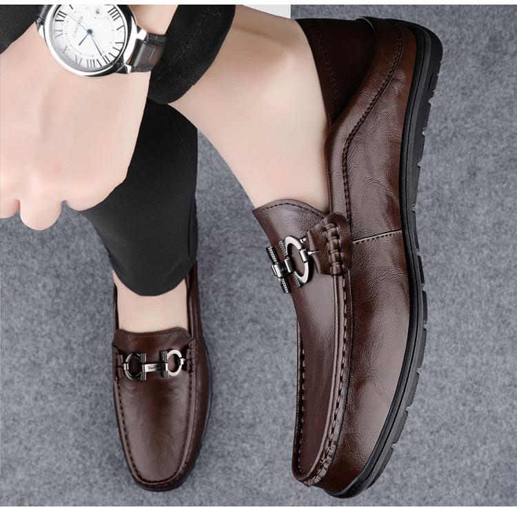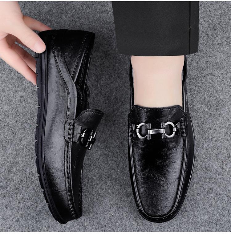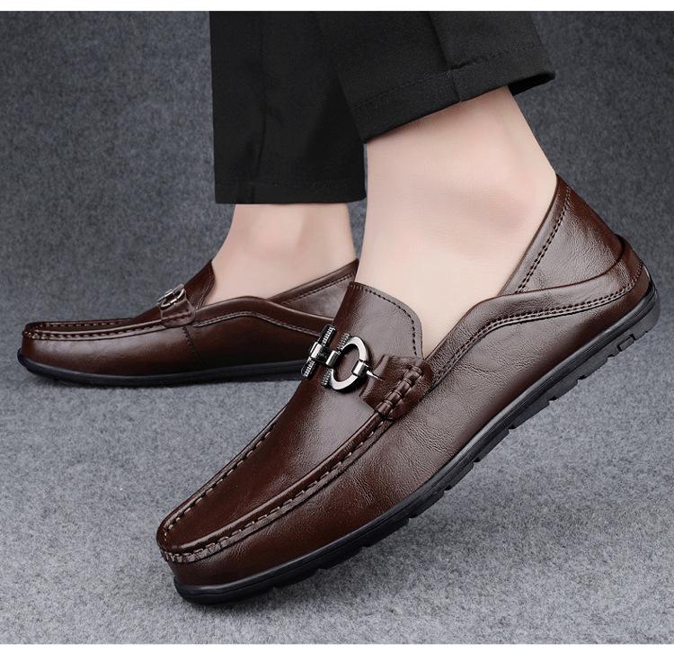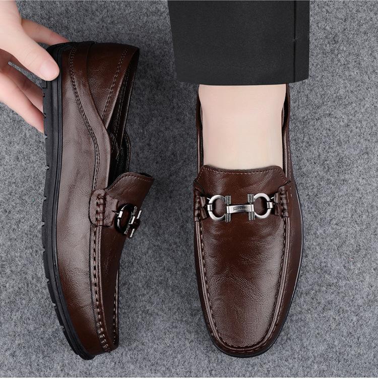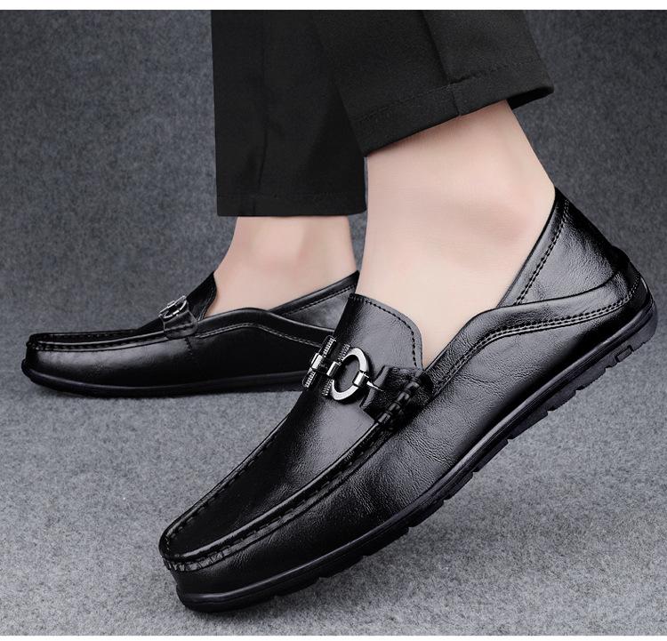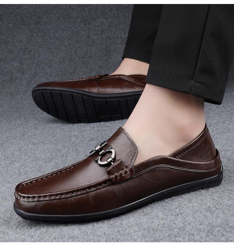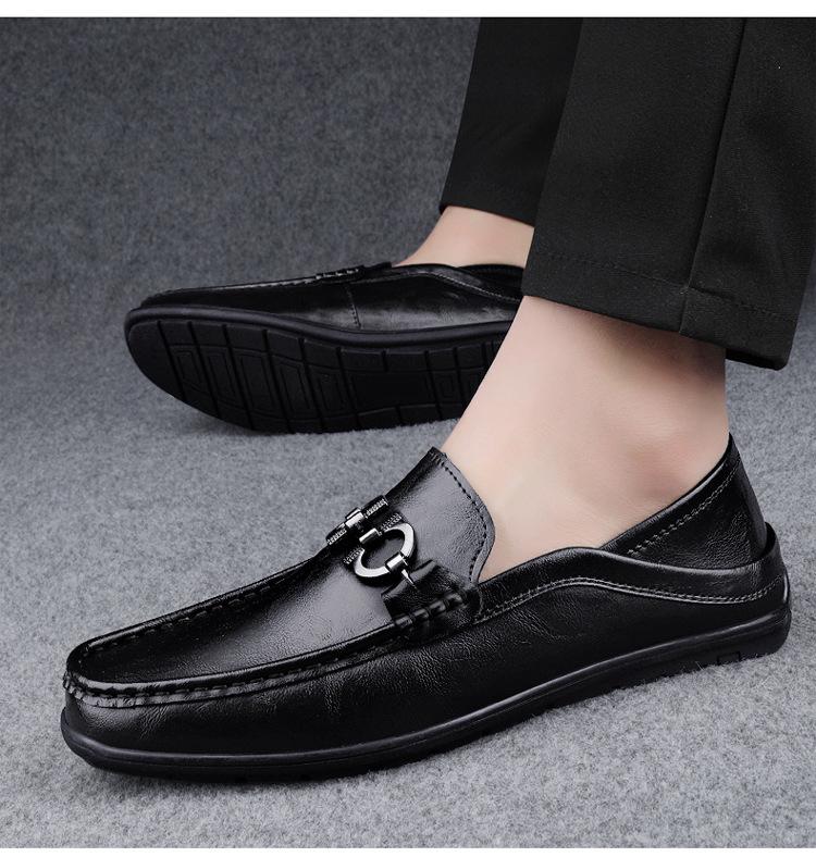 Zapatos de Cuero para Hombre Primavera 2024 Nuevos Negocios Cuero Genuino Suela Suave Casual Frijol Zapatos Transpirables Perezosos Slip-on