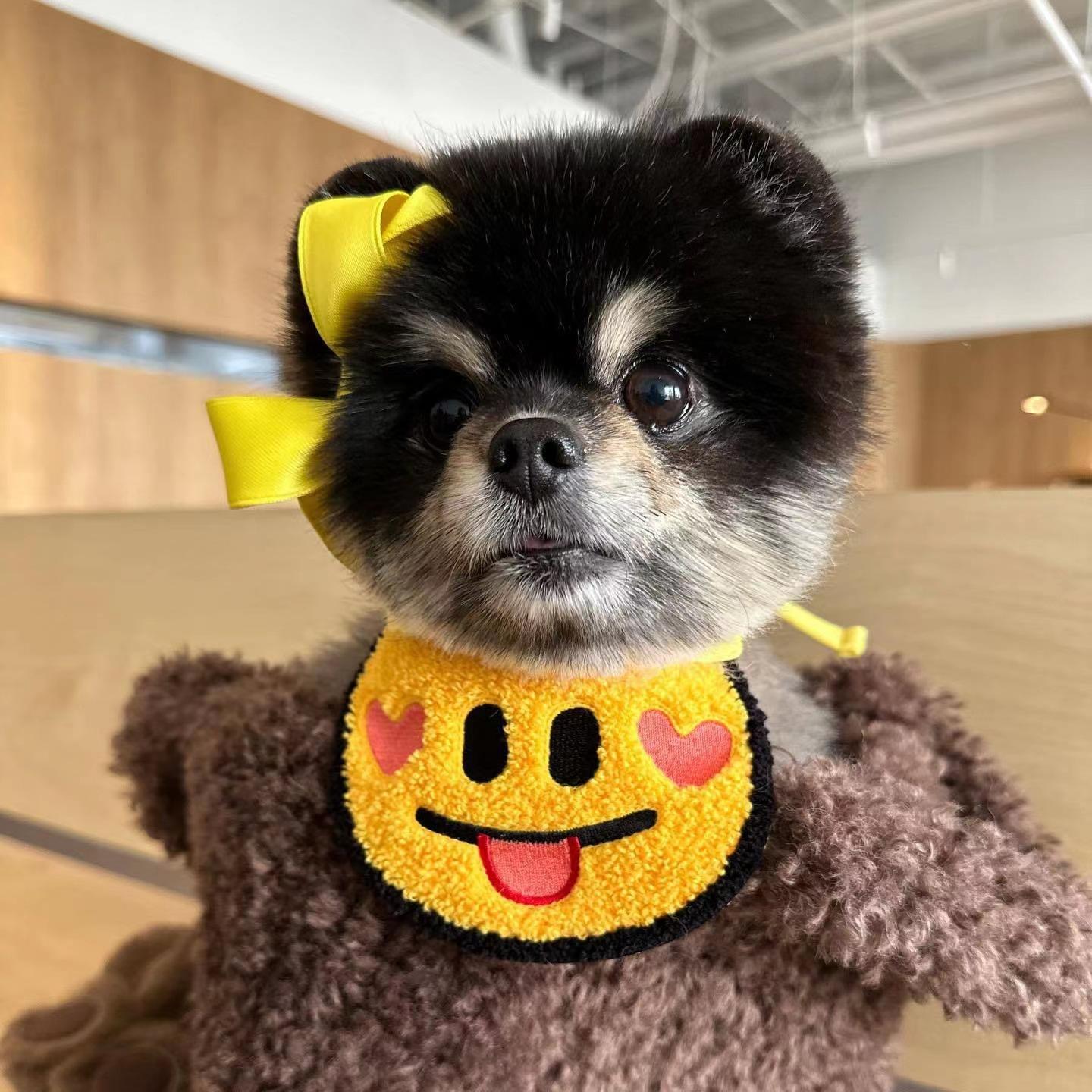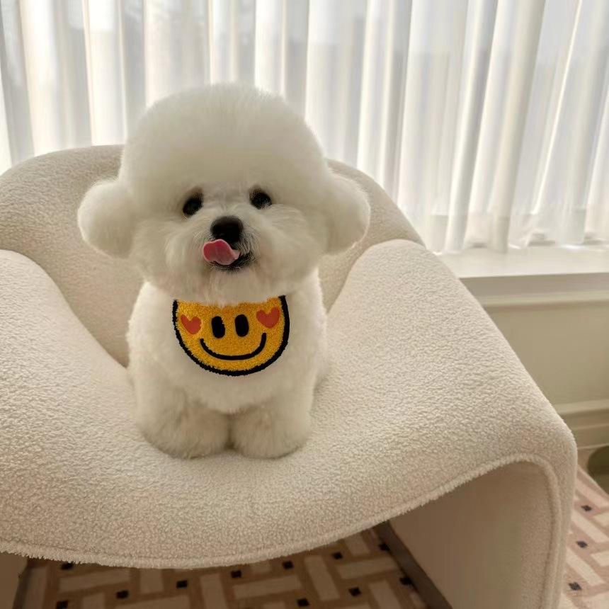 Bufanda para mascotas con cara sonriente y expresión linda, toalla resbaladiza para perro y gato, estilo coreano