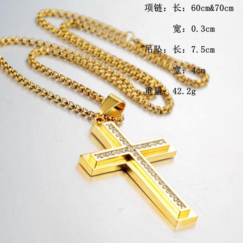 Double-layer Diamond Cross gold with chain 60CM, Double-layer Diamond Cross gold with chain 70CM