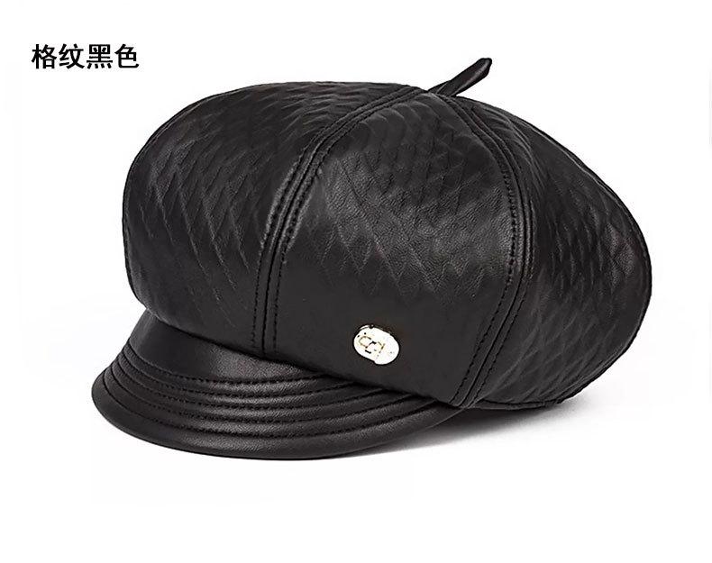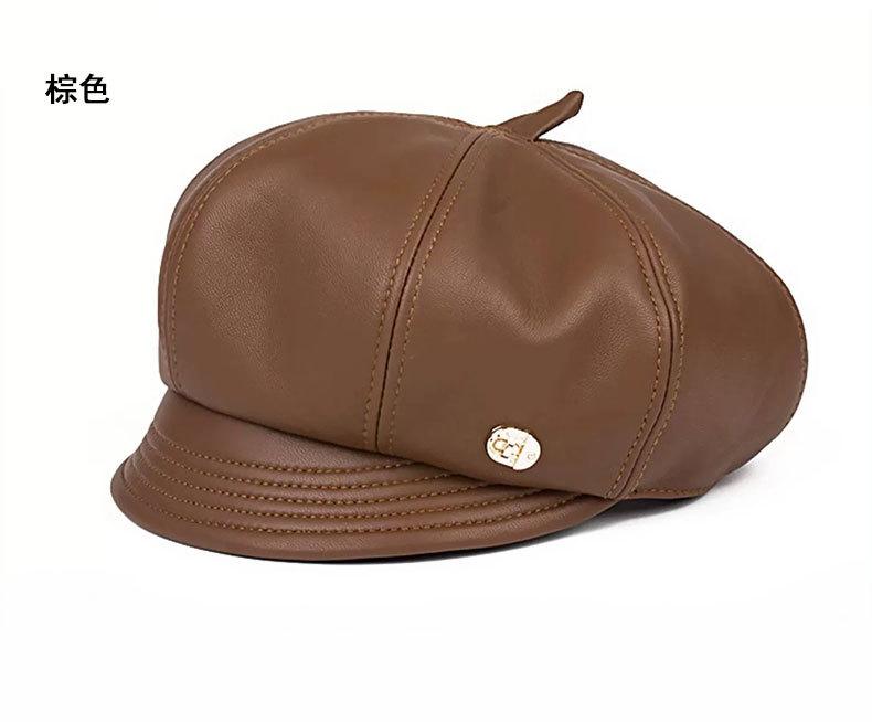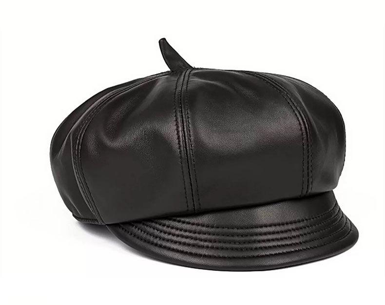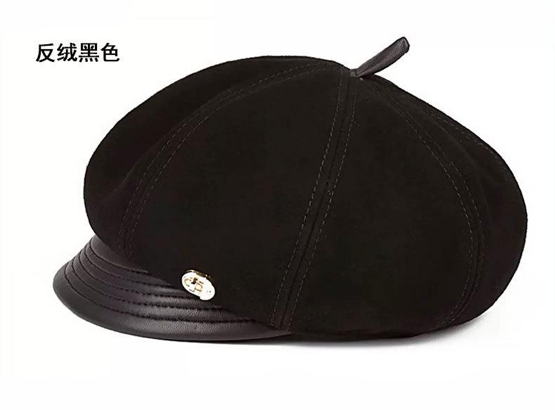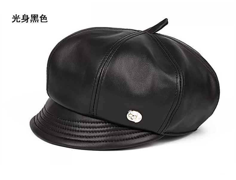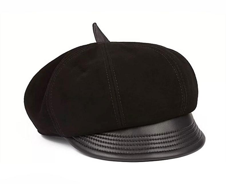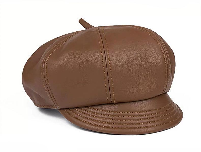 Sombrero de Cuero Genuino para Mujer Otoño e Invierno Boina de Piel de Oveja Estilo Japonés Combinable Casual Gorra Octogonal de Cubeta Estilo Coreano Trendy Lengua de Pato