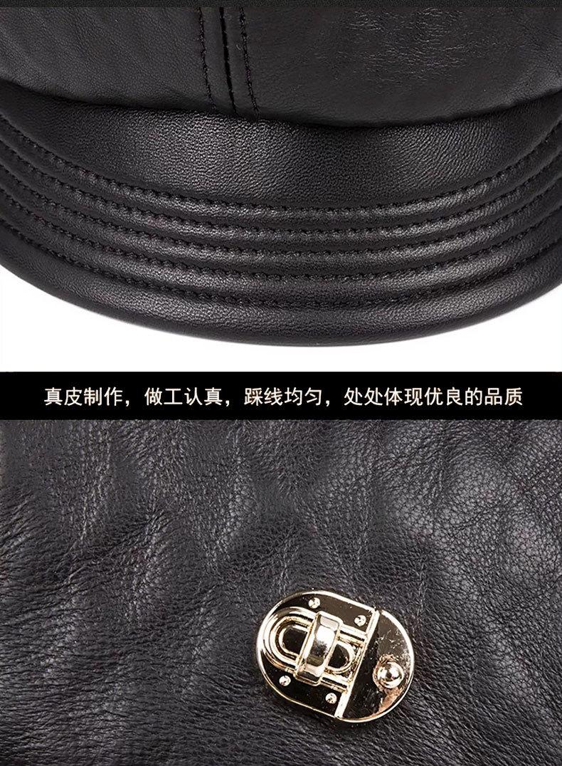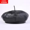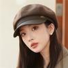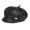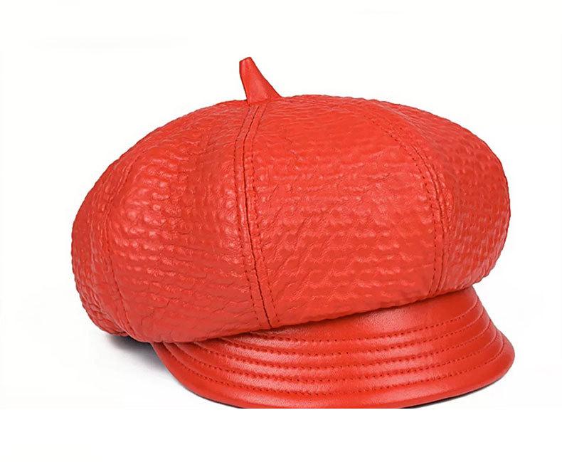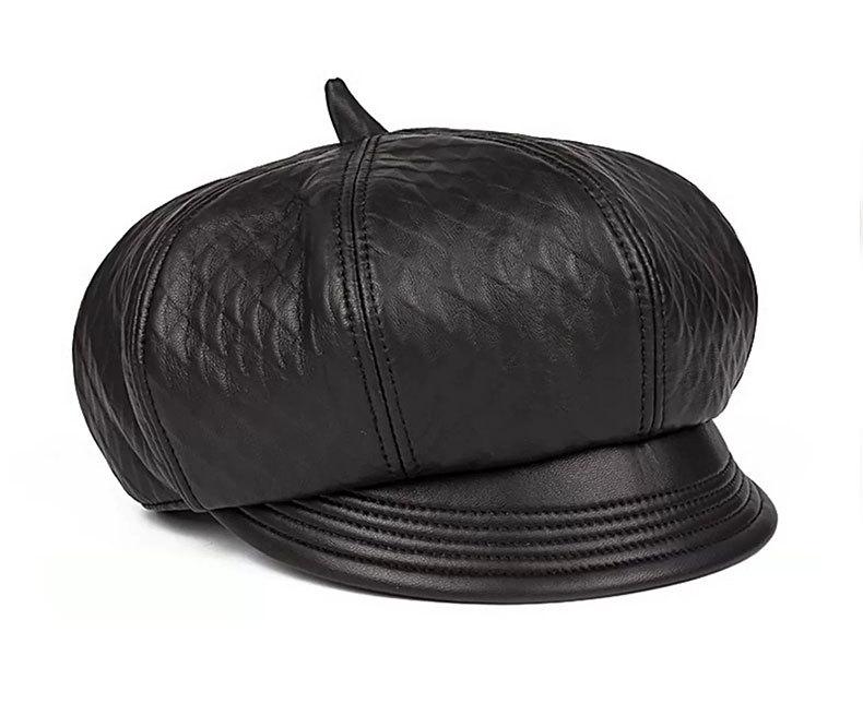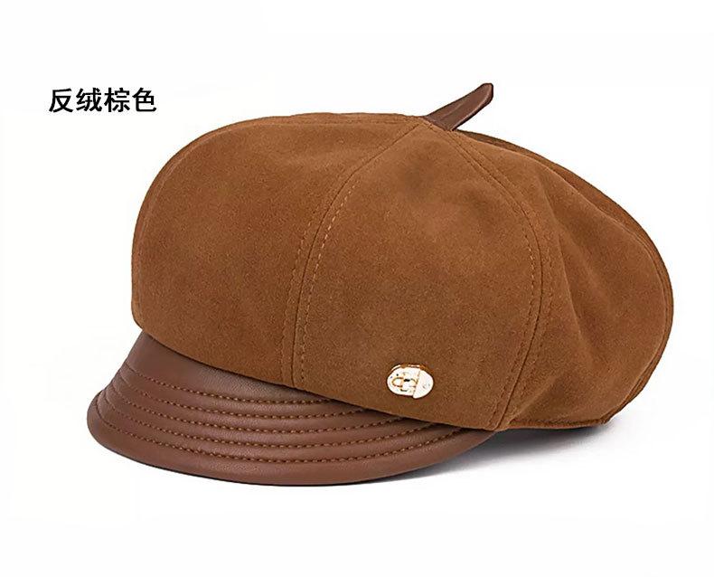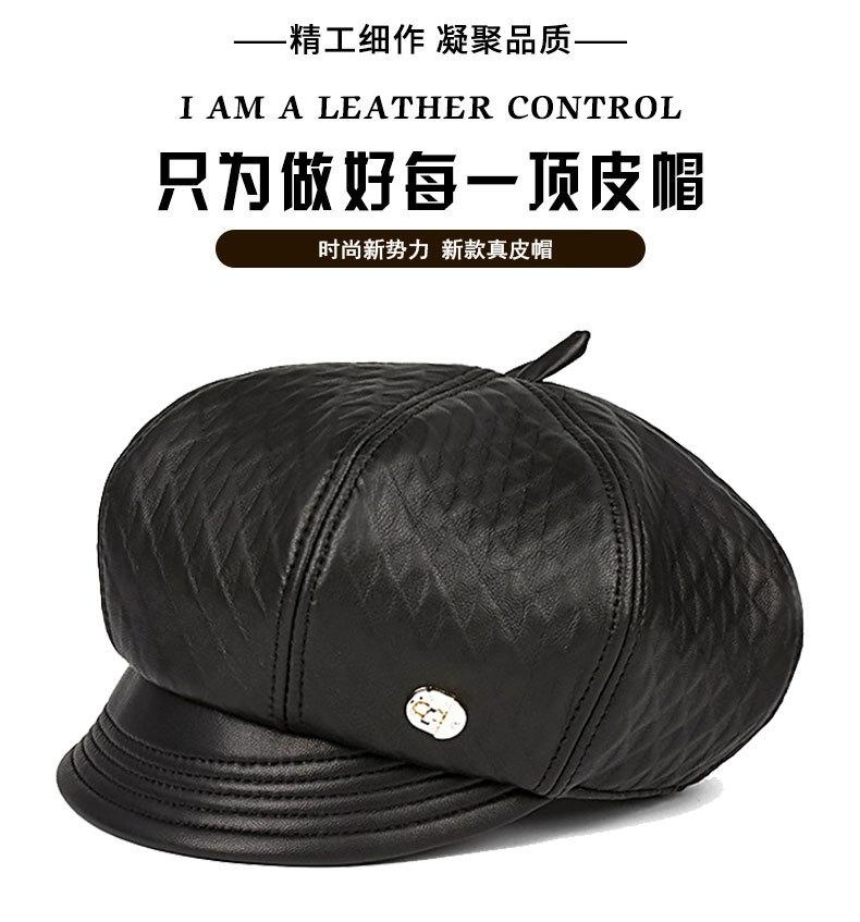 Sombrero de Cuero Genuino para Mujer Otoño e Invierno Boina de Piel de Oveja Estilo Japonés Combinable Casual Gorra Octogonal de Cubeta Estilo Coreano Trendy Lengua de Pato