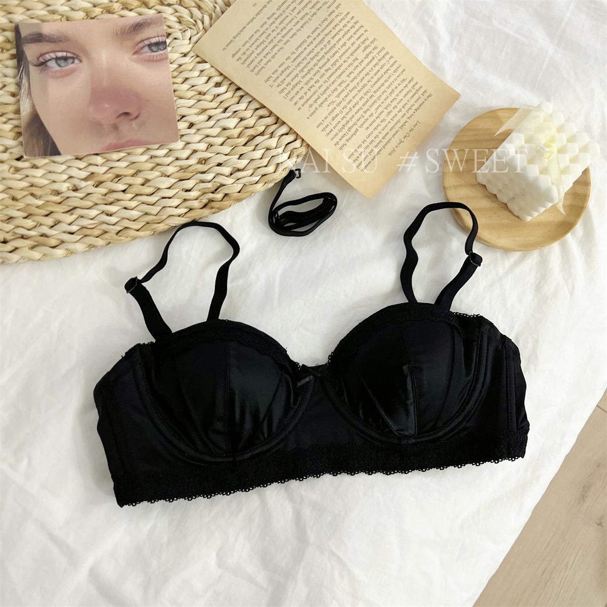 Sujetador push up francés de una pieza, fino y especial, con aros y escote pequeño, brillante y sin aros, para pecho grande