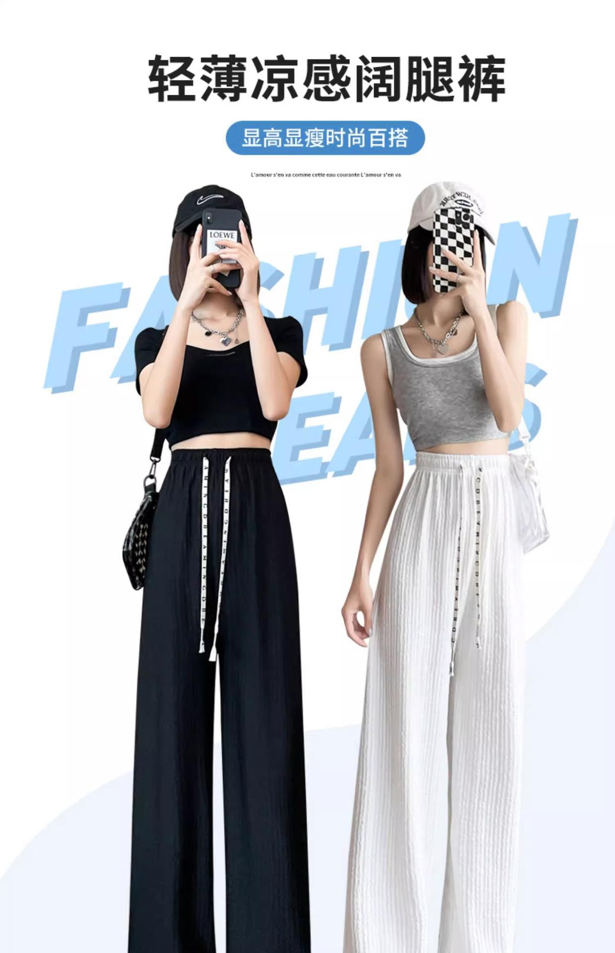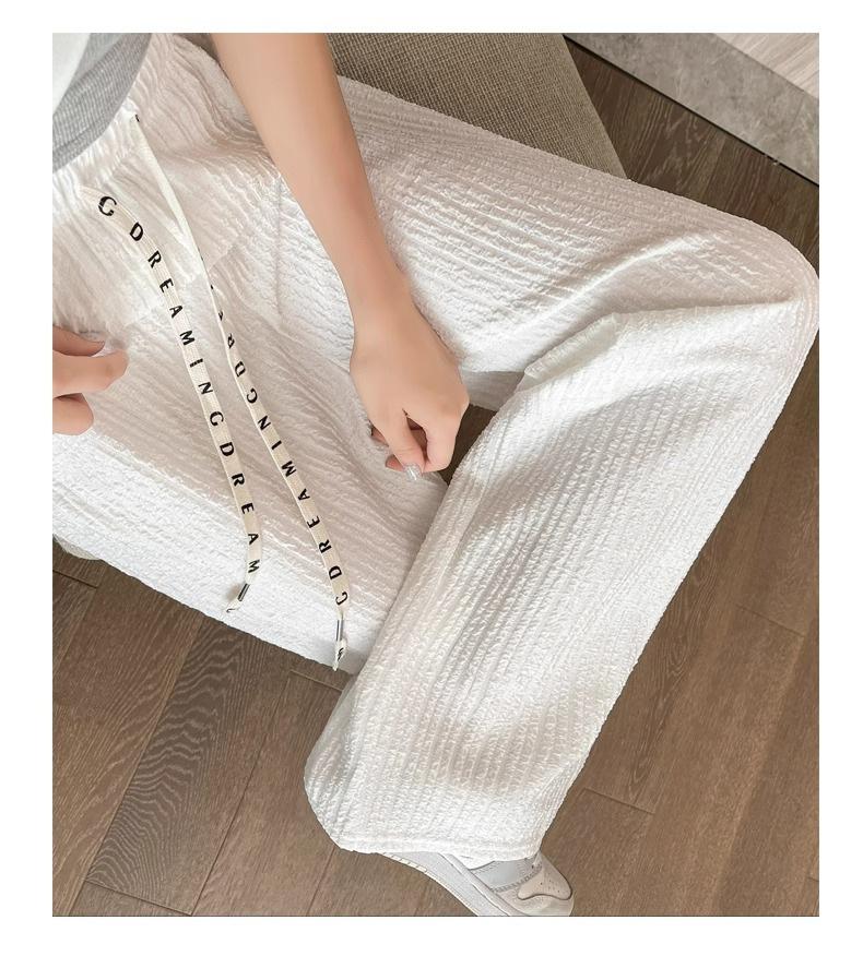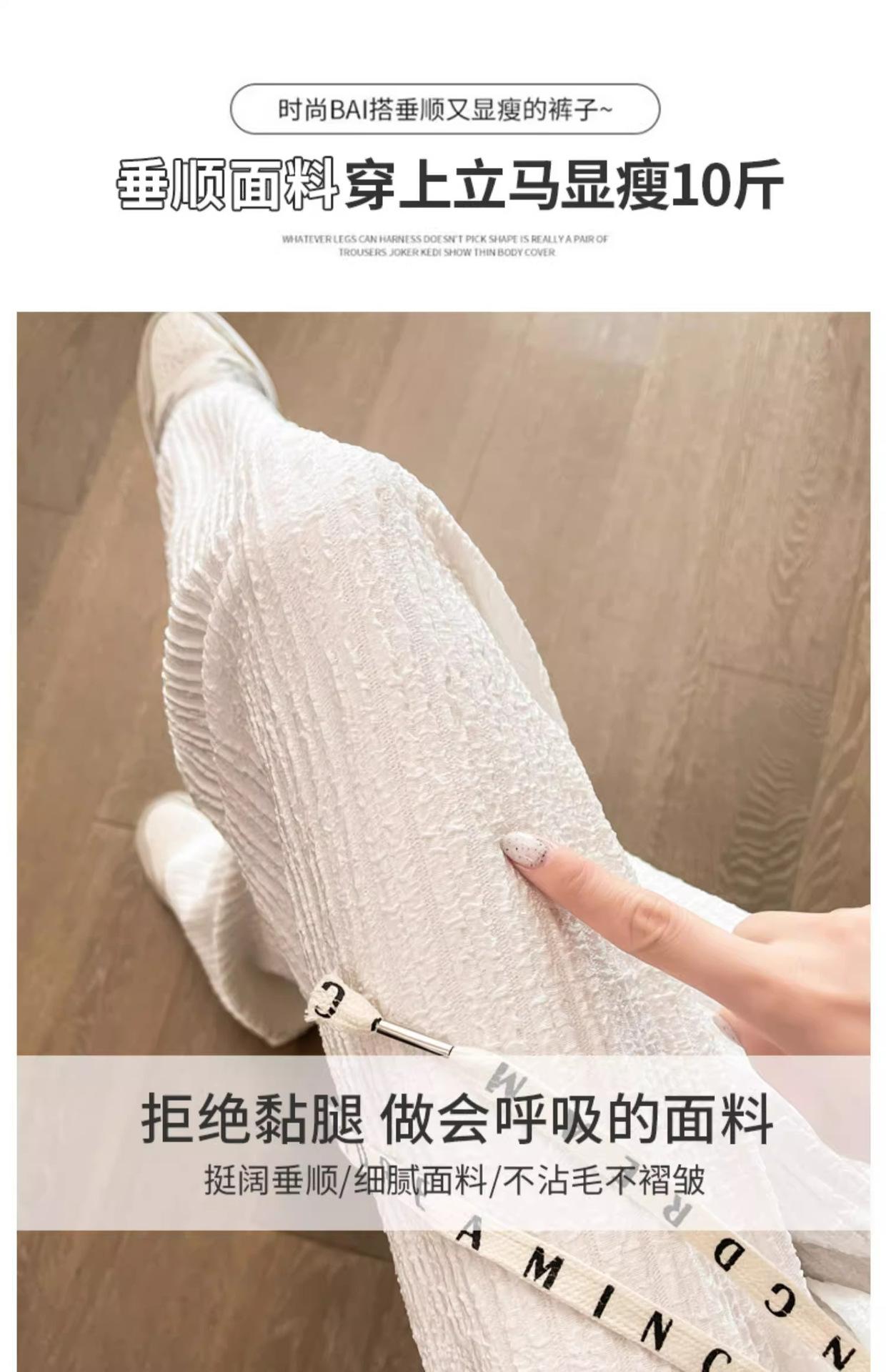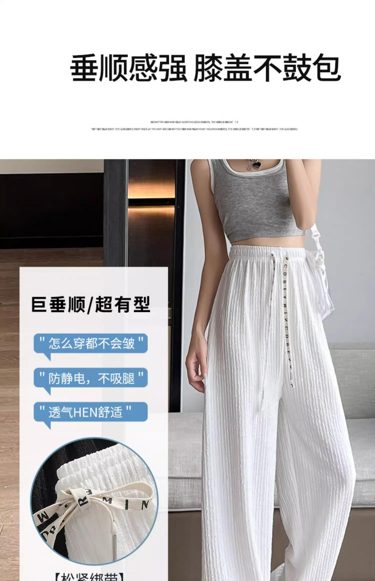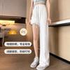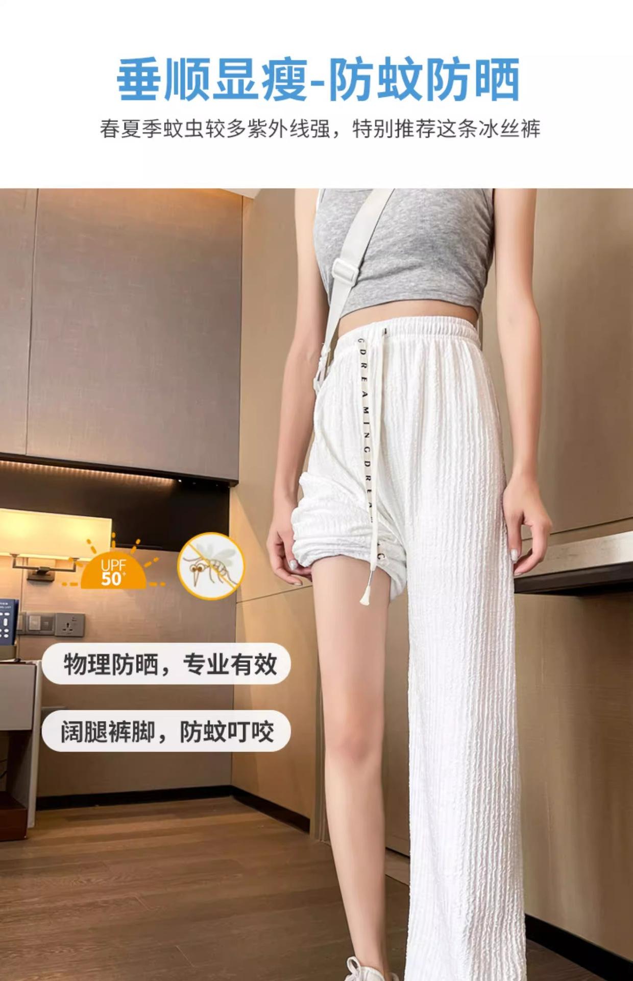 Pantalones blancos de seda de hielo de pierna ancha para mujer, verano, cintura alta, drapeados, 2024 Nuevo, rectos, casuales, deportivos, a prueba de mosquitos, a prueba de sol