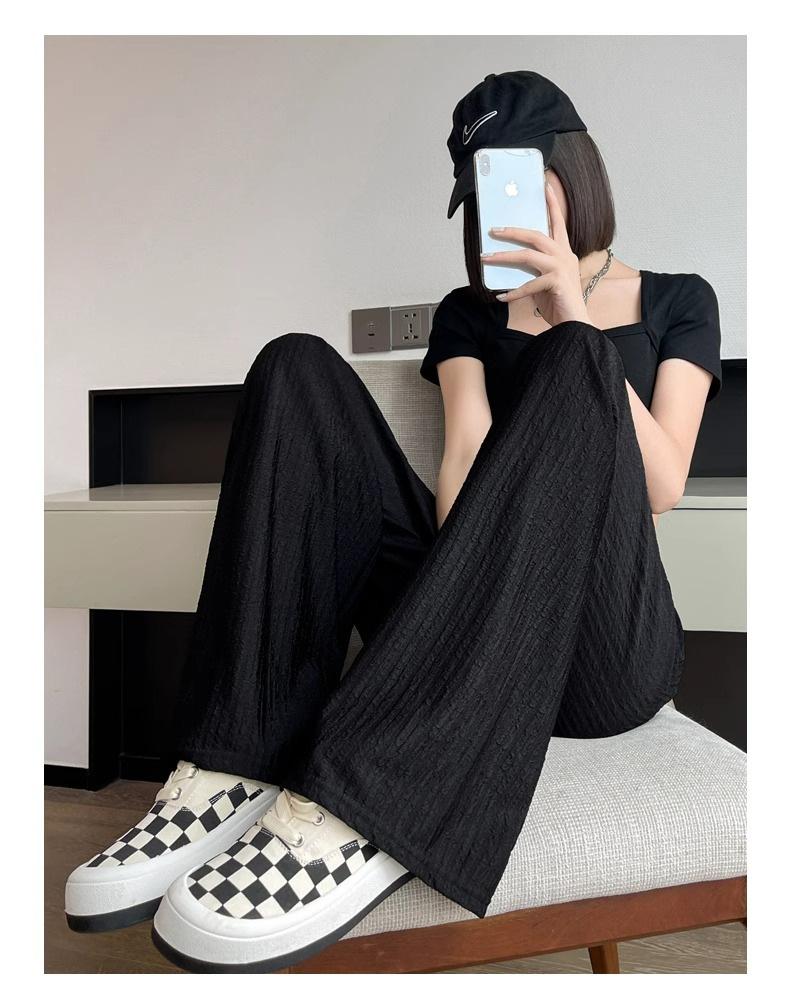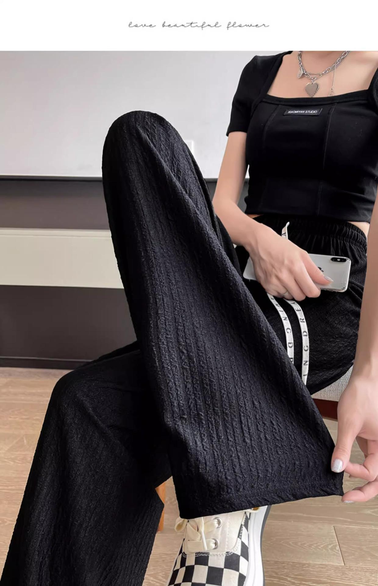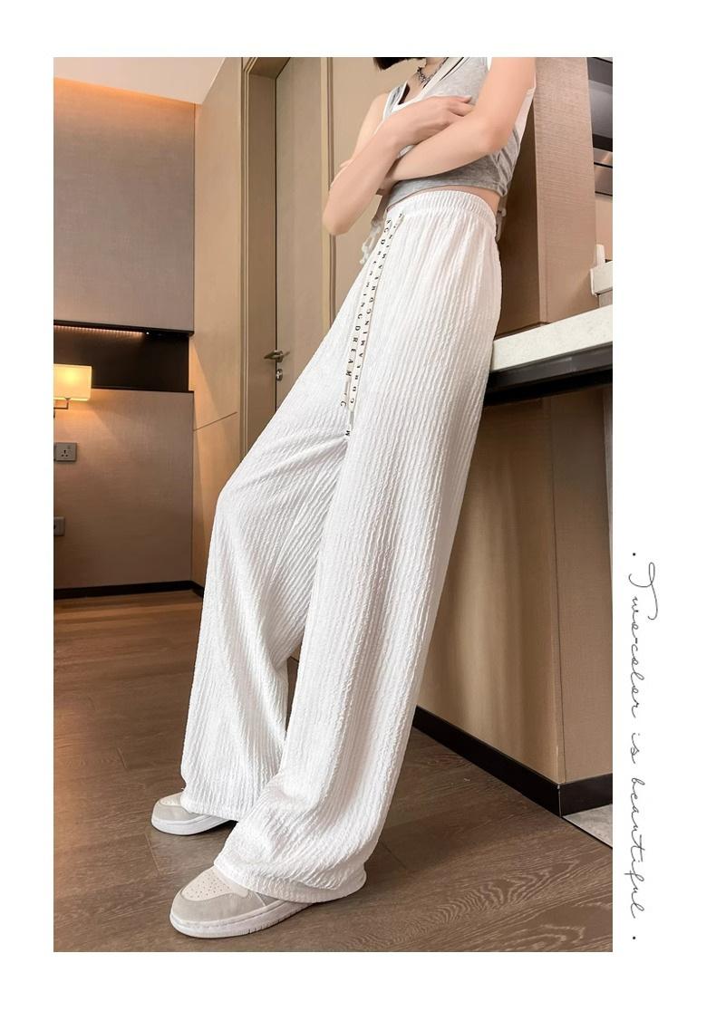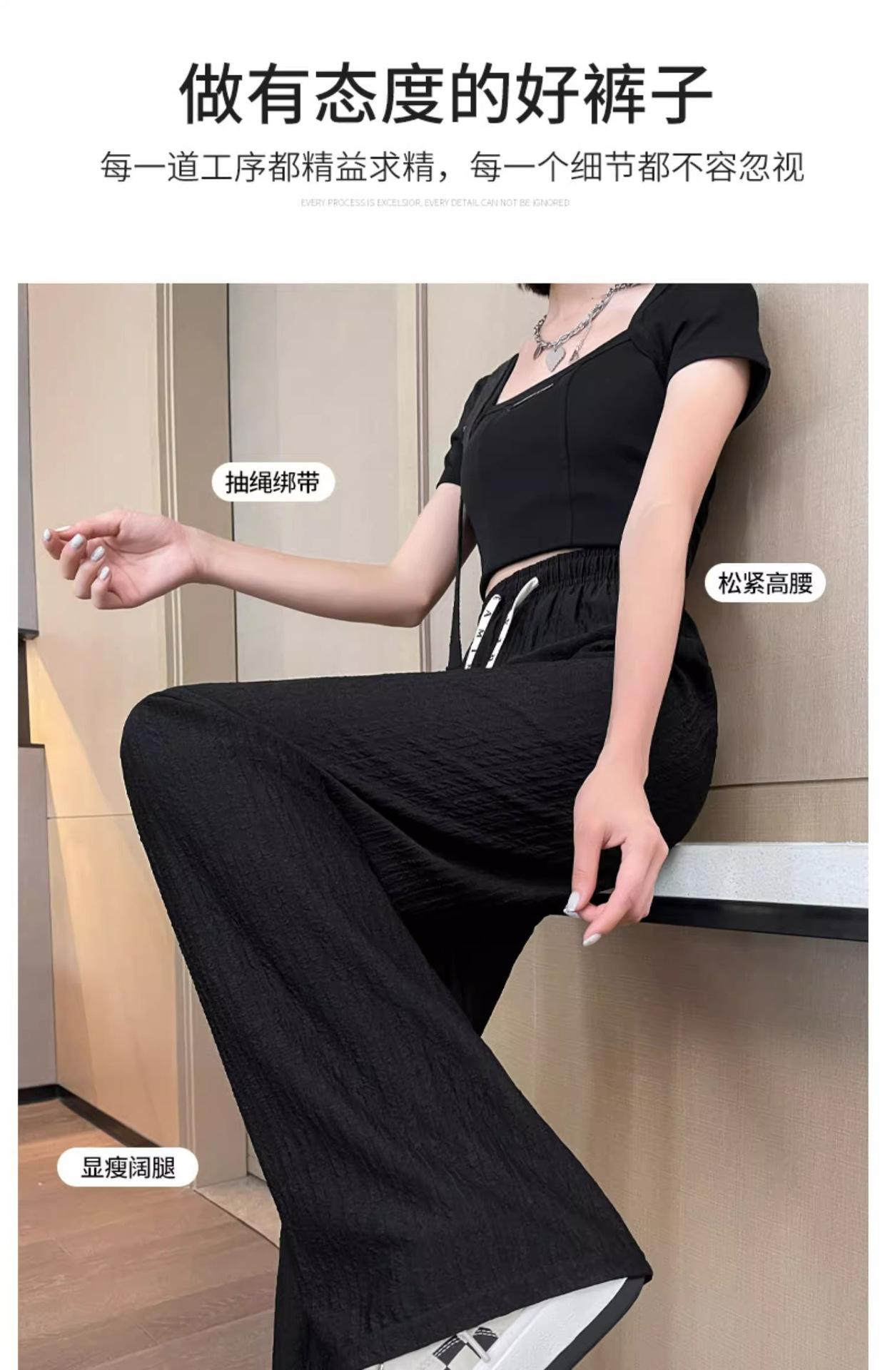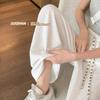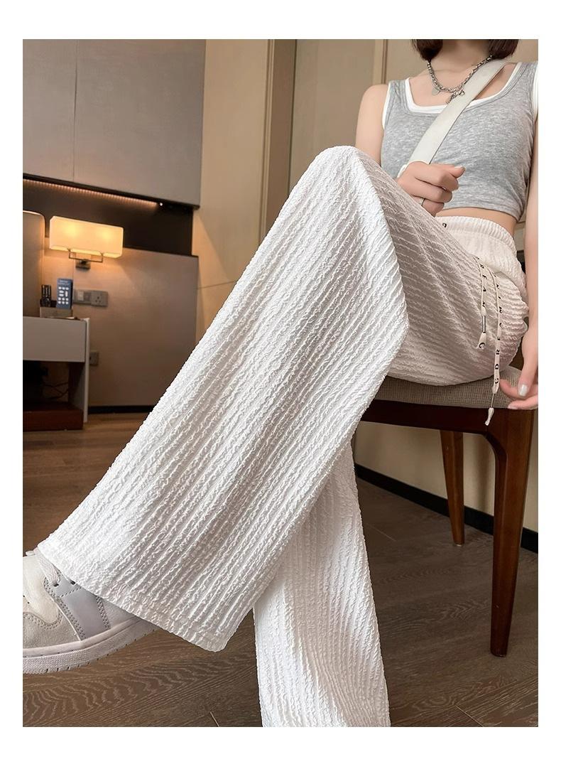 Pantalones blancos de seda de hielo de pierna ancha para mujer, verano, cintura alta, drapeados, 2024 Nuevo, rectos, casuales, deportivos, a prueba de mosquitos, a prueba de sol