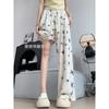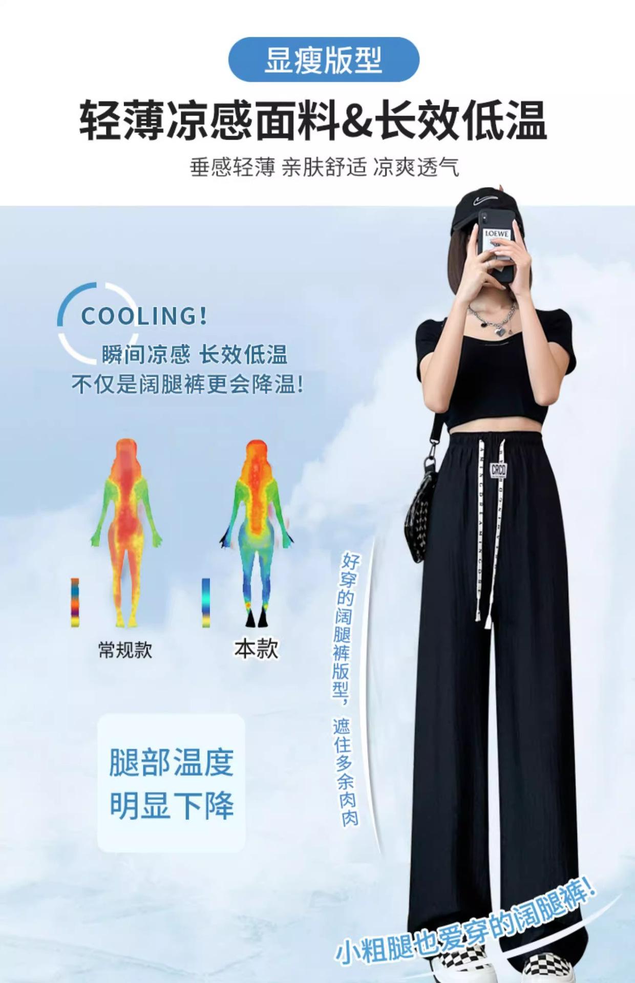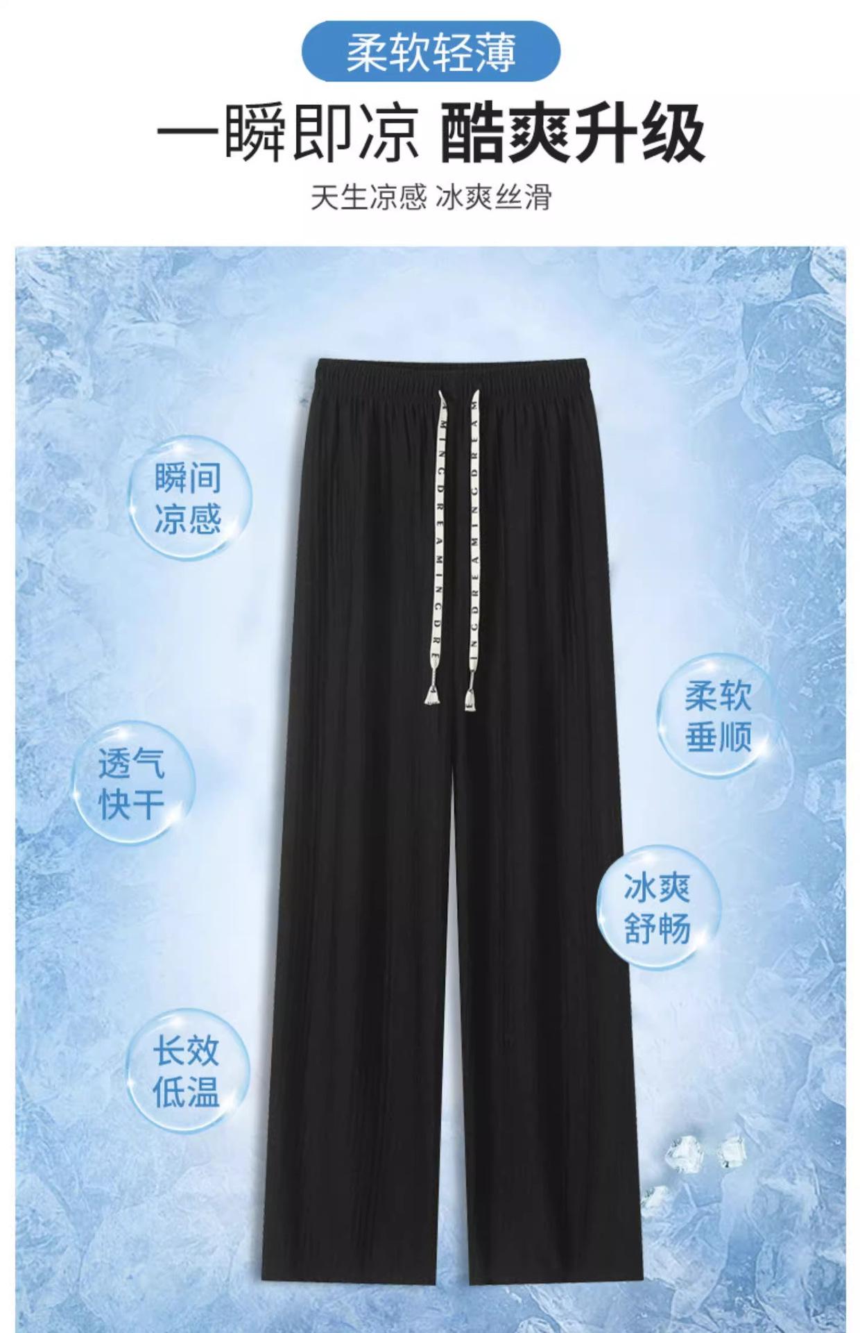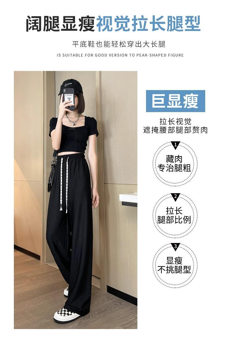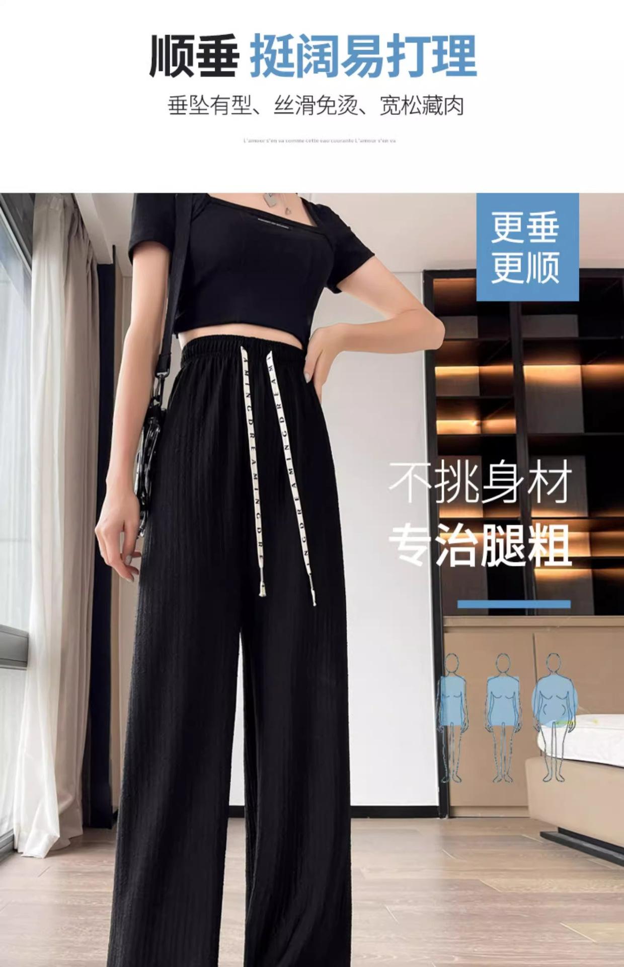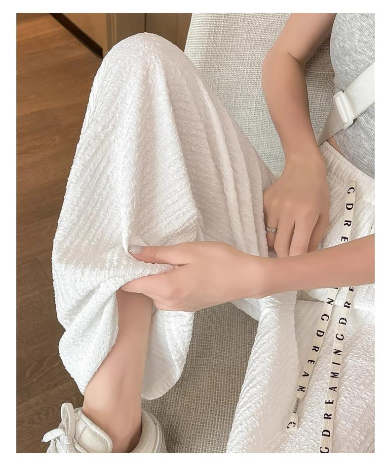Pantalones blancos de seda de hielo de pierna ancha para mujer, verano, cintura alta, drapeados, 2024 Nuevo, rectos, casuales, deportivos, a prueba de mosquitos, a prueba de sol
