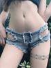 Nuevo Sexy Chica Hot usa agujero grande delantero y trasero cintura baja calado shorts de mezclilla para mujer talla grande Shorts de mezclilla de tres puntos