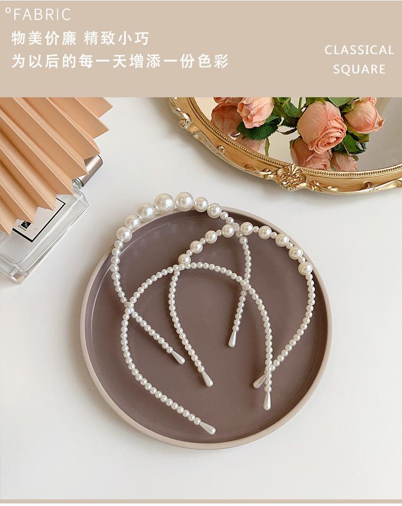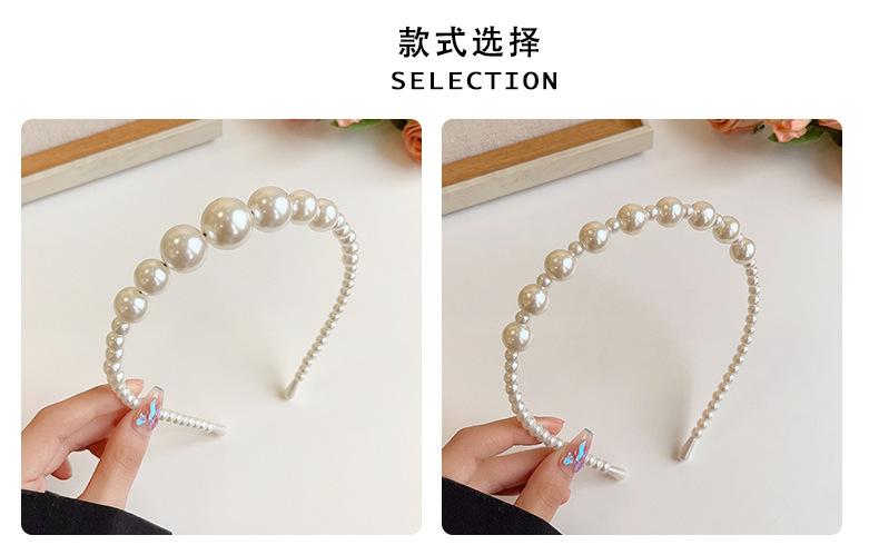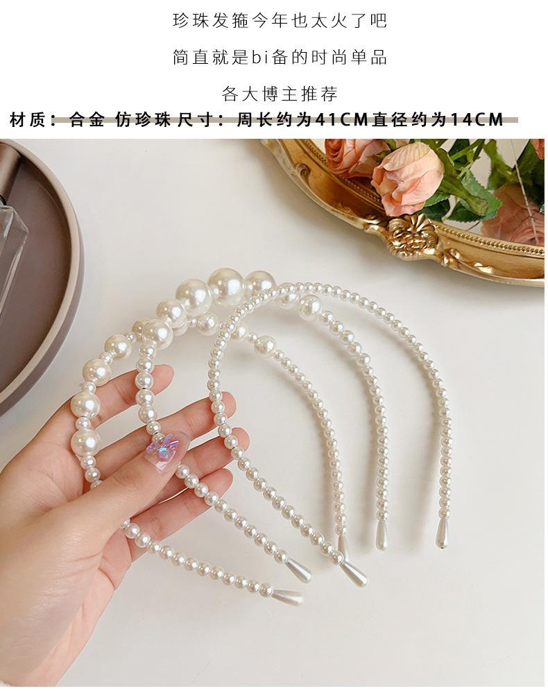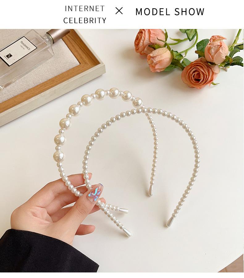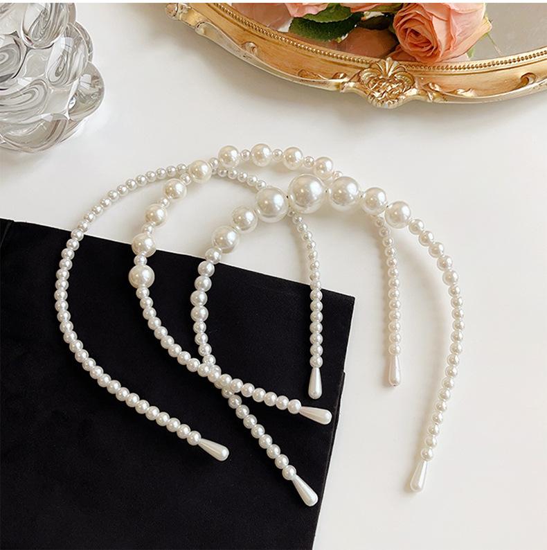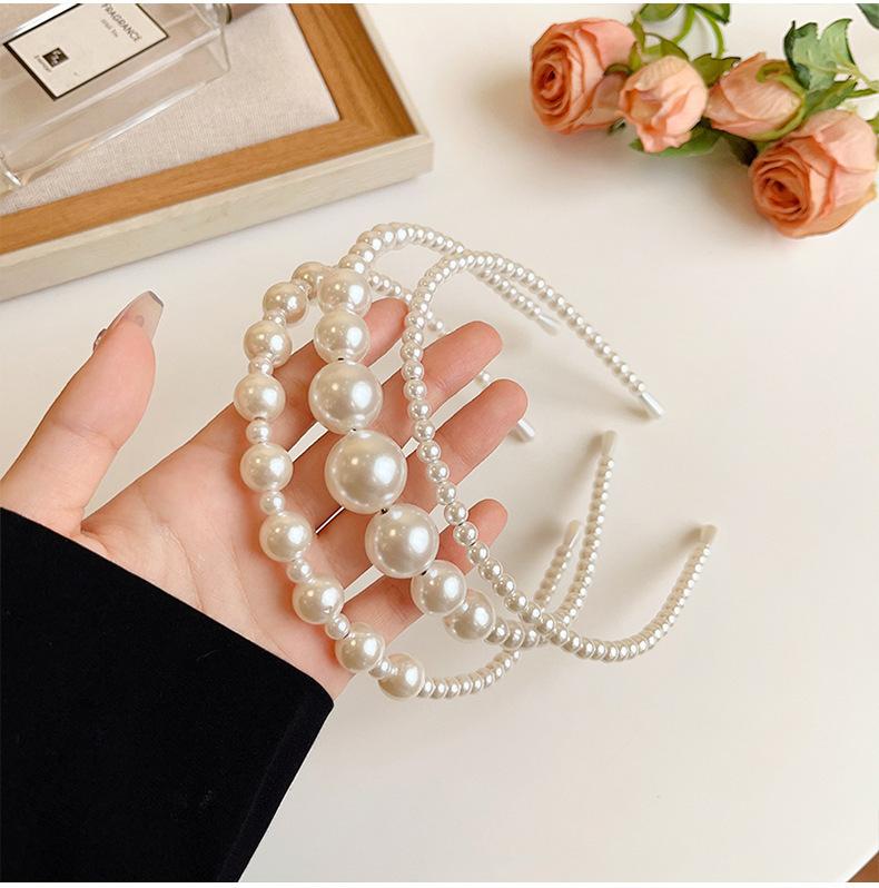 02409 single row pearl bow headband, 02410 small and medium pearl spacer headband, 02411 top size pearl spacer...