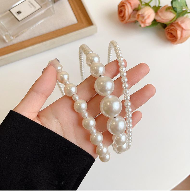 Diadema de perlas de alta calidad para mujer, versátil, de verano, con calavera alta, diadema con presión para lavarse la cara, tocado francés nuevo 2023