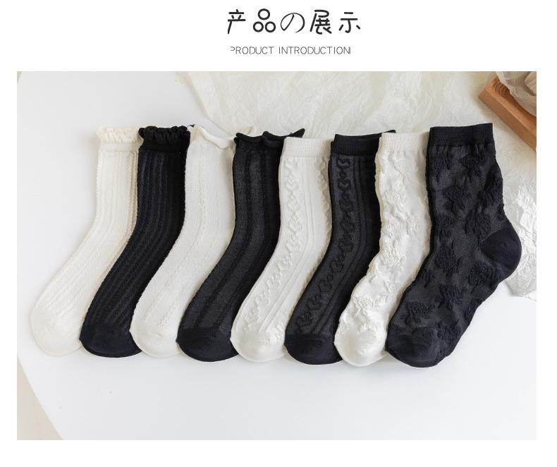 Calcetines blancos y negros para mujer, primavera y otoño, bonitos calcetines japoneses JK, medias de encaje Lolita, calcetines de algodón de moda para mediados de otoño y verano.