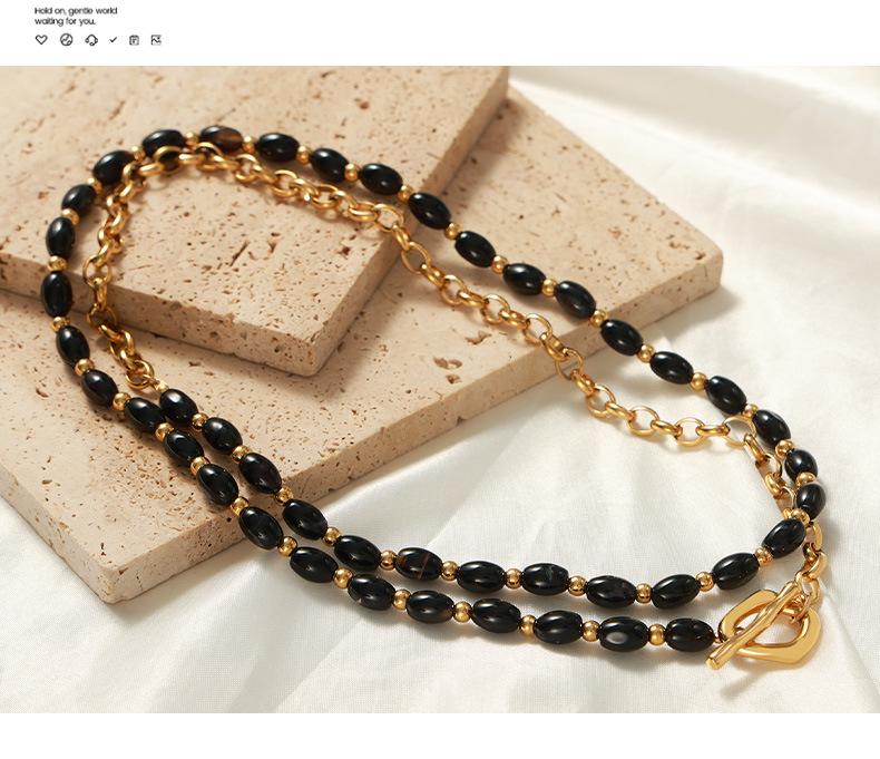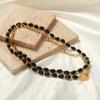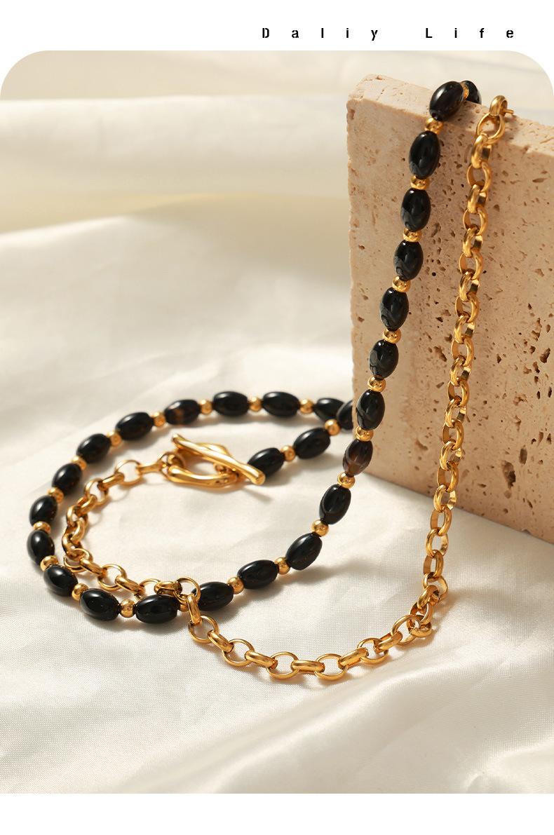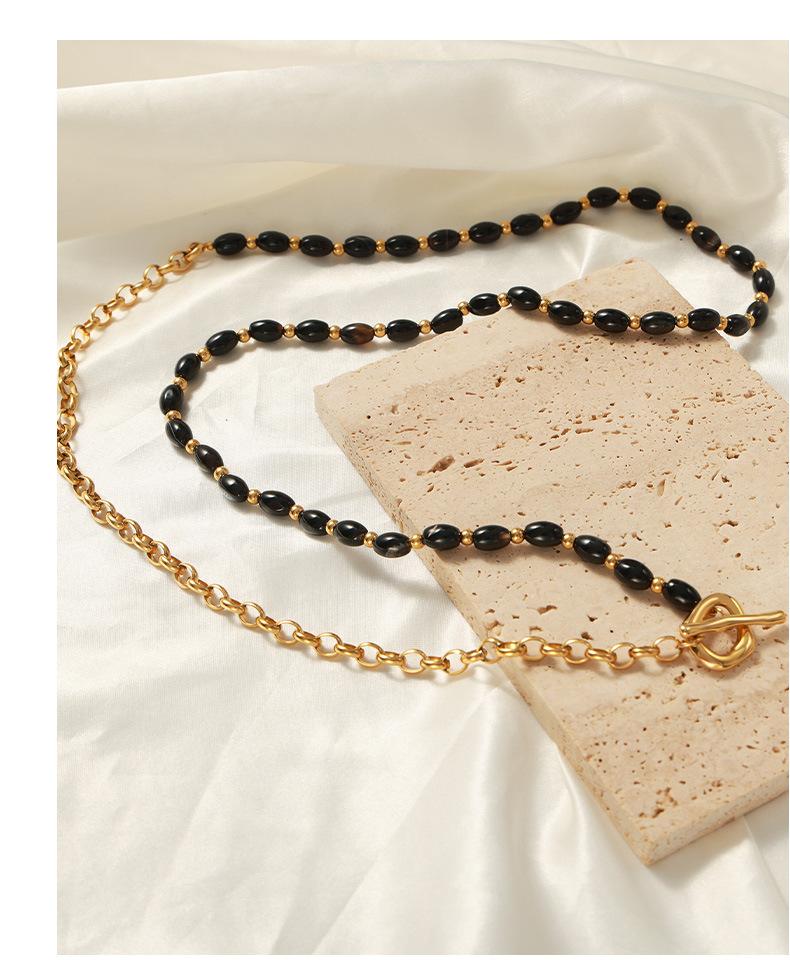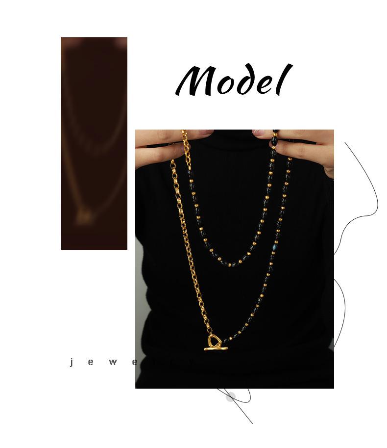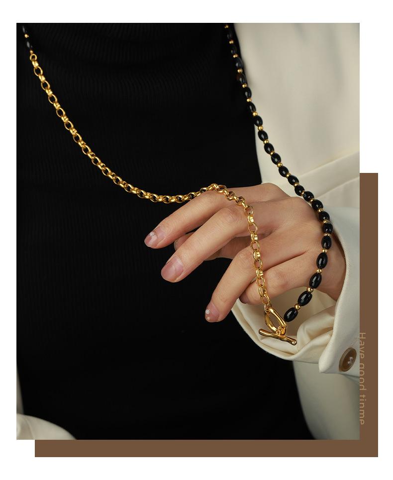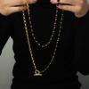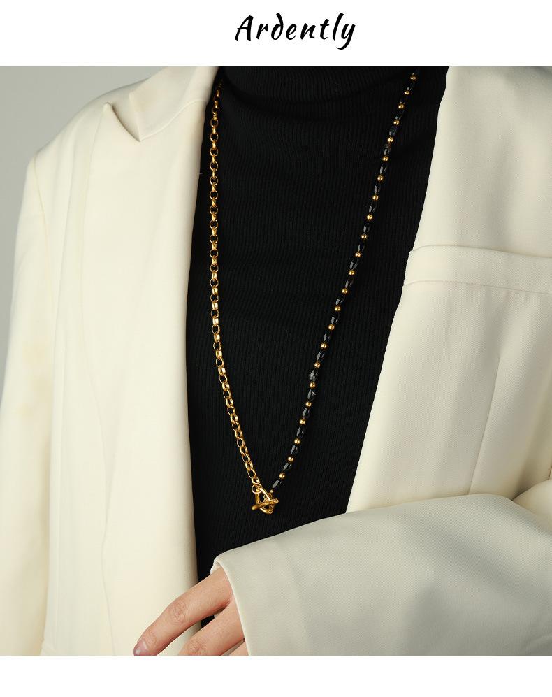 Collar de cadena tipo suéter con hebilla, estilo francés, ligero, de lujo, estilo retro, de nicho, chapado en acero de titanio y oro de 18 quilates.