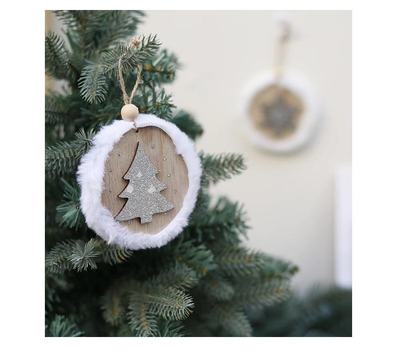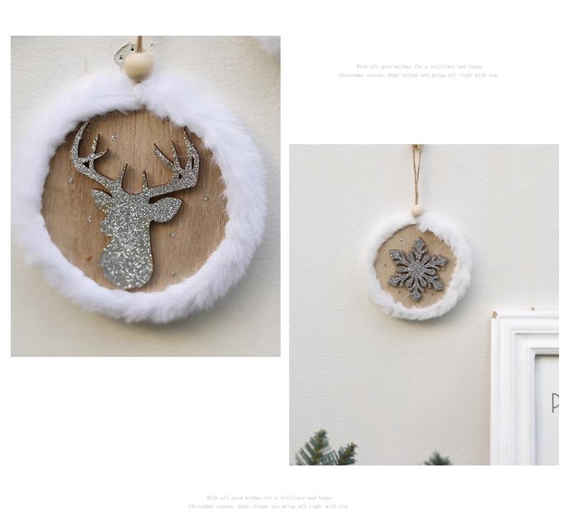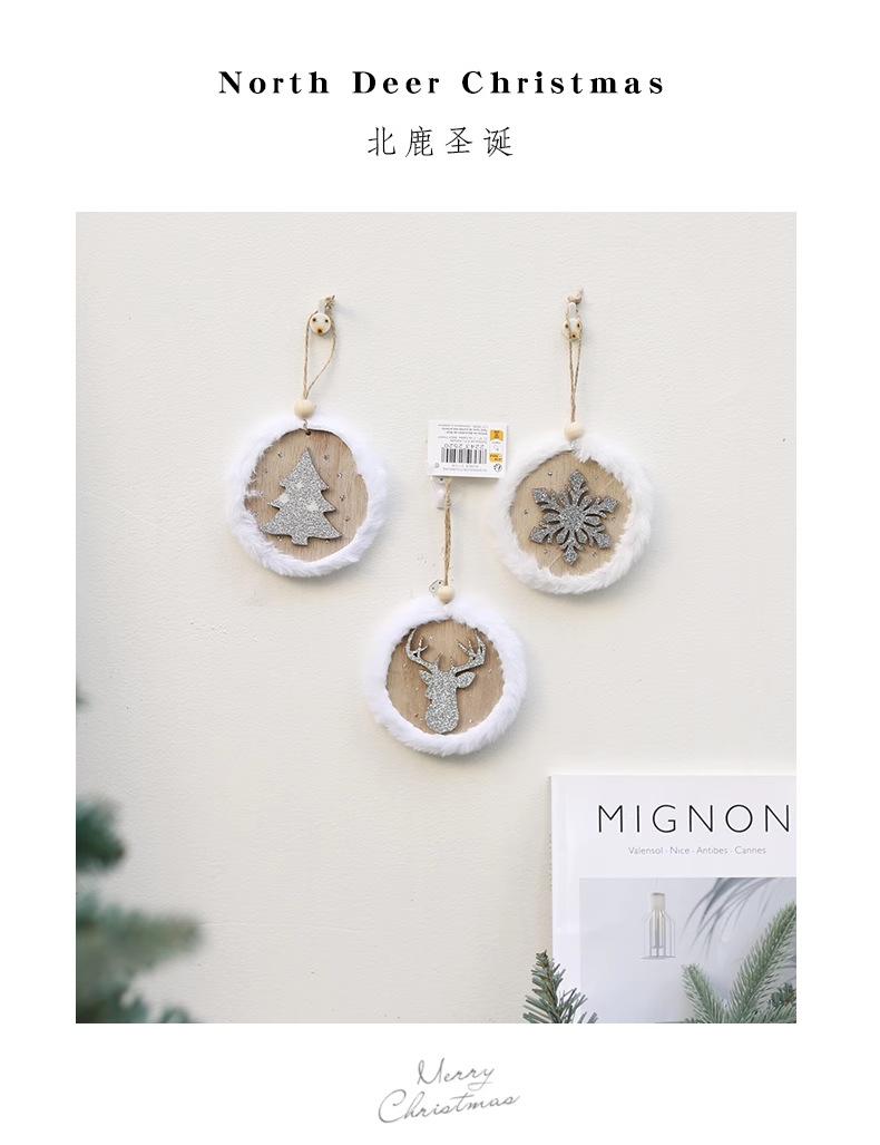 Plush white edge round ornaments-elk, Plush white edge round ornaments-snowflake, Plush white edge round ornaments-Christmas tree