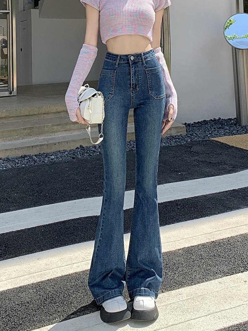Pantalones vaqueros micro acampanados de primavera y otoño para mujer, diseño de nicho, cintura alta, adelgazantes, tipo herradura, pantalones pequeños de calle americana.