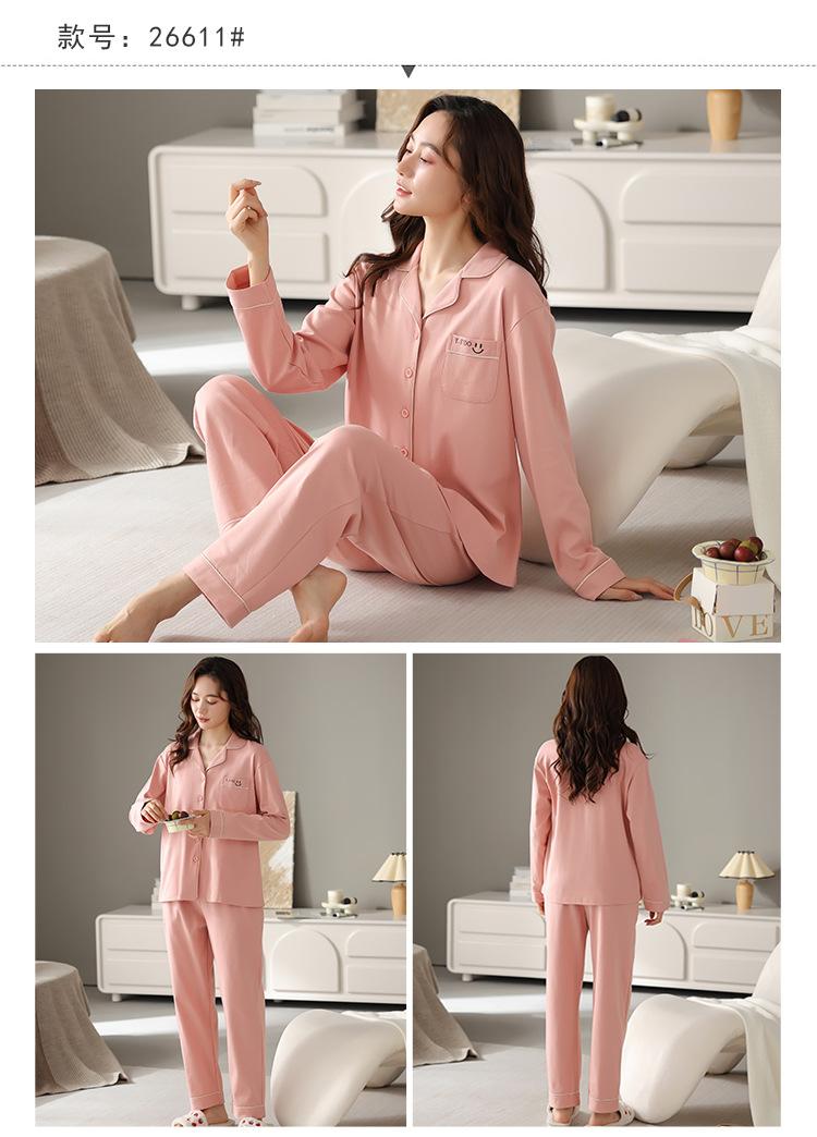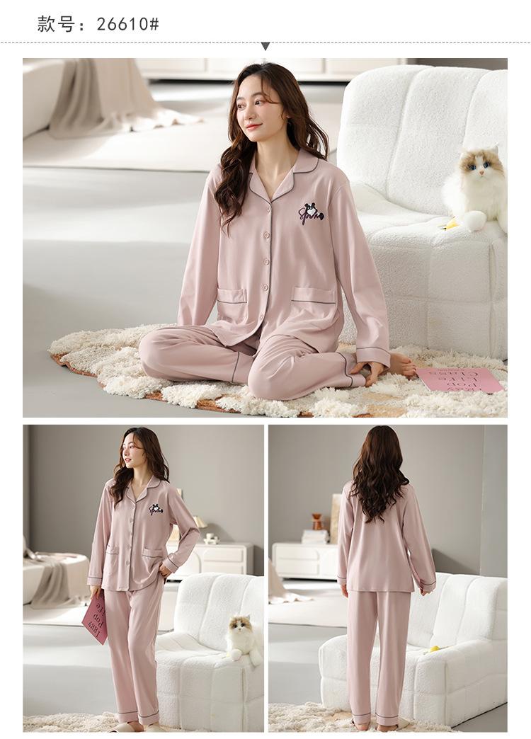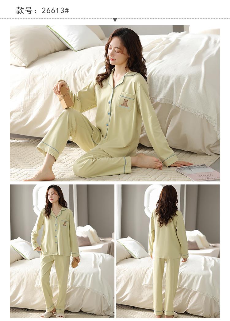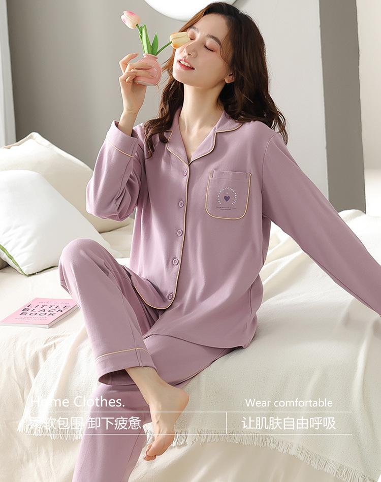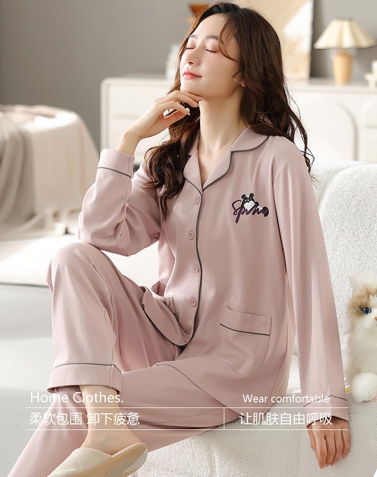 Pijama de mujer primavera y otoño algodón pantalones de manga larga moda cárdigan de mujer traje para estar en casa se puede usar fuera estilo casual