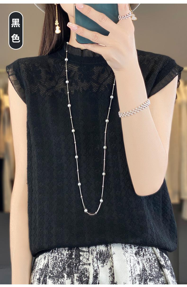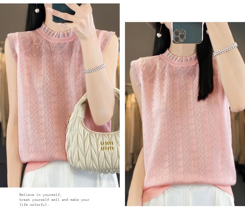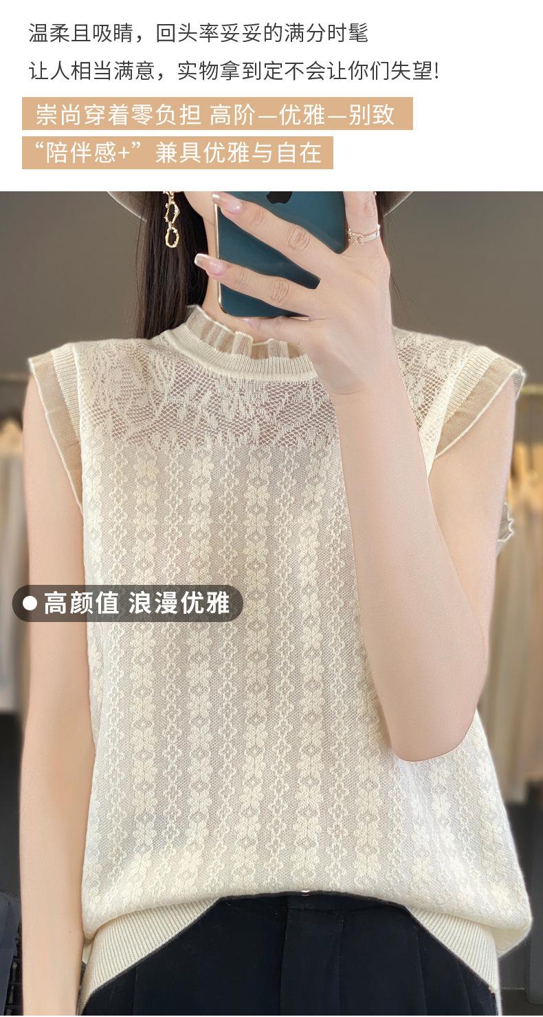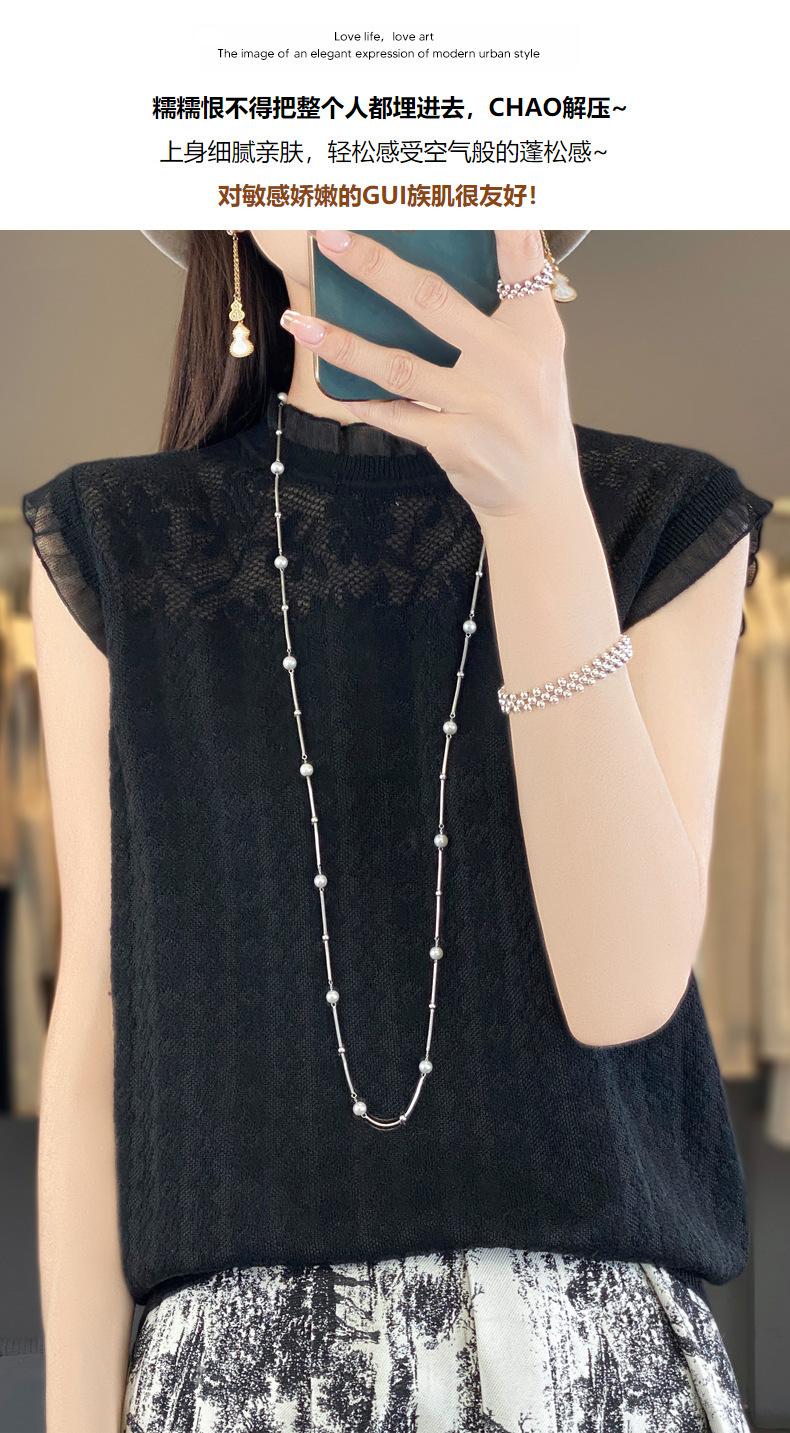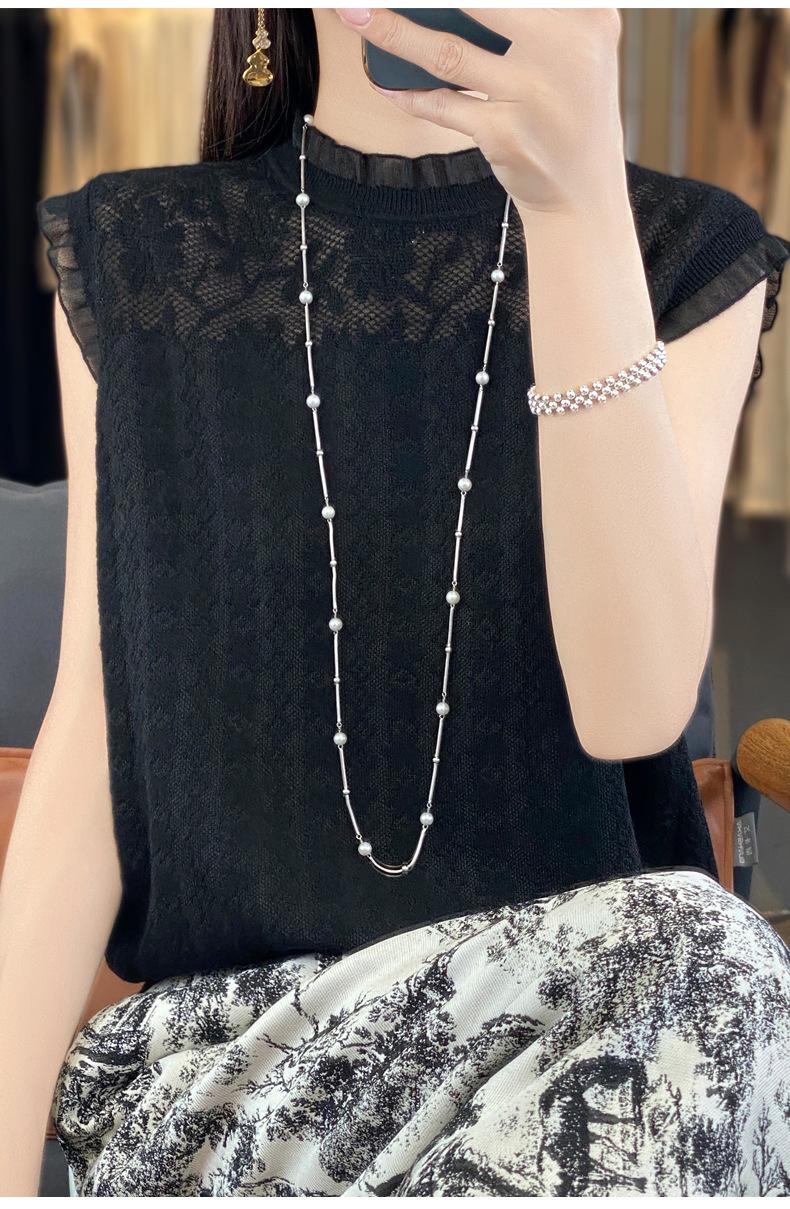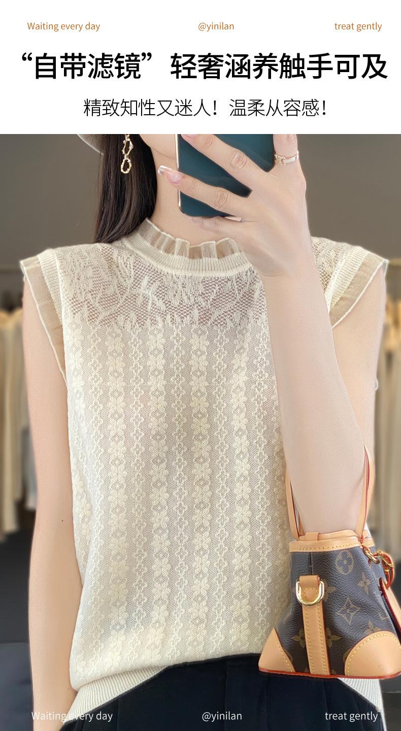 Chaleco de punto con base fina y hueca de encaje, primavera y verano 2024, con costuras de organza